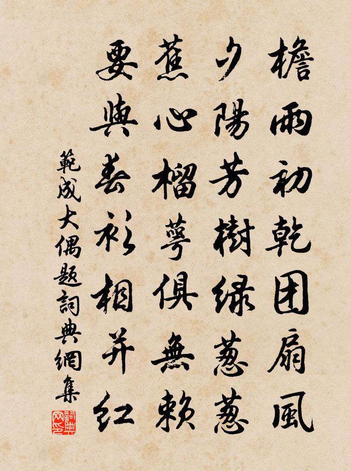 檐雨初乾團扇風,夕陽芳樹綠蔥蔥。蕉心榴萼俱無賴,要與春衫相併紅。