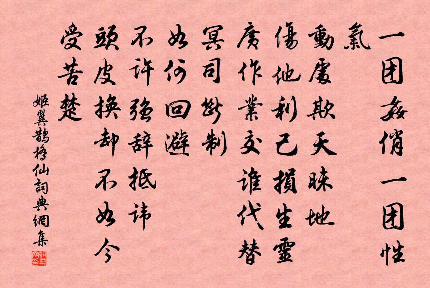 詩詞名句歷史字典書法欣賞書法字典國語詞典說文解字康熙字典古漢語字典標 題 作 者 詩 句 鵲橋仙作者:姬翼 朝代:元代鵲橋仙原文一團奸俏,一團性氣。動處欺天昧地。傷他利己損生靈,廣作業、交誰代替。冥司斷制。如何迴避。不許強辭抵諱。頭皮換卻不如今,受苦楚詩詞問答問:鵲橋仙的作者是誰?答:姬翼問:鵲橋仙寫於哪個朝代?答:元代問:鵲橋仙是什麼體裁?答:詞姬翼鵲橋仙書法欣賞鵲橋仙書法作品詩詞推薦次早再出虞儔〔宋代〕晨起候雞鳴,我車催發軔。列炬犯星微,衣襟濛霧潤。將迎恐後期,奔走追前進。拭面愧緇塵,墊巾憐雪鬢。吾年書會溪郴陽瀑布圖後三首蒲壽宬〔宋代〕楚山亦瘴癘,湘水多幽靈。高飈雷電激,盡日霰雪零。滌去熱惱腸,清風自泠泠。舞者薛能〔唐代〕綠毛釵動小相思,一唱南軒日午時。慢靸輕裾行欲近,待調諸曲起來遲。筵停匕箸無非聽,吻帶宮商儘是詞。為問早朝十絕趙子潚〔宋代〕門門閶闔早春初,恭構龍飛御太虛。聖德巍巍隆譽望,坐令四海誦唐虞。古邊卒思歸司馬扎〔唐代〕有田不得耕,身臥遼陽城。夢中稻花香,覺後戰血腥。漢武在深殿,唯思廓寰瀛。中原半烽火,比屋皆點行。邊土偶得李竹屋居士摘和靖先生梅詩四聯演成八韻楊公遠〔宋代〕雪後園林才半樹,支筇細認孤山路。雲頑未斂風更嚴,木凍且僵天欲莫。冷蕊依稀無處尋,甭香仿佛暗中度。翻思楚妃嘆五首曹勛〔宋代〕用意十分巧畫眉,妝成獨自惜容儀。非緣鄭袖能歌舞,自是人心著處迷。自城南濠上步月之葆光韓維〔宋代〕厭踏塵中路,遠尋濠上行。水聲喧夜塹,月色滿春城。{街圭換土}{街圭換土}交遊樂,依依里巷情。優哉不知書憤張祜〔唐代〕三十未封侯,顛狂遍九州。平生鏌鋣劍,不報小人讎。有感牟融〔唐代〕盛世嗟沉伏,中情怏未舒。途窮悲阮籍,病久憶相如。無客空塵榻,閒門閉草廬。不勝岑絕處,高臥半床書。晚泊慈姥磯下二首陸游〔宋代〕山斷峭崖立,江空翠靄生。漫多來往客,不盡古今情。月碎知流急,風高覺笛清。兒曹笑老子,不睡待潮平。詠青苔詩沈約〔南北朝〕緣階已漠漠。泛水復綿綿。微根如欲斷。輕絲似更聯。長風隱細草。深堂沒綺錢。縈郁無人贈。葳蕤徒可憐。傳妙道馬鈺〔元代〕清心淨意,通禪明道。逍遙樂、永無憂惱。縱狂歌,任下士,聞之大笑。笑則笑,怎知得,內貌忒好。待異日、行閉門齊己〔唐代〕外事休關念,灰心獨閉門。無人來問我,白日又黃昏。燈集飛蛾影,窗銷迸雪痕。中心自明了,一句祖師言。六么令·夷則宮七夕吳文英〔宋代〕露蛩初響,機杼還催織。婺星為情慵懶,佇立明河側。不見津頭艇子,望絕南飛翼。雲梁千尺。塵緣一點,回首西朝中措 為寒仲山僉司壽魏初〔元代〕五年憲府記相看。秋水淨門蘭。一曲驪歌別後,眼前萬里河關。愛君佳處,文書堆積,意思安閒。看取清秋射虎,頌古二十首釋了一〔宋代〕大地是眼沒處屙,衲僧到此便聱訛。須知別有安身訣,會得安身事更多。咄,鍬子安著在甚麽處。孫器之奉使淮浙至江為書見寄以詩謝之五首司馬光〔宋代〕呈釀木蘭春,江鱸白錦鱗。玉盤聊下箸,初識紫絲蓴。招賢峰陳岩〔宋代〕翹翹車乘力招賢,建業山河五十年。欲問興亡無問處,一聲山鳥忽來前。送李德輿歸穿石洞山居陳羽〔唐代〕烏巾年少歸何處,一片彩霞仙洞中。惆悵別時花似雪,行人不肯 * 。名句推薦單于北望拂雲堆,殺馬登壇祭幾回。王之渙《涼州詞二首》 寒鴉飛數點,流水繞孤村。楊廣《失題》 舊苑荒台楊柳新,菱歌清唱不勝春。李白《蘇台覽古》 如來者即諸法如義。鳩摩羅什譯《金剛經·究竟無我》 吏不治則亂,農事緩則貧。墨子《墨子·39章 非儒(下)》 淡盪春光寒食天。玉爐瀋水裊殘煙。李清照《浣溪沙·淡盪春光寒食天》 一上高城萬里愁,蒹葭楊柳似汀洲。許渾《鹹陽城東樓 / 鹹陽城西樓晚眺 / 西門》 夜寒驚被薄,淚與燈花落納蘭性德《菩薩蠻·蕭蕭幾葉風兼雨》 月色入高樓,相思兩處愁。秋瑾《菩薩蠻·寄女伴》 名無細而不聞,行無隱而不彰。劉向《列女傳·節義傳·周主忠妾》