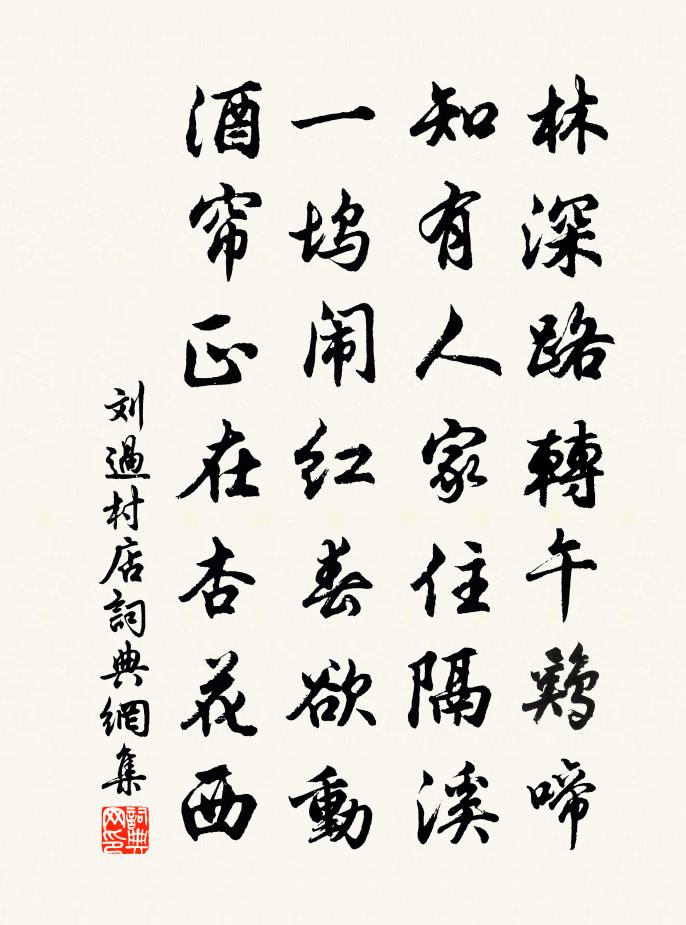 林深路轉午雞啼, 知有人家住隔溪。一塢鬧紅春欲動, 酒帘正在杏花西。