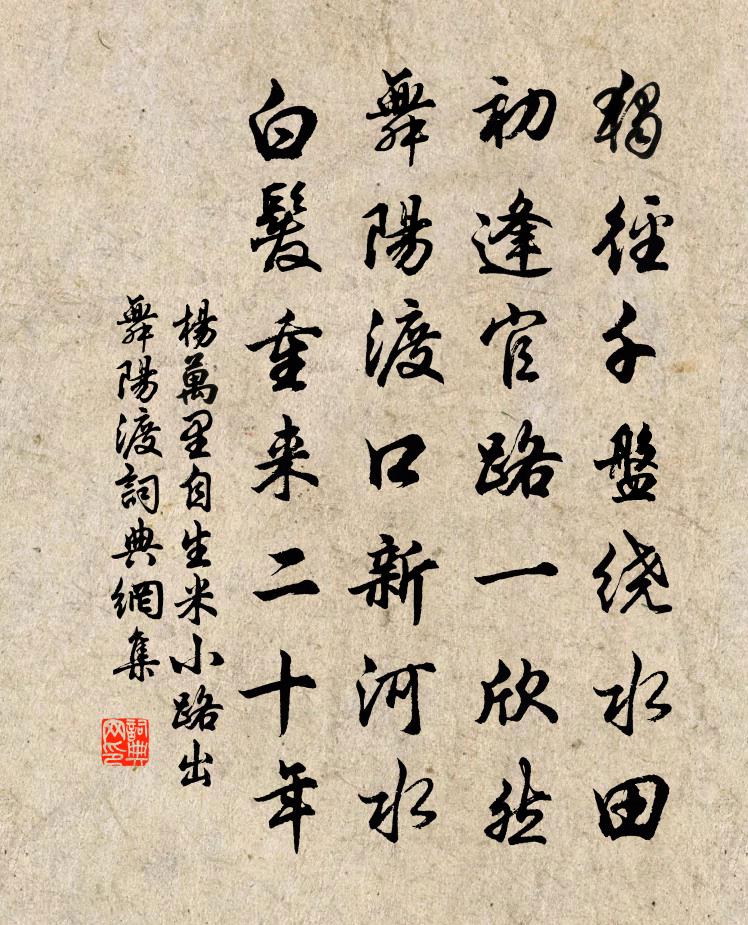 獨徑千盤繞水田,初逢官路一欣然。舞陽渡口新河水,白髮重來二十年。