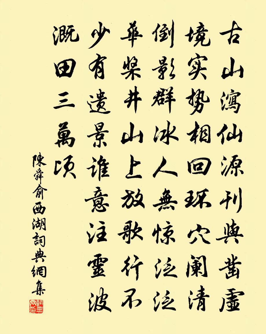 詩詞名句歷史字典書法欣賞書法字典國語詞典說文解字康熙字典古漢語字典標 題 作 者 詩 句 西湖作者:陳舜俞 朝代:宋代西湖原文古山瀉仙源,刊與鑿虛境。實勢相迴環,穴闌清倒影。群冰人無驚,泛泛華槳井。山上放歌行,不少有遺景。誰意注靈波,溉田三萬頃。詩詞問答問:西湖的作者是誰?答:陳舜俞問:西湖寫於哪個朝代?答:宋代陳舜俞西湖書法欣賞西湖書法作品詩詞推薦謝佛眼師號釋慧開〔宋代〕皇恩頒自九重城,雨露纏沾草木榮。佛祖門庭增瑞氣,四海歡呼萬歲聲。忠心護國成勳業,君父開臣佛眼睛。壽山題趙平叔豹隱堂石延年〔宋代〕熊非清渭逢何暮,龍臥南陽去不還。年少官游今郡守,蔚然惟在立談間。春日閒居即事杜荀鶴〔唐代〕未得青雲志,春同秋日情。花開如葉落,鶯語似蟬鳴。道合和貧守,詩堪與命爭。饑寒是吾事,斷定不歸耕。行年陸游〔宋代〕行年過七十,與世兩相忘。墨沼龜魚樂,藥園芝術香。吾生一蟲臂,世路幾羊腸。楮弁新裁就,翛然學道裝。侍宴武三思山第應制賦得風字張說〔唐代〕梁王池館好,曉日鳳樓通。竹町羅千衛,蘭筵降兩宮。清歌芳樹下,妙舞落花中。臣覺筵中聽,還如大國風。西州詞(吳聲)溫庭筠〔唐代〕悠悠復悠悠,昨日下西州。西州風色好,遙見武昌樓。武昌何鬱郁,儂家定無匹。小婦被流黃,登樓撫瑤瑟。朱弦奉和泛江詩庾信〔南北朝〕春江下白帝。畫舸向黃牛。錦纜回沙磧。蘭橈避荻洲。濕花隨水泛。空巢逐樹流。建平船{姊女=木}下。荊門戰太學秋試封彌夜深獨坐懷考試諸友虞儔〔宋代〕衡鑑高懸已自公,修嚴官禁不通風。樊牆便有河山隔,夢寐猶疑笑語同。離索暫應疎酒盞,往來爭敢遞詩筒。燈花偶書塔塢水中石何夢桂〔宋代〕白石兮磷磷,清泉兮泠泠。岸有蒲兮水有芹。敲竹筇兮金石聲,長嘯歌兮驚鬼神。世間豈無宦海之可航,仕路之可游金精山黃升〔宋代〕曳履江城北,逍遙訪仙鄉。掃卻千里恨,愛此六月涼。雲根埋宿雨,木末酣斜陽。峭崖列岩竇,老樹攀穹蒼。地坼菩薩蠻(戲林推)劉克莊〔宋代〕小鬟解事高燒燭。群花圍繞摴蒲局。道是五陵兒。風騷滿肚皮。玉鞭鞭玉馬。戲走章台下。笑殺灞橋翁。騎驢風雪秋懷十首韓元吉〔宋代〕酒熟橙黃盛物華,重陽無客不思家。鵝兒剪雪開岩桂,鶴羽攢金散菊花。端午帖子太上皇帝閣周必大〔宋代〕美景良辰二聖歡,時新絡繹走雕盤。固應慈孝移風俗,安用梟羹賜百官。秋夜獨坐(一作冬夜書懷)王維〔唐代〕獨坐悲雙鬢,空堂欲二更。雨中山果落,燈下草蟲鳴。白髮終難變,黃金不可成。欲知除老病,唯有學無生。晚秋集晏太尉西園宋祁〔宋代〕邂逅翹材客,乘秋共涉園。淺葩歡所媚,寒日醉中暄。目遠鴻堪送,林深鵲自翻。長年無所嗜,惟有不空罇。樂天少傅五月長齋廣延緇徒謝絕文友坐成暌間因以戲之劉禹錫〔唐代〕五月長齋戒,深居絕送迎。不離通德里,便是法王城。舉目皆僧事,全家少俗情。精修無上道,結念未來生。賓閤頃游龍井得一聯王伯齊見兒輩因足成之樓鑰〔宋代〕路入風篁上翠微,老龍蟠井四山圍。水真綠淨不可唾,魚若空行無所依。勝處雖多終莫及,舊遊誰在事皆非。只今春日陳藻〔宋代〕獨上譙樓日一廻,春風桃李滿城開。狂夫欲語無人聽,呼取閒雲共酒杯。光祿庵二首蘇軾〔宋代〕城中太守的何人,林下先生非我身。若向庵中覓光祿,雪中履跡鏡中真。謁仙行贈萬書記白玉蟾〔宋代〕嶰管飛葭方孟簽,青女仍前行夜惡。連日東風料峭寒,黃鸝聲斷梅花落。客來武夷訪靈蹤,八字洞門無鎖鑰。溪頭名句推薦落葉人何在,寒雲路幾層。李商隱《北青蘿》 黃梅時節家家雨,青草池塘處處蛙。趙師秀《約客 / 有約》 蘭陵美酒鬱金香,玉碗盛來琥珀光。李白《客中行 / 客中作》 雲山行處合,風雨興中秋。高適《送魏八》 天地之道,可一言而盡也。其為物不貳,則其生物不測。子思《中庸·第二十六章》 今歲今宵盡,明年明日催。史青《應詔賦得除夜》 誰知道,斷煙禁夜,滿城似愁風雨劉辰翁《永遇樂·璧月初晴》 竹疏虛檻靜,松密醮壇陰。張泌《女冠子·露花菸草》 傷高懷遠幾時窮。無物似情濃。張先《一叢花令·傷高懷遠幾時窮》 碧虛無雲風不起,山上長松山下水。劉禹錫《八月十五夜桃源玩月》