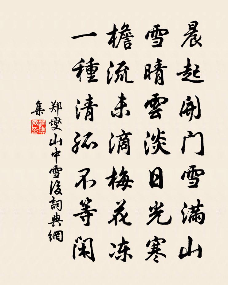 晨起開門雪滿山,雪晴雲淡日光寒。檐流未滴梅花凍,一種清孤不等閒。