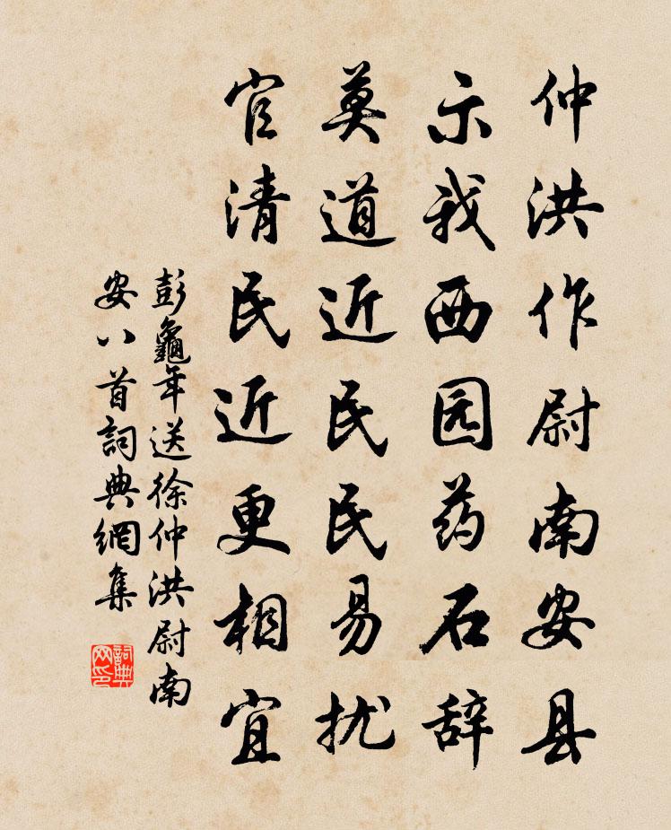 詩詞名句歷史字典書法欣賞書法字典國語詞典說文解字康熙字典古漢語字典標 題 作 者 詩 句 送徐仲洪尉南安八首作者:彭龜年 朝代:宋代送徐仲洪尉南安八首原文仲洪作尉南安縣,示我西園藥石辭。莫道近民民易擾,官清民近更相宜。詩詞問答問:送徐仲洪尉南安八首的作者是誰?答:彭龜年問:送徐仲洪尉南安八首寫於哪個朝代?答:宋代彭龜年送徐仲洪尉南安八首書法欣賞送徐仲洪尉南安八首書法作品詩詞推薦昨雖移韻於蘭然石鼎聯章不可以不成也再賦一鄭清之〔宋代〕續詩愧無修綆力,意緒中斷軻母織。掉頭吟坐欲成寐,出吻悲鳴方願息。君詩愛梅筆不停,四疊陽關人未識。冰壺奉和堯夫強至〔宋代〕固窮終不悔沉淪,滿腹深藏上古珍。手寫新詩成幾卷,亦教餘事照千春。長思仙馬鈺〔元代〕酒初醒。夢初驚。幻化何須戀利名。灰心遠世情。月初明。性初平。倒溯清流過玉濂。黃芽漸漸榮。送文總管朝燕四首劉應鳳〔宋代〕夾道紅旗駐馬蹄,鄉人將喜又將疑。天留中子繼孤竹,誰向西山飯伯夷。送鄭雪屋歸里李昴英〔宋代〕征衣點落紅,君去與春同。貧到歸時見,吟多醉後工。不應冠尚鶡,自許氣如虹。忽著看山眼,飛帆吸快風。秋老,四境雨已沛然,晚坐籌邊樓,方議祈晴范成大〔宋代〕歲晚羈懷有所思,秋來病骨最先知。鏡中公案已甘老,紙上課程休諱痴。西堰頗聞江漲急,東山猶說雨來遲。錦城句任希夷〔宋代〕二三疏竹夏無暑,一兩殘僧書掩門。觀海陳襄〔宋代〕天柱支南極,蓬山壓巨鰲。雲崩石道險,潮落海門高。客館聞鼉鼓,秋風憶蟹螯。倚欄望鄉墅,千里楚江拜皋。贈饒陽張司戶燧李白〔唐代〕朝飲蒼梧泉,夕棲碧海煙。寧知鸞鳳意,遠托椅桐前。慕藺豈曩古,攀嵇是當年。愧非黃石老,安識子房賢。功業偈傾一百六十九首釋智朋〔宋代〕此大樓閣,無住無去。此樓閣門,無開無閉。作者同歸,中勞彈指。浪淘沙(大風作)劉辰翁〔宋代〕卷海海翻杯。傾動蓬萊。似嫌到處馬頭埃。雨洗御街流到我,吹向潮回。寒似雪天梅。安石榴開。繡衾重暖笑爐灰題金陵雜興詩後八首薛師董〔宋代〕劉郎之後更蘇郎,不枉隨人入建康。秦水鐘山幾相識,前年忽識好文章。白龍洞張自明〔宋代〕白龍洞口白龍台,一俯南天眼豁開。蒼壁漫題三數字,後人還笑我曾來。題管道升修竹幽蘭圖乾隆〔清代〕裊裊猗猗綠水濱,幽香孤節自相親。世間盡有丹青手,寫照端須似此人。春日雜興十首秦觀〔宋代〕桃李用事辰,鮮明奪雲綺。繁華一朝去,默默慚杞梓。時徂鷹化鳩,地遷橘為枳。獨有羨門生,後天猶不死。臨桂令以薦當趨朝置酒召客戲作二十八字遣六張嵲〔宋代〕雙鳧舊作朝天計,一鶚新收薦士書。不惜持杯相暖熱,白頭慈母最憐渠。漁具詩釣車陸龜蒙〔唐代〕溪上持只輪,溪邊指茅屋。閒乘風水便,敢議朱丹轂。高多倚衡懼,下有折軸速。曷若載逍遙,歸來臥雲族。寒食日沙縣雨中看薔薇(己巳)韓偓〔唐代〕何處遇薔薇,殊鄉冷節時。雨聲籠錦帳,風勢偃羅幃。通體全無力,酡顏不自持。綠疏微露刺,紅密欲藏枝。愜意和太素同看梅花寄子華韓維〔宋代〕寒林凍卉誰觀者,繁艷清香自得子。天賦好花如有待,日尋幽徑不知疲。未逢驛使空懷遠,猶喜山翁亦好奇。昔歲呈王侍郎昆仲二首趙蕃〔宋代〕先契今余幾,交情不易論。疇能逾薄俗,未肯棄衰門。慨念我伯仲,仰懷公弟昆。自知真瓦礫,那得並璵璠。誰謂名句推薦數萼初含雪,孤標畫本難。崔道融《梅花》 莫道君行早,更有早行人。佚名《增廣賢文·上集》 至今思項羽,不肯過江東。李清照《夏日絕句》 離人心上秋。吳文英《唐多令·惜別》 自暴者,不可與有言也;自棄者,不可與有為也。孟子《孟子·離婁章句上·第十節》 夫賞者,所以喜眾,令士忘死也。罰者,所以正亂,令民畏上也。孫臏《孫臏兵法·威王問》 舞殿冷袖,風雨淒淒。杜牧《阿房宮賦》 法之不行,自於貴戚。司馬遷《史記·秦本紀》 聞道梅花坼曉風,雪堆遍滿四山中。陸游《梅花絕句》 人情送匹馬,買賣不饒針!佚名《增廣賢文·下集》