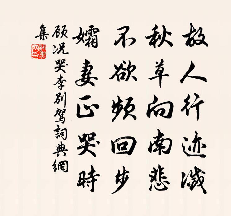 詩詞名句歷史字典書法欣賞書法字典國語詞典說文解字康熙字典古漢語字典標 題 作 者 詩 句 哭李別駕作者:顧況 朝代:唐代哭李別駕原文故人行跡滅,秋草向南悲。不欲頻回步,孀妻正哭時。詩詞問答問:哭李別駕的作者是誰?答:顧況問:哭李別駕寫於哪個朝代?答:唐代問:哭李別駕是什麼體裁?答:五絕顧況哭李別駕書法欣賞哭李別駕書法作品注釋全唐詩:卷267_23詩詞推薦酴醾依柏引蔓上冒其顛崔鶠〔宋代〕春風亦已老,自厭丹采媚。獨留白雪藥,灑此千尺翠。嵯峨珠籠冠,縹緲冒佛髻。幽香勿襲人,恐為真色累。但原次韻岩起綠萼梅李彌遜〔宋代〕村上未聞睍睆,杯中初薦屠酥。誰遣雲英萼綠,臨風搖曳輕裾。偶至東堂范成大〔宋代〕岸幘蕭騷雪滿簪,一閒真是直千金。歸來栗里多情話,病後香山少醉吟。久坐 * 焦葉放,閒拖藜杖蘚花深。飢時偈頌二百零五首釋正覺〔宋代〕風不鳴條,雨不破塊,會不會兮還信采。廓廓落落兮大方無外,跛跛挈挈兮大功不宰,穩穩密密兮心安如海。南園十三首李賀〔唐代〕花枝草蔓眼中開,小白長紅越女腮。可憐日暮嫣香落,嫁與春風不用媒。宮北田塍曉氣酣,黃桑飲露窣宮簾。長腰玉蕊唐彥謙〔唐代〕玉蕊兩高樹,相輝松桂旁。向來塵不雜,此夜月仍光。秀掩叢蘭色,艷吞穠李芳。世人嫌具美,何必更清香。胡料院出示車攻圖仍索俚作樂雷發〔宋代〕九壤臥龍呼不起,乳臭談兵空滿耳。書生未識玉帳經,且抱此圖究終始。姬家出車詠,嬴家小戎詩。衛家武剛扞突挽曾原伯大卿孫應時〔宋代〕夙昔吾何幸,龍門獲御公。青燈鳴夜雨,白髮對春風。契闊今安訪,蹉跎愧所蒙。源流千古意,鉛槧若為功。楊莊鋪彭可軒〔宋代〕芳草迢迢去路,垂楊脈脈長亭。野渡半篙水碧,斜陽數點山青。不寐四首楊萬里〔宋代〕非關枕上愛喔詩,聊復銷愁片子時。老眼強眠終不夢,空腸暗響訴長肌。翻來覆去體都痛,乍暗忽明燈為誰。只道解機政得請題歸舟袁說友〔宋代〕浮沉宦海笑童顛,好上鴟夷老子船。今日君恩賜骸骨,半篙秋水送歸田。山樂官釋文珦〔宋代〕嗚呼有鳥山樂官,鳴聲宛轉空林間。恐是執簧秉翟者,遺形變化之遊魂。生兮不遇聖明世,千載而下猶煩冤。遺之題嚴子陵釣台陳鑒之〔宋代〕渭濱釣魚一叟發垂釣魚素,西伯釣魚與之無雅釣魚故。幡然為舍釣魚竿。八極風雲生指顧。先生少與文叔游,眼看八聲甘州 贈易自然禱雨有感梁寅〔元代〕喜神龍飛雨遍秋郊,黃河自天來。是蟠溪逸士,胸中造化,掌上雲雷。壇峙吟峰東畔,稽首望仙台。絳節霓衣,擁上鄭參政四十韻敖陶孫〔宋代〕吾閩天下選,人傑聖時蕃。佐戴高前諜,承家裕後昆。海六當劍立,洋嶼焱鵬騫。氣色來回互,耆明有討論。蟠胸寄黃充陳師道〔宋代〕俗子推不去,可人費招呼。世事每如此,我生亦何娛。黃生後來秀,純茂靜者徒。不見動經月,來亦不須臾。人事復作山字絕句呈圓機晁說之〔宋代〕羊頭山笑雞頭山,我粲文章爾漫頑。遊子白頭顏不少,任人譏侮亢高顏。夏日陪馮許二侍郎與嚴秘書游昊天觀覽…同里楊華州中丞武元衡〔唐代〕三伏草木變,九城車馬煩。碧霄回騎射,丹洞入桃源。台殿雲浮棟,緌纓鶴在軒。莫將真破妄,聊用靜持喧。石甃句魯仕能〔宋代〕萬劫灰中存世界,千層浪里惜儒珍。柳文丙〔唐代〕何事動吟喔,長□翠色和。垂陰千樹少,送別一枝多。帶霧籠彭澤,搖風舞汴河。只因隋帝植,民力幾銷磨。名句推薦失之毫釐,差以千里。班固《漢書·傳·東方朔傳》 是故置本不安者,無務豐末。墨子《墨子·02章 修身》 白下有山皆繞郭,清明無客不思家。高啟《清明呈館中諸公》 歌舞尊前,繁華鏡里,暗換青青發。薩都剌《念奴嬌·登石頭城次東坡韻》 賞心樂事共誰論?花下銷魂,月下銷魂。唐寅《一剪梅·雨打梨花深閉門》 胸中有誓深于海,肯使神州竟陸沉?鄭思肖《二礪》 箴者,針也,所以攻疾防患,喻針石也。劉勰《文心雕龍·銘箴》 死之能受,痛之難忍,刑人取其不堪。來俊臣《羅織經·刑罰卷第十一》 塞下秋來風景異,衡陽雁去無留意。范仲淹《漁家傲·秋思》 潮打三更瓜步月,雨荒十里紅橋火。鄭燮《滿江紅·思家》