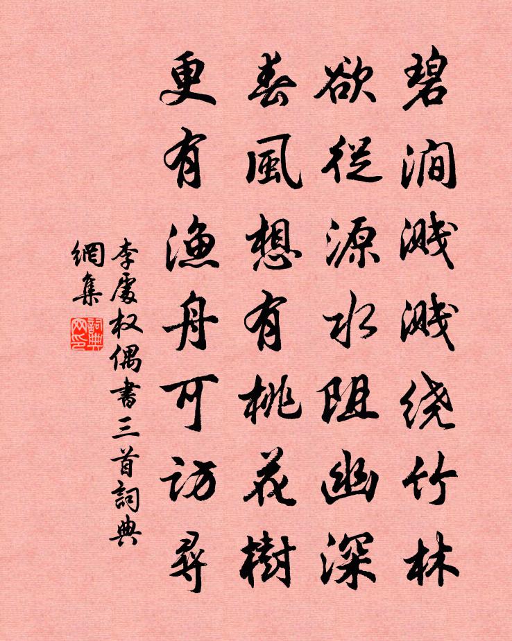 - 林花著雨胭脂濕,水荇牽風翠帶長。杜甫《曲江對雨》