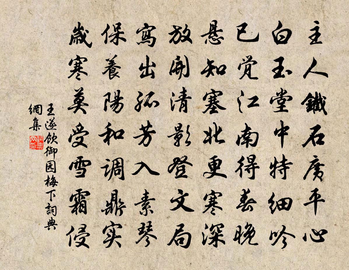詩詞名句歷史字典書法欣賞書法字典國語詞典說文解字康熙字典古漢語字典標 題 作 者 詩 句 飲御園梅下作者:王遂 朝代:宋代飲御園梅下原文主人鐵石廣平心,白玉堂中1|1特細吟。已覺江南得春晚,懸知塞北更寒深。放開清影登文局,寫出孤芳入素琴。保養陽和調鼎實,歲寒莫受雪霜侵。詩詞問答問:飲御園梅下的作者是誰?答:王遂問:飲御園梅下寫於哪個朝代?答:宋代王遂飲御園梅下書法欣賞飲御園梅下書法作品詩詞推薦贈崔郎中宗之 時謫官金陵李白〔唐代〕胡雁拂海翼,翱翔鳴素秋。驚雲辭沙朔,飄蕩迷河洲。有如飛蓬人,去逐萬里游。登高望浮雲,仿佛如舊丘。日從金口步(在江北漢陽軍,下必鐵也)王周〔唐代〕兩山斗咽喉,群石矗牙齒。行客無限愁,橫吞一江水。禽言十詠泥活活姚勉〔宋代〕黃梅蒸雨已幾時,路泥活活沒馬蹄。前山咫尺似千里,十步九跌行人疲。漫塍白水秧欲老,黃雲漸黑麥欹倒。泥污次韻王司戶梅花五絕下得用古人意及比婦人玉王之望〔宋代〕聞說江梅已惱人,沖寒著意去尋春。枝枝細看枝枝好,歲歲相逢歲歲新。和裴傑秀才新櫻桃杜牧〔唐代〕新果真瓊液,未應宴紫蘭。圓疑竊龍頷,色已奪雞冠。遠火微微辨,繁星曆歷看。茂先知味好,曼倩恨偷難。忍用早梅謝燮〔南北朝〕迎春故早發,獨自不疑寒。畏落眾花後,無人別意看。寄題楊懋卿孝感堂劉克莊〔宋代〕哭時聞者亦欷噓,雙鶴隨聲下碧虛。帝出絲綸照穹壤,官施綽楔表門閭。今無陶侃誰能爾,古有蘇耽莫是渠。華發南浦歲暮對酒送王十五歸京白居易〔唐代〕臘後冰生覆湓水,夜來雲暗失廬山。風飄細雪落如米,索索蕭蕭蘆葦間。此地二年留我住,今朝一酌送君還。相看傷死馬宋庠〔宋代〕辨道曾資智,嘶風忽絕音。故蹄休踐雪,朽骨詎酬金。附尾讒蠅散,投鞍齧鼠侵。棄帷宜一報,盡力有前箴。和京教李景平王邁〔宋代〕美人清曉夢催班,老子心清只愛山。晚歲松筠留素節,艷春桃李付紅顏。官鹿鶴料猶堪活,援寡龍門莫浪攀。滿眼清平樂李白〔唐代〕禁闈清夜,月探金窗罅。玉帳鴛鴦噴蘭麝,時落銀燈香□。女伴莫話孤眠,六宮羅綺三千。一笑皆生百媚,宸衷教范致政輓詞樓鑰〔宋代〕義俠久無跡,吾鄉見此翁。紫微欣稅駕,飛將許同功。銀茜聯恩渥,金蘭藹義風。雖增嬴博恨,猶喜桂成叢。送程榮州被召二首李石〔宋代〕出處人情異,寒暄節物殊。腳輕貪遠路,眼轉隔重湖。近例占郎宿,頻年已守符。盛時人與地,尺一費招呼。青霞西亭蒲壽宬〔宋代〕長松被薜荔,怪石生煙霞。檐牙木杪見,上有山人家。鄭典設自施州歸杜甫〔唐代〕吾憐滎陽秀,冒暑初有適。名賢慎所出,不肯妄行役。旅茲殊俗遠,竟以屢空迫。南謁裴施州,氣合無險僻。攀援七娘子王灼〔宋代〕花明霧暗非花霧。似春屏、短夢無憑據。夜月將來,曉燈催去。半衾餘暖空留住。情柔意密愁千縷。想一聲、雞唱次韻文潛立春日三絕句黃庭堅〔宋代〕眇然今日望歐梅,已發黃州首更回。試問淮南風月生,新年桃李為誰開。次程國舍楊公遠〔宋代〕欲會春風欠宿緣,識荊琳宇憶當年。初逢脫略知心地,再見從容值暑天。萬卷詩書君有種,一犁煙雨我無田。曉來送蔡伯畛往潮州四首陳藻〔宋代〕迎侍雖然勝左遷,戀鄉畢竟怕離筵。讀書不合能譏佛,罰向潮州住幾年。東籬雜書陸游〔宋代〕桃李成塵土,來禽始著花。病夫猶枕上,春事又天涯。巷陌鞦韆夢,簾櫳燕子家。野僧來問訊,強把半甌茶。名句推薦來時父母知隔生,重著衣裳如送死。王建《渡遼水》 搜句忌於顛倒,裁章貴於順序劉勰《文心雕龍·章句》 花徑不曾緣客掃,蓬門今始為君開。杜甫《客至》 明朝且做莫思量,如何過得今宵去。周紫芝《踏莎行·情似遊絲》 有福傷財,無福傷己。佚名《增廣賢文·上集》 水墨畫疏窗,孤影淡瀟湘。納蘭性德《木蘭花慢·立秋夜雨送梁汾南行》 攀出牆朵朵花,折臨路枝枝柳。關漢卿《一枝花·不伏老》 但責己,不責人,此遠怨之道也;但信己,不信人,此取敗之由也。王永彬《圍爐夜話·第八五則》 水溢芙蓉沼,花飛桃李蹊。薛道衡《昔昔鹽》 欲黃昏。雨打梨花深閉門。李重元《憶王孫·春詞》