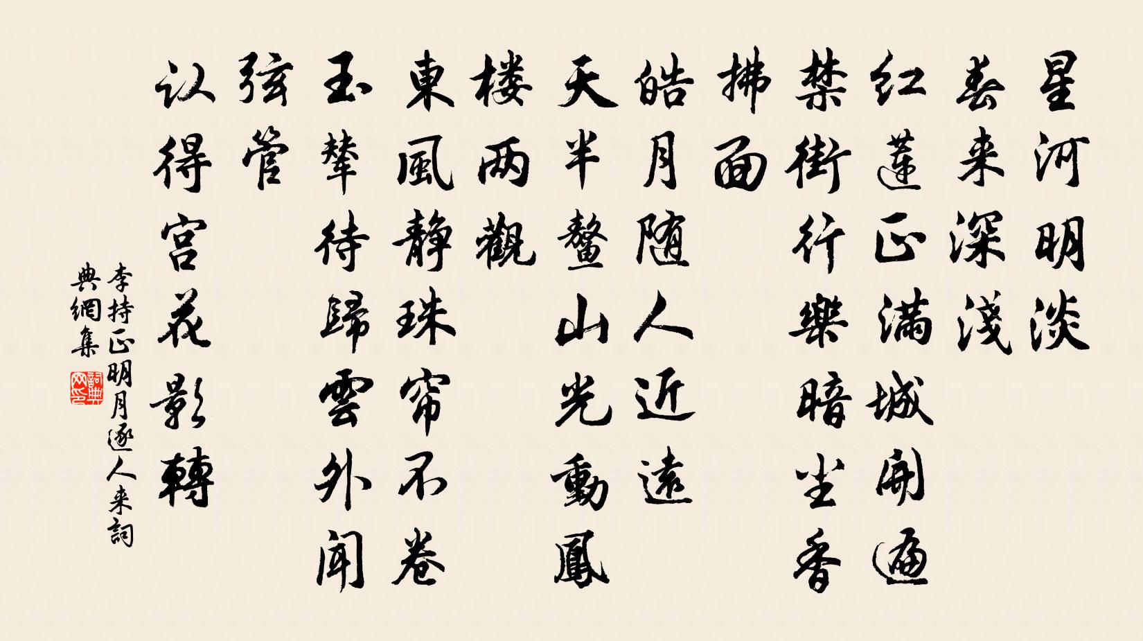 明月逐人來:李持正首創的詞調,詞牌名取自蘇味道《正月十五日夜半中的詩句。