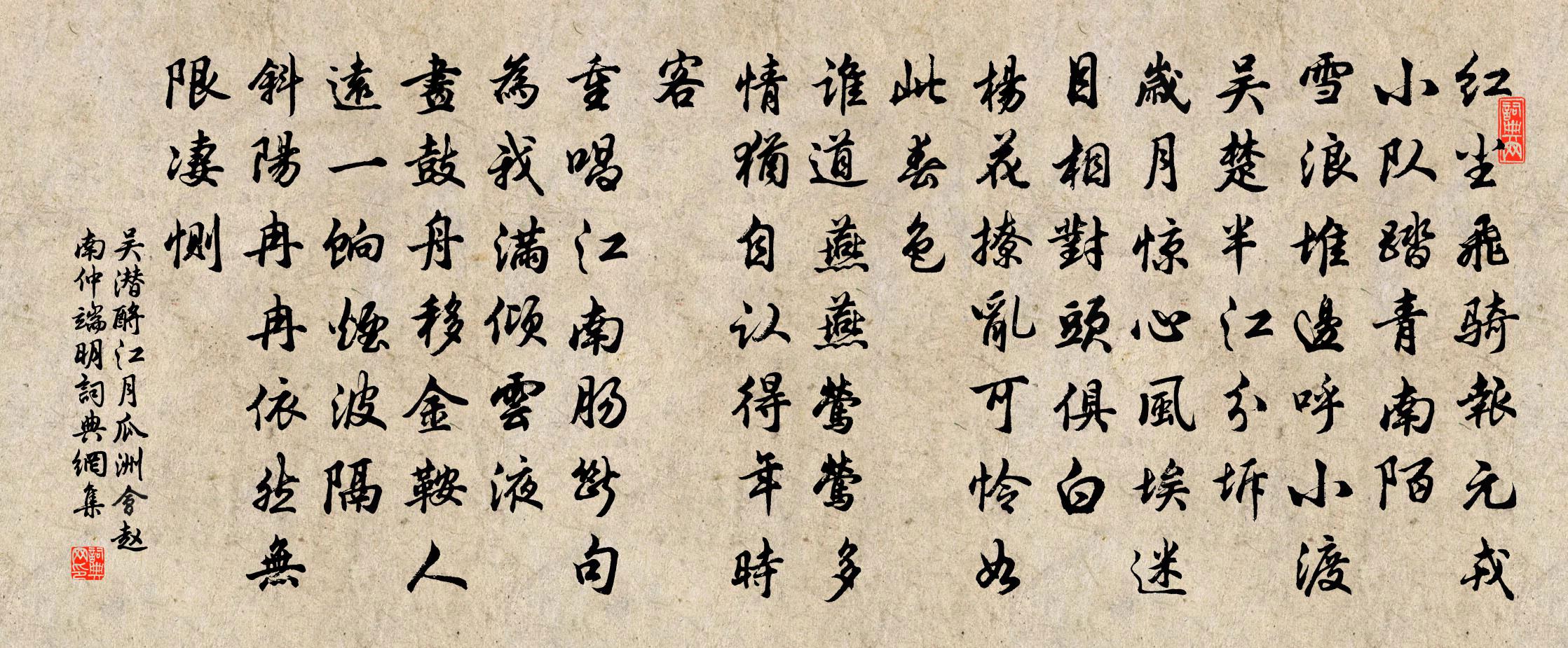 紅塵飛騎,報元戎小隊,踏青南陌。雪浪堆邊呼小渡,吳楚半江分坼。