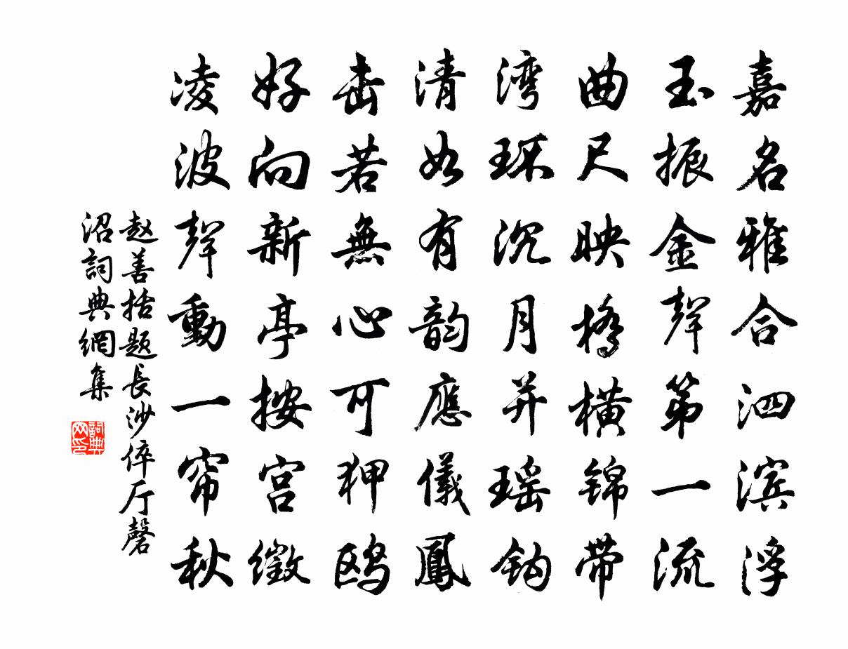 詩詞名句歷史字典書法欣賞書法字典國語詞典說文解字康熙字典古漢語字典標 題 作 者 詩 句 題長沙倅廳磬沼作者:趙善括 朝代:宋代題長沙倅廳磬沼原文嘉名雅合泗濱浮,玉振金聲第一流。曲尺映橋橫錦帶,灣環沉月並瑤鉤。清如有韻應儀鳳,擊若無心可狎鷗。好向新亭按宮徵,凌波聲動一簾秋。詩詞問答問:題長沙倅廳磬沼的作者是誰?答:趙善括問:題長沙倅廳磬沼寫於哪個朝代?答:宋代趙善括題長沙倅廳磬沼書法欣賞題長沙倅廳磬沼書法作品詩詞推薦蝶戀花(和楊濟翁韻,首句用丘宗卿書中語)辛棄疾〔宋代〕點檢笙歌多釀酒。蝴蝶西園,暖日明花柳。醉倒東風眠永晝。覺來小院重攜手。可惜春殘風雨又。收拾情懷,長把烏夜啼(中秋)劉辰翁〔宋代〕素娥醉語曾留。又中秋。待得重圓誰妒、兩悠悠。向愁旱,今愁水,沒中洲。看取明朝晴去、不須愁。緣識宋太宗〔宋代〕逢春總有看花情,時節心迷不可輕。但只追游貪聚樂,幾人頂戴愧三清。送吳季野太博移蜀靈泉先至輦梅堯臣〔宋代〕葦箔蠶齊老,桑林葉更生。楚禽多異響,蜀棧未堪行。客散岸傍席,馬還溪上城。過都當有問,為語欲岩耕。九月西城無澗同陳道士衡上人戴表元〔宋代〕巾衣三客不須同,泉石相看我亦翁。最惜一軒秋爛熳,芙蓉池上木犀風。高氏石雲薛嵎〔宋代〕閬仙曾得句,月下自推敲。以此幽閒趣,長為淡泊交。水寒梅照影,霜滑鳥歸巢。余亦同懷者,從君結把茅。田家行二首趙蕃〔宋代〕雨聲颯颯斷復來,間作隱隱兼出雷。田家作苦樂不哀,拔秧插田政時哉。誰知有客洞庭上,船破逢疎蔽無障。何如百舌顧逢〔宋代〕得意春風裡,山林異樣鳴。雖無三寸舌,解作百禽聲。巧處難求色,聽時可辨名。金籠容不得,應是愧流鶯。書林十景詩謝枋得〔宋代〕朔風吹折寒梅枝,嚴凝凍合彤雲痴。華峰幾立亘今古,堆累積聚皆昏迷。楊花飛舞盈三尺,蜨翅交加呈六了。朝陽水調歌頭(春壽太守)佚名〔宋代〕遲日籠晴書,新火斂余寒。東君著意,留戀春色在人間。故遣蓬瀛仙侶,來布陽和德澤,造化寄毫端。麾節經行處月下口占戲子溫李新〔宋代〕萬埯層陰宿霧消,冰輪初上鏡天遙。此時仙漢欄乾曲,竹影梅風笑寂寥。惜奴嬌(戲同官)辛棄疾〔宋代〕風骨蕭然,稱獨立、群仙首。春江雪、一枝梅秀。小樣香檀,映朗玉、纖縴手。未久。轉新聲、泠泠山溜。曲里傳病中書寇準〔宋代〕多病將經歲,逢迎故不能。書惟看藥錄,客只待醫僧。壯志銷如雪,幽懷冷似冰。郡齋風雨後,無睡對寒燈。擬古三章留別果山同官吳泳〔宋代〕邊馬思北依,晨風思北飛。役役會有還,之子胡不歸。欲歸又北征,適與風馬期。憂端來無方,人則莫之知。不傷蔬食陸游〔宋代〕肉食從來意自疑,齋盂況與病相宜。老羝昔作春蔬祟,斷稿今無晚釣詩。陌上煙苕誰采采?牆陰風葉正離離。人生再如蒲圻二首王炎〔宋代〕雲暝雨將雪,天低風正寒。簡書端可畏,行李不遑安。要路飛騰好,窮途進取難。折腰徒自苦,吾亦悔儒冠。同庾信答林法師詩江總〔隋代〕客行七十歲。歲暮遠徂征。塞雲凝不解。隴水凍無聲。君看日遠近。為忖長安城。祝英台近葛長庚〔宋代〕月如酥,天似玉,長嘯弄孤影。十二樓台,昨夢暗尋省。自憐露滿衣襟,風吹毛髮,渾無寐、寒宵漏永。捧香鼎。和楊秀才二首胡寅〔宋代〕林下何所樂,放懷天地中。青山供客眼,明月與君同。靜聽蕉窗雨,閒披芰沼風。未忘蒿目意,時一夢周公。行至龍門先寄堯夫先生李復圭〔宋代〕碧洛青嵩刮眼明,馬頭次第似相迎。天街高士還知否,好約南軒醉一觥。名句推薦紫菊氣,飄庭戶,晚煙籠細雨。李煜《謝新恩·冉冉秋光留不住》 又疑瑤台鏡,飛在青雲端。李白《古朗月行》 情往似贈,興來如答。劉勰《文心雕龍·物色》 得饒人處且饒人。曹雪芹《紅樓夢·第五十九回》 知否,知否?應是綠肥紅瘦。李清照《如夢令·昨夜雨疏風驟》 楓林凋翠,寒雁聲悲。趙長卿《柳梢青·過何郎石見早梅》 山氣日夕佳,飛鳥相與還。陶淵明《飲酒·其五》 必得之事,不足賴也;必諾之言,不足信也。管仲《管子·形勢》 以五十步笑百步。孟子《孟子·梁惠王章句上·第三節》 何處相逢,登寶釵樓,訪銅雀台。劉克莊《沁園春·夢孚若》
