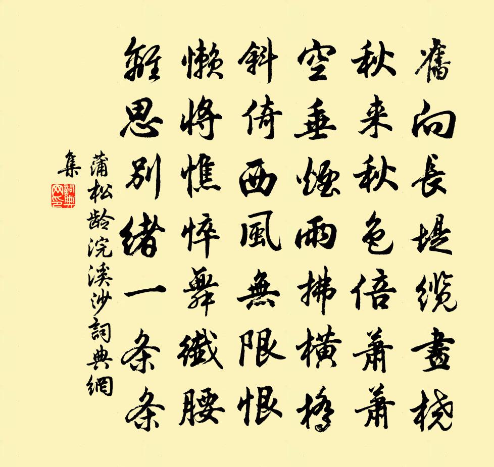 舊向長堤纜畫橈,秋來秋色倍蕭蕭,空垂煙雨拂橫橋。斜倚西風無限恨,懶將憔悴舞纖腰,離思別緒一條條。