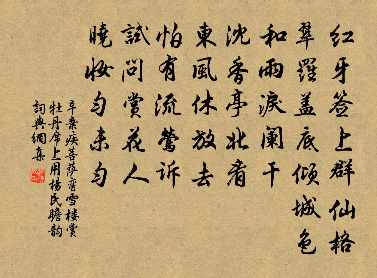 紅牙籤上群仙格。翠羅蓋底傾城色。