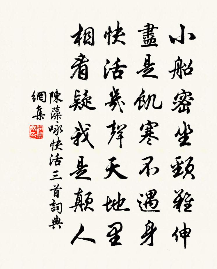 詩詞名句歷史字典書法欣賞書法字典國語詞典說文解字康熙字典古漢語字典標 題 作 者 詩 句 詠快活三首作者:陳藻 朝代:宋代詠快活三首原文小船密坐頸難伸,儘是饑寒不遇身。快活幾聲天地里,相看疑我是顛人。詩詞問答問:詠快活三首的作者是誰?答:陳藻問:詠快活三首寫於哪個朝代?答:宋代陳藻詠快活三首書法欣賞詠快活三首書法作品詩詞推薦池邊梅花一株盛開王炎〔宋代〕天外青鸞不復歸,蕭蕭短髮日成絲。寒梅不管人憔悴,故著新花滿舊枝。傷賈老鄭獬〔宋代〕世事一毫不掛眼,放懷只用酒為年。已從車後攜一榼,更向杖頭留百錢。顧我曾傳丹鼎訣,疑君便是紫芝仙。忽如送趙君十絕汪莘〔宋代〕一榼村醪插別筵,清風急雨送歸船。望中未是湖州境,便有吳歌唱採蓮。送韶化士乾靈雲古寺基釋法薰〔宋代〕劍客重尋眼翳生,至今孤露不堪聞。老韶直下能扶起,十□精神減八分。鳳翔西池與賈島納涼朱慶餘〔唐代〕四面無炎氣,清池闊復深。蝶飛逢草住,魚戲見人沈。拂石安茶器,移床選樹陰。幾回同到此,盡日得閒吟。大龍湫薛師石〔宋代〕昔聞天下山,衡岳稱崇丘。又聞天下水,江漢為巨流。古有山海經,歷歷敘九州。李唐三百載,詩家無一留。及觀午景書懷陳著〔宋代〕虛齋檐馬自丁東,卻在鶯啼燕語中。整屐欲尋花信息,不知柳絮已隨風。畫髑髏頌釋宗杲〔宋代〕即此形骸,便是其人。一靈皮袋,皮袋一靈。寒食樂詞蔡襄〔宋代〕皇州令節已藏煙,帝渥乘時錫廣筵。和氣去添春色重,恩光來助日華鮮。千聲鳳吹朱門裡,一番花香穀雨前。更喜游石佛寺呂聲之〔宋代〕金吾不必問行由,此去逍遙物外游。半塢白雲藏宿霧,一聲橫笛下歸牛。喜瞻傑閣三生像,藐視業林四海州。為寫自鄞江東泛舟至黃山橋度嶺游白雲寺釋文珦〔宋代〕望望白雲居,崔嵬在碧虛。水窮方度嶺,石峻不容車。舊愛松蘿頂,重來筍蕨余。卻憐清絕景,無地著吟廬。水芭蕉曾幾〔宋代〕寒泉中有小崢嶸,種得芭蕉積漸成。一葉似抽人不見,無窗頭白眼猶明。觀山刑鵝夜歸陳造〔宋代〕巢鵲枝蜩已罷鳴,風聲露氣可勝清。人諳淺瀨安然度,月隔高林未肯明。卻亂宿雲尋去路,漸因更鼓辨孤城。誰知始生七章章八句上皇子嘉王生辰陳傅良〔宋代〕獵人愛麛麌,漁人愛鯤鮞。萬物欣自遂,況也民秉彝。家有舉桉婦,人有譍門兒。王心至於此,壽不數耆頤。送謝倅景英赴闕陳傅良〔宋代〕言詩必南雅,自鄶吾無譏。嗟餘生已晚,觀人以觀詩。人情日變化,往事十九非。相從飾邊幅,欲語懷銜羈。久不廿五兄宣義見招偕諸弟赴新亭宴集即席有作喻良能〔宋代〕瀟灑新亭好,松長桂亦稠。清秋集鴻雁,暇日勸觥籌。既遠含香直,何辭秉燭游。主人情義重,終宴不知休。寄達觀禪師梅堯臣〔宋代〕身在大梁塵土中,心思隱靜雲山里,忽聞乘柸江上歸,月下碧雞啼不巳。秋日有酬(一作寄王師範)羅隱〔唐代〕舊業傳家有寶刀,近聞餘力更揮毫。腰間印佩黃金重,和令狐相公寄劉郎中兼見示長句白居易〔唐代〕日月天衢仰面看,尚淹池鳳滯台鶯。碧幢千里空移鎮,赤筆三年未轉官。別後縱吟終少興,病來雖飲不多歡。酒軍江上看山蘇軾〔宋代〕船上看山如走馬,倏忽過去數百群。前山槎牙忽變態,後嶺雜沓如驚奔。仰看微徑斜繚繞,上有行人高縹渺。舟中名句推薦城中桃李愁風雨,春在溪頭薺菜花。辛棄疾《鷓鴣天·陌上柔桑破嫩芽》 法尚應舍。何況非法。鳩摩羅什譯《金剛經·正信希有》 四月清和雨乍晴,南山當戶轉分明。司馬光《客中初夏》 入春才七日,離家已二年。薛道衡《人日思歸》 小不忍,則亂大謀。孔子弟子《論語·衛靈公篇》 紅蓼渡頭秋正雨,印沙鷗跡自成行,整鬟飄袖野風香。薛昭蘊《浣溪沙·紅蓼渡頭秋正雨》 落花水香茅舍晚,斷橋頭賣魚人散。馬致遠《壽陽曲·遠浦帆歸》 一曲陽關,斷腸聲盡,獨自憑蘭橈柳永《少年游·參差煙樹灞陵橋》 道私者亂,道法者治。韓非及後人《韓非子·詭使》 士有妒友,則賢交不親;君有妒臣,則賢人不至。荀子《荀子·大略》