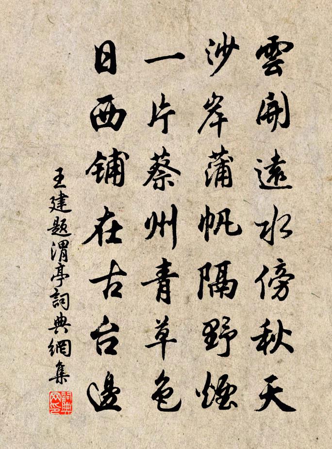 雲開遠水傍秋天,沙岸蒲帆隔野煙。一片蔡州青草色,日西鋪在古台邊。
