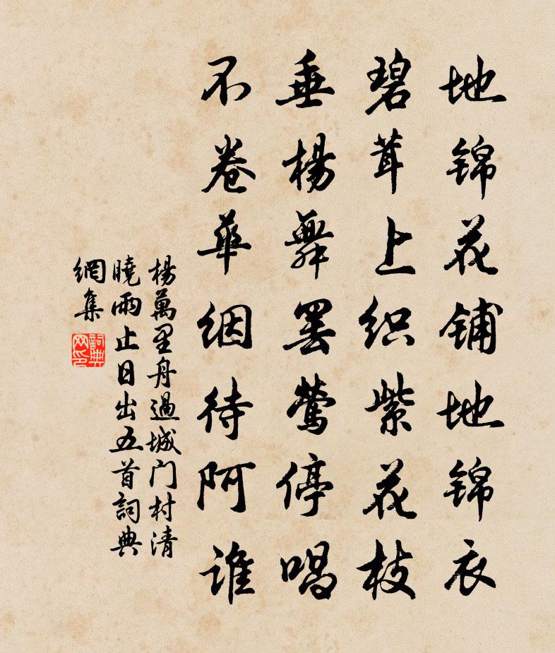地錦花鋪地錦衣,碧茸上織紫花枝。垂楊舞罷鶯停唱,不捲華絪待阿誰。