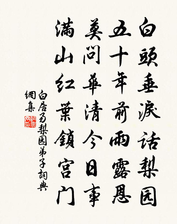 白頭垂淚話梨園,五十年前雨露恩。莫問華清今日事,滿山紅葉鎖宮門。