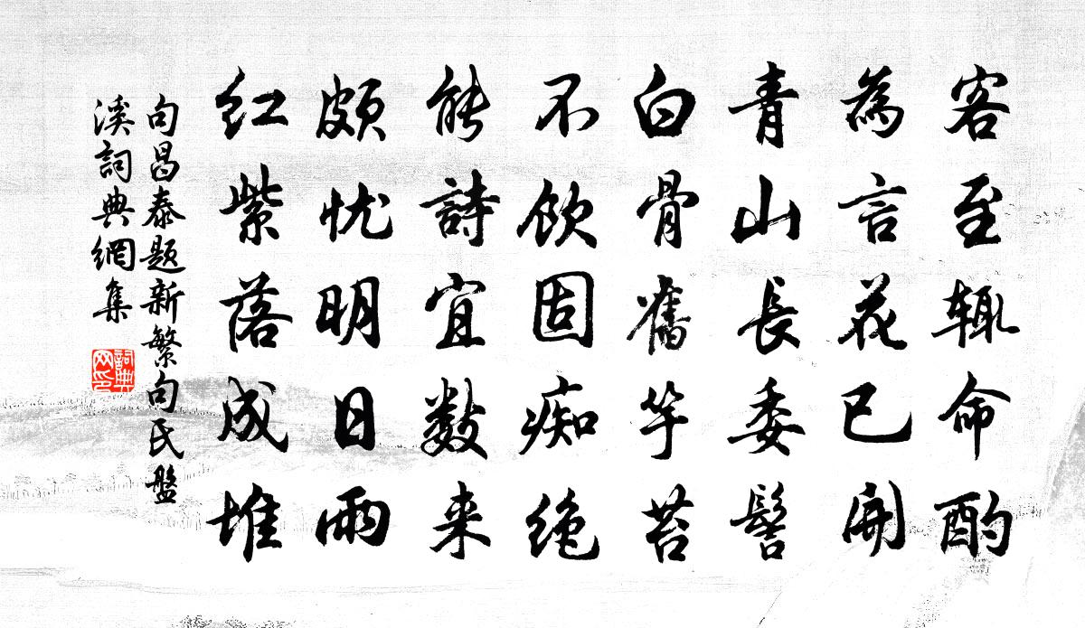 詩詞名句歷史字典書法欣賞書法字典國語詞典說文解字康熙字典古漢語字典標 題 作 者 詩 句 題新繁句氏盤溪作者:句昌泰 朝代:宋代題新繁句氏盤溪原文客至輒命酌,為言花已開。青山長委髻,白骨舊竽苔。不飲固痴絕,能詩宜數來。頗憂明日雨,紅紫落成堆。詩詞問答問:題新繁句氏盤溪的作者是誰?答:句昌泰問:題新繁句氏盤溪寫於哪個朝代?答:宋代句昌泰題新繁句氏盤溪書法欣賞題新繁句氏盤溪書法作品詩詞推薦南柯子(廣德道中遇重午)韓元吉〔宋代〕野杏摶枝熟,戎葵抱葉開。村村簫鼓畫船回。客里不知時節、又相催。角黍堆冰碗,兵符點翠釵。去年今日共傳杯南齊中秋小酌王炎〔宋代〕銀河絡角晚風涼,月入庭除滿地霜。夜靜老翁閒玉斧,天寒仙子舞霓裳。田家旋斸鴟美,野店新篘綠蟻香。草草杯句釋曉瑩〔宋代〕竟日霏微雨。古意呈補闕喬知之沈佺期〔唐代〕盧家少婦鬱金香,海燕雙棲玳瑁梁。九月寒砧催木葉,十年征戍憶遼陽。白狼河北音書斷,丹鳳城南秋夜長。誰為端午帖子太上皇后閣周必大〔宋代〕問安勅使馬如飛,絡繹時新奉母慈。蜀產吳包何足道,蟠桃熟處是瑤池。歸田劉子翬〔宋代〕聲色家有阱,軒裳仕之囚。冥行不知迷,今將返吾輈。愛慕洗余習,清虛樂孤游。亭亭隱仙岩,迎人入雙眸。稻色翡翠曹組〔宋代〕窺魚潛立小荷圓,照水飛鳴更碧鮮。鬥草人歸尋墜翼,綺窗歸去補花鈿。清如玉壺冰盧綸〔唐代〕玉壺冰始結,循吏政初成。既有虛心鑒,還如照膽清。瑤池慚洞澈,金鏡讓澄明。氣若朝霜動,形隨夜月盈。臨人觀海獨孤及〔唐代〕北登渤澥島,回首秦東門。誰屍造物功,鑿此天池源。澒洞吞百穀,周流無四垠。廓然混茫際,望見天地根。白日于飛樂(別筵贈歌妓姊妹)毛滂〔宋代〕並梅兄,雙蝶子,煙縷衫輕。鳳凰釵、繚繞香雲。淡梳妝,□得恁,雪膩酥勻。揉春捻就,更是他、花與精神。黛為張都目益題爪哇王后將相圖方回〔宋代〕闍婆之國古來有,其人裸體蓬厥首。後來改號作爪哇,君僭稱王妻僭後。跣足露乳布纏腰,往往自妍不知醜。千島和慎思詩呈同院諸公蔡肇〔宋代〕客去衣裳嫩,更長燈燭光。隨身一書笈,貯腹萬雕梁。夢舊傳青館,封須拜皁囊。羽翰從此正,天步赤霄長。苦寒三首楊萬里〔宋代〕冰和菜把菜和冰,心喜冬葅齒卻憎。且忍牙車寒一點,教他胸次雪千層。再賦喜雪曾鞏〔宋代〕六花飛舞勢蹁躚,點綴寒林熊更妍。山險龍蛇盤鳥道,野平江海變畲田。人狂奔月非關夜,馬健乘雲別有天。況值題齋壁陸游〔宋代〕平生喜蕭散,垂老厭奔走。三年鏡湖上,樂事未曾有。晨開一卷書,暮把一卮酒。病除覺身輕,赤腳自蹋藕。乃知自都往餘杭懷聶之美司馬光〔宋代〕閣上新文卷,欲逢知己開。相思不能已,欹枕夢君來。太寥歌張志和〔唐代〕化元靈哉,碧虛清哉,紅霞明哉。冥哉茫哉,惟化之工無疆哉。賀新郎 次呂叔泰南城懷古許有壬〔元代〕故壘空如堵。杳無蹤、朝台暮榭,燕歌趙舞。為問人間繁華夢,幾度邯鄲炊黍。只燕子、春來秋去。太液句陳何由新葺附火小閣張耒〔宋代〕低牖僅障風,深爐宿火紅。忘懷榮辱外,無事寂寥中。隕葉鳴寒瓦,飛霜皎夜空。宵分未投宿,飢苦北來鴻。寄令狐侍郎韋應物〔唐代〕三山有瓊樹,霜雪色逾新。始自風塵交,中結綢繆姻。西掖方掌誥,南宮復司春。夕燕華池月,朝奉玉階塵。眾寶名句推薦雄關漫道真如鐵,而今邁步從頭越。 * 《憶秦娥·婁山關》 笑時猶帶嶺梅香。試問嶺南應不好。蘇軾《定風波·南海歸贈王定國侍人寓娘》 天迥雲垂草,江空雪覆沙劉基《古戍》 聞道黃龍戍,頻年不解兵。沈佺期《雜詩三首·其三》 山驛淒涼,燈昏人獨寢。陸游《清商怨·葭萌驛作》 高處鶯啼低蝶舞。何況日長,燕子能言語。劉鉉《蝶戀花·送春》 治亂之藥石,刑罰為重;興平之梁肉,德教為先。程登吉《幼學瓊林·卷四·訟獄》 平生多感激,忠義非外獎。李白《酬裴侍御對雨感時見贈》 生則盡力,死則死耳!張廷玉《明史·列傳·卷二十》 死殃殘亡,非自至也,惑召之也。呂不韋《呂氏春秋·紀·孟春紀》
