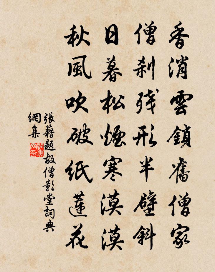 香消雲鎖舊僧家,僧剎殘形半壁斜。日暮松煙寒漠漠,秋風吹破紙蓮花。