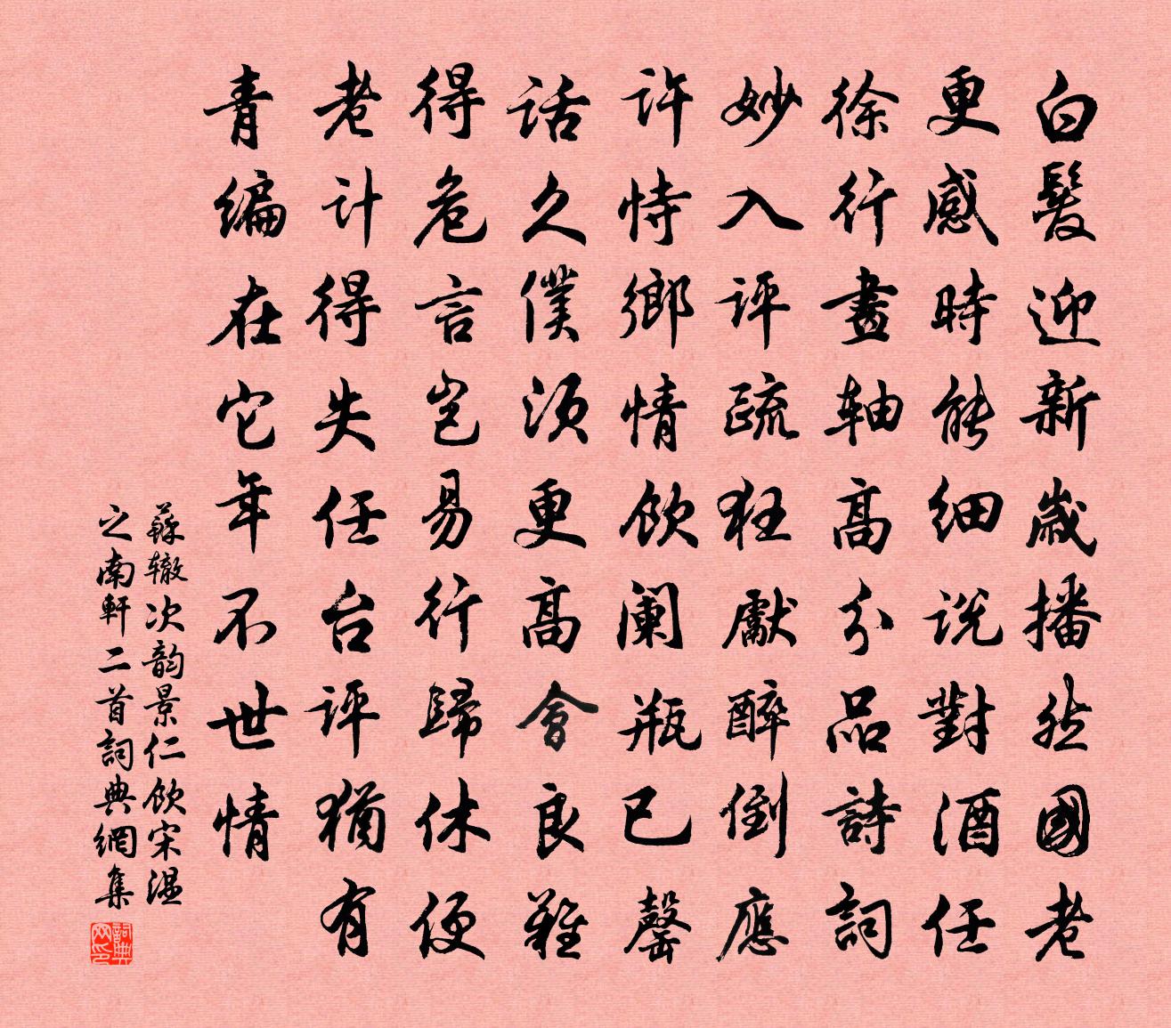 蘇轍次韻景仁飲宋溫之南軒二首書法欣賞