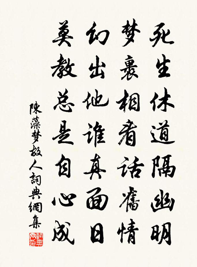 詩詞名句歷史字典書法欣賞書法字典國語詞典說文解字康熙字典古漢語字典標 題 作 者 詩 句 夢故人作者:陳藻 朝代:宋代夢故人原文死生休道隔幽明,夢裹相看話舊情。幻出他誰真面日,莫教總是自心成。詩詞問答問:夢故人的作者是誰?答:陳藻問:夢故人寫於哪個朝代?答:宋代陳藻夢故人書法欣賞夢故人書法作品詩詞推薦冬日雜興六首張耒〔宋代〕水落橋痕在,沙乾岸草枯。霜余槐老壯,風際竹清疏。啄木高逾響,鶺鴒飛且呼。二年親友絕,惟有對禽魚。餘杭倦遊王令〔宋代〕醉倚秋風笑自攻,偶來還去竟何蹤。已夫鳳鳥今不至,行矣鱣鯨非所容。且把心胸同伏虎,誰知頭角是真龍。歸乎南鄉子(今年重九,知命已向成都,感之,次韻)黃庭堅〔宋代〕招喚欲千回。暫得尊前笑口開。萬水千山還麽去,悠哉。酒面黃花欲醉誰。顧影又徘徊。立到斜風細雨吹。見我未送林師道似之赴寧都尉二首王邁〔宋代〕造謗端平歲,時髦一綱空。君為梨嶺後,名在蕊宮中。躐等輕餘子,知音邁鉅公。莫嫌登第晚,試看艾軒翁。述懷寄衡州令狐相公李益〔唐代〕調元方翼聖,軒蓋忽言東。道以中樞密,心將外理同。白頭生遠浪,丹葉下高楓。江上蕭疏雨,何人對謝公。奉陪舅丈祠書彥平主簿兄游慧聚終日小飲上方仲並〔宋代〕憑高情不淺,盡日倚胡床。雲散他山雨,風來古殿香。一川橫晚照,重閣枕秋光。欲寫無窮意,詩凡不擅場。答鄭生歌湘中蛟女〔唐代〕溯青山兮江之隅,拖湘波兮裊綠裾。荷拳拳兮情未舒,匪同歸兮將焉如。羅浮高壽崔制置洪咨夔〔宋代〕羅浮高哉四百四十有二峰,三峰最高拔起金芙蓉。耀真洞天鎖溟濛,鰲背咫尺蓬萊通。璿房瑤室深玲瓏,霞袿霓袽寄梅李龍高〔宋代〕范子經年別陸郎,陸郎遠致一枝香。料伊正作關山夢,望見梅花也斷腸。送陳天與知徽州韓元吉〔宋代〕台閣英名二十年,卜居那得便林泉。履聲舊振星辰上,諫墨猶存雨露邊。欲考治功三府近,且施惠政一州先。黃山烏鴟王令〔宋代〕雄烏無空沖,雌烏無定飛。一巢不易成,兩口千柴枝。已高懼風顛,已下憂人窺。欲集更自翔,既安復重移。烏巢韓信張耒〔宋代〕登壇一日冠群雄,鍾室倉皇念蒯通。能用能誅誰計策,嗟君終自愧蕭公。多稼亭看梅二首楊萬里〔宋代〕先生次第即還家,更上城頭一望賒。行盡荒寒無意思,不如來此看梅花。夏日徐璣〔宋代〕書困當檐立,微風動鬢毛。桐陰遮井暗,鶯語出林高。執熱思時雨,如疲得美醪。居然吟思起,獨步幾周遭。題延射亭楊備〔宋代〕高台蕪沒曲池平,十萬人家古縣城。煙水雲山屏畫裡,闔閭墳域舊都名。望海潮沈伯文〔宋代〕山連嵩岱,疆分齊魯,濟南自古多奇月。魄墮英星,芒剪瑞□,來參漢主龍飛。仙露浥繁枝。振家聲赫奕,金印傳呈希道兼寄不伐二首吳則禮〔宋代〕試問邊頭花柳,不忘夢處江湖。橫槊要尋塞雁,磨刀仍膾河魚。對花戲作姜特立〔宋代〕八十衰翁歲月高,可憐老氣尚粗豪。春來縱被花相惱,半是無心半搭猱。詩二首王恕〔宋代〕地高風易作,天漏雨偏多。訪橘蘇仙井,看碑義帝坡。沁園春 武夷行跡 武夷山志卷二十二章凱〔元代〕過了秋風,梅口漸開,山人好歸。問近來何事,半成迂闊,半添疏懶,半帶憨痴。學劍不成,學書無味,卻要尋仙名句推薦不因俊俏難為友,正為風流始讀書。曹雪芹《紅樓夢·第七回》 惟有今宵,皓彩皆同普。郭應祥《醉落魄·丙寅中秋》 以權利合者,權利盡而交疏。司馬遷《史記·鄭世家》 況是清明好天氣,不妨游衍莫忘歸。程顥《郊行即事》 章台柳,章台柳,昔日青青今在否?韓翃《章台柳·寄柳氏》 陋室空堂,當年笏滿床;衰草枯楊,曾為歌舞場。曹雪芹《好了歌注》 十有九人堪白眼,百無—用是書生。黃景仁《雜感》 桃李風前多嫵媚,楊柳更溫柔。辛棄疾《武陵春·桃李風前多嫵媚》 江海不擇小助,故能成其富。韓非及後人《韓非子·大體》 大嫂采芙蓉,溪湖千萬重。李白《湖邊採蓮婦》
