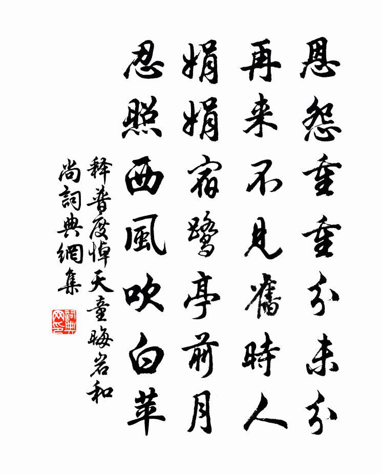 詩詞名句歷史字典書法欣賞書法字典國語詞典說文解字康熙字典古漢語字典標 題 作 者 詩 句 悼天童晦岩和尚作者:釋普度 朝代:宋代悼天童晦岩和尚原文恩怨重重分未分,再來不見舊時人。娟娟宿鷺亭前月,忍照西風吹白苹。詩詞問答問:悼天童晦岩和尚的作者是誰?答:釋普度問:悼天童晦岩和尚寫於哪個朝代?答:宋代釋普度悼天童晦岩和尚書法欣賞悼天童晦岩和尚書法作品詩詞推薦五靈妙仙 贈扶風縣淡公馬鈺〔元代〕悟來降,我相街前乞八。**地、似痴如黠。萬緣絕。淨清中恣飲,刀圭爛醉,靈台皎潔,惺灑自然光滑。本無缺舟過水口作徐璣〔宋代〕舟行遙指福城關,天宇開時地勢寬。二百里溪平似掌,一帆風色到懷安。村居二首陳傅良〔宋代〕野衣農圃雜,華發弟兄同。佚老便居僻,貪閒喜命窮。習成杯酌少,脫落語言工。危坐看流景,新萌又落紅。和李時發春日見寄孔武仲〔宋代〕聞道重湖路未通,悠然身在碧湘中。崎嶇水國猶千里,牢落春花已半空。江浪濺寒侵小睡,岳雲篩雨音疏篷。君詩禽言陸游〔宋代〕拔筍拔筍,入箐不辭風雨窘。養成會見高拂雲,取供口腹初不忍。獨持兩把慰倚門,慈顏一笑如春溫。清心鏡 勉門人馬鈺〔元代〕休虛誕。休虛誕。不可倚而不倚,道中相玩。全性命、不比尋常,下的端了乾。出家兒,呈手段。把從前愛底,頓三教圖贊釋梵琮〔宋代〕六耳不同謀,相看已漏泄。都來只三人,證龜卻成鱉。者也之乎,無為寂滅。養家一般,道路千別。別不別,掉棒山行見月四言蘇軾〔宋代〕吟喔傲兀,仰晤岩月。遇巘迎崖,銀刓玉齧。源魚噞喁,岸雁臲卼。臥玩我語,聱牙岌嶪。平步樓陳藻〔宋代〕主翁面貌不堪夸,卻是書中意味華。因地成樓平似陟,開林見樹直仍斜。竟日清幽來佛寺,有時問答覺人家。厭隨念奴嬌(約友中秋遊長橋,魏倅·邦式不預,作念奴嬌)朱敦儒〔宋代〕素秋天氣,是登山臨水,昔人悲處。我遇清時無個事,好約鶯遷鴻翥。旋整蘭舟,多攜芳醞,笑里輕帆舉。松江纜次顏博士游紫羅洞五首李若水〔宋代〕休著青衫謁五侯,徑覓拄杖山中游。故山別來鬢毛禿,一飽累人成久留。碧嶂巉巉雲影底,儻得破茅甘老此。孤猿題陳仲良宅觀古物及徐熙來禽卷方回〔宋代〕車書一統混乾坤,福地錢塘戶口蕃。治世故□□巨室,吉人宜爾保名門。金玉印章文物古,丹青圖畫典刑存。來禽紹興祀太社太稷十七首佚名〔宋代〕葉氣嘉生,年彀順成。萬億及很,如坻如京。奉時犉牲,告於神明。歌此良耜,於昭德聲。奉和九弟渤見寄絕句李涉〔唐代〕忽啟新緘吟近詩,詩中韻出碧雲詞。且喜陟岡愁已散,登舟只恨渡江遲。山苕行戴表元〔宋代〕苕花如雲色如雪,萬壠千溪看不絕。風吹日炙自鮮明,棄在空雲誰愛悅。遭逢偶入山入手,縛作蓬菘掃塵帚。髯疏虞美人(清婉亭賞酴醿)趙長卿〔宋代〕江梅雖是孤芳早。爭似酴醿好。凡紅飛盡草妻迷。婀娜枝頭才見、細腰肢。玉容消得仙源惜。滿架香堆白。檀心應立春日呈通守資中通直晁補之〔宋代〕搖軒柳態未應還,正在憑高望遠間。一夜春風吹北渚,清晨佳氣滿南山。動頭樂事從今數,信手詩章莫放閒。但惜自和趙汝湜〔宋代〕洞府日月閒,風景自清楚。九關啟天鑰,容我朝帝所。清緣宿仙館,夢碎石泉雨。明朝得羊珠,試向張華語。為張功甫賦寒綠釋寶曇〔宋代〕君家故多書,餘地看寒綠。食簞到尚懸,牆小摘杞菊。霜畦新雨餘,柔條已三沫。貴不數熊蹯,芳鮮落我腹。口香寄蔣主簿王炎〔宋代〕過我匆匆去,難淹長者車。歲華今又晚,官況近何如。不是無才具,渠憂少薦書。因君問公幹,久不寄雙魚。名句推薦太平之世多長壽人。王充《論衡·卷一·氣壽篇》 東風夜放花千樹。更吹落、星如雨。辛棄疾《青玉案·元夕》 樹曲木者,惡得直景劉向《說苑·君道》 問君何能爾?心遠地自偏。陶淵明《飲酒·其五》 已知泉路近,欲別故鄉難。夏完淳《別雲間》 寒食時看郭外春,野人無處不傷神。雲表《寒食詩》 應傾謝女珠璣篋,盡寫檀郎錦繡篇。羅隱《七夕》 少壯從戎馬上飛,雪山童子未緇衣劉商《贈頭陀師》 精誠由中,故其文語感動人深。王充《論衡·卷十三·超奇篇》 荷笠帶斜陽,青山獨歸遠。劉長卿《送靈澈上人》