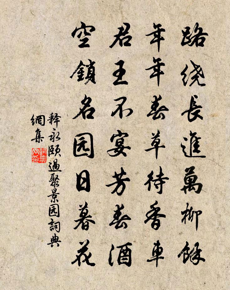 詩詞名句歷史字典書法欣賞書法字典國語詞典說文解字康熙字典古漢語字典標 題 作 者 詩 句 過聚景園作者:釋永頤 朝代:宋代過聚景園原文路繞長進萬柳余,年年春草待香車。君王不宴芳春酒,空鎖名園日暮花。詩詞問答問:過聚景園的作者是誰?答:釋永頤問:過聚景園寫於哪個朝代?答:宋代釋永頤過聚景園書法欣賞過聚景園書法作品詩詞推薦羅敷水羅隱〔唐代〕雉聲角角野田春,試駐徵車問水濱。數樹枯桑雖不語,思量應合識秦人。好事近(甲申春益昌作)李曾伯〔宋代〕春在粉牆西,牆裡不知春色。惟有桃花一樹,似故園曾識。晚來攜客上南樓,山外又山隔。準擬清明何處,問東風讀信州趙昌甫詩周南〔宋代〕斯文世不收,未絕僅如縷。喔君古律詩,思君用心苦。廩錢能幾何,茅舍月有取。懷哉斯人歟,被褐止衡堵。題石洞書院王信〔宋代〕不到茲山又十秋,欲題名字記重遊。轉頭前日夢相似,拭目諸公墨尚留。俗里塵埃隨酒卻,淡中生活為詩愁。晚來沁園春(己未初度)李曾伯〔宋代〕六十衰翁,更加二齡,此何等時。不退尋岩壑,相安耕釣,重來嶺嶠,猶事驅馳。絕類文淵,當年矍鑠,上馬據鞍複次韻寄程帥二首陳造〔宋代〕人家禊祓競攀追,刺史春遊正此時。羯鼓聲中花作錦,壺籌多處酒為池。絕須絲竹娛安石,剩有篇章付雪兒。聞道旬沐二首宋祁〔宋代〕待詔官非急,還家體不勤。里無休汝騎,窗有上羲人。密樹稍迎夏,晚花猶及春。幽懷誰與晤,杯酒強相親。途中寄純甫強至〔宋代〕諸友分攜地,重陽欲近天。共誰搴菊蕊,獨立憶梅仙。對飲乖今日,傷離似去年。佳山足吟賞,應自有新篇。玉華山宋球〔宋代〕玉華山來自何處,巉巉拔立陵紫煙。上有乾雲切霄之蒼松,下有迸崖漱壑之清泉。長河西來齧山足,{左火右粦}山丹劉克莊〔宋代〕偶然避雨過民舍,一本山丹恰盛開。種久樹身樛似蓋,澆頻花面大如杯。怪疑朱草非時出,驚問紅雲甚處來。何惜詠漁父徐僑〔宋代〕占得江湖汗漫天,了無鄉縣掛民編。賣魚買酒醉日日,長是太平無事年。過白水梅堯臣〔宋代〕下馬獨懷古,翛然臨渡風。真人去來久,流水自無窮。雨闊沙痕漲,灣平野色通。曾興漢家業,今與百川同。送簡殿丞赴闕宋祁〔宋代〕共治清淮北面州,何言分袂帳夷猶。君還南闕雙龍下,我駐東方千騎頭。未落林花延別醑,無窮堤草伴行舟。懷人採石阻雨寄宣城故人二首張耒〔宋代〕閒雲濃淡作朝陰,柳色江頭春已深。誰為宣城故人說,依依只似去年心。題茅山仙台藥院劉言史〔唐代〕擾擾浮生外,華陽一洞春。道書金字小,仙圃玉苗新。芝草迎飛燕,桃花笑俗人。樓台爭聳漢,雞犬亦嫌秦。願得正月三日驟暖多稼亭前梅花盛開四首楊萬里〔宋代〕春被梅花抵死催,今年春向去年回。春回十日梅初覺,一夜商量一併開。題九天使者廟(又見讖記卷)孫鹹〔唐代〕獨入玄宮禮至真,焚香不為賤貧身。秦淮兩岸沙埋骨,湓浦千家血染塵。廬阜煙霞誰是主,虎溪風月屬何人。九江句姜夔〔宋代〕小山不能雲,大山半為天。阻雪方岳〔宋代〕風煙兩人借,此嶺復南崗。陰石無霜滑,寒梅未雪香。逢山貪看畫,得句不成章。月下門須掩,多應說短長。江陵府初試澄心如水盧肇〔唐代〕丹心何所喻,唯水並清虛。莫測千尋底,難知一勺初。內明非有物,上善本無魚。澹泊隨高下,波瀾逐卷舒。養蒙名句推薦惟有南來無數雁,和明月、宿蘆花。鄧剡《唐多令·雨過水明霞》 生怕見花開花落,朝來塞雁先還。辛棄疾《漢宮春·立春日》 戎衣不脫隨霜雪,汗馬驂單長被鐵。李昂《從軍行》 夜寒驚被薄,淚與燈花落納蘭性德《菩薩蠻·蕭蕭幾葉風兼雨》 茶性儉,不宜廣,廣則其味黯澹。陸羽《茶經·五之煮》 烽火平安夜,歸夢到家山。崔與之《水調歌頭·題劍閣》 最傷情、送客鹹陽,佩結西風怨。吳文英《瑣窗寒·玉蘭》 秦地羅敷女,採桑綠水邊。李白《子夜吳歌·春歌》 逞奸謀事,事難必其穩重,可惜他徒自壞心。王永彬《圍爐夜話·第五一則》 兩人對酌山花開,一杯一杯復一杯。李白《山中與幽人對酌》