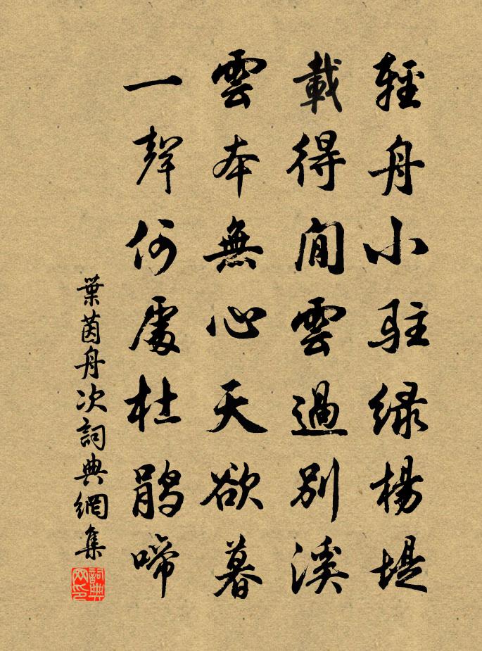 詩詞名句歷史字典書法欣賞書法字典國語詞典說文解字康熙字典古漢語字典標 題 作 者 詩 句 舟次作者:葉茵 朝代:宋代舟次原文輕舟小駐綠楊堤,載得閒雲過別溪。雲本無心天欲暮,一聲何處杜鵑啼。詩詞問答問:舟次的作者是誰?答:葉茵問:舟次寫於哪個朝代?答:宋代葉茵舟次書法欣賞舟次書法作品詩詞推薦句張士遜〔宋代〕李成謝世范寬死,唯有長安許道寧。送舅氏王亨道知湖州秦熺〔宋代〕暫別甘泉豹尾中,隼旟仍駐水晶宮,文昌地禁論思久,燕寢香凝簿領空。可但龔黃宜共理,使應顏謝與同風。飽聞頌古釋德淳〔宋代〕昨日定今日不定,正令已行皆逐正。卓下靈山皂纛旗,百萬麾軍皆乞命。慈恩寺起上人院武元衡〔唐代〕禪堂支許同,清論道源窮。起滅秋雲盡,虛無夕靄空。池澄山倒影,林動葉翻風。他日焚香待,還來禮惠聰。靈芝寺別祖席諸友柴望〔宋代〕落日寒城暮雨余,滿斟離酒意何如。見妻還指張儀舌,痛國誰憐賈誼書。羸馬病僮旋僱倩,寺禽山獠亦欷噓。長安蹋蹴篇楊維楨〔元代〕江南女兒花娟娟,五花繡出葵花圓,蹋花上下雙文鴛。雙文鴛,玉連瑣;髻斜斜,馬初墮。生查子仇遠〔宋代〕飛塵入建章,樂事難重見。白髮故宮娃,閒說沈香宴。霓裳秋夢寒,□靸黏冰片。螢火起庭莎,猶憶輕羅扇。金陵羅公升〔宋代〕江左諸人未易輕,馳驅猶欲致中興。後人只說清談誤,並與清談已不能。昭君祠袁燮〔宋代〕昭君天賦傾城色,何事君王未曾識。徘徊顧影無計留,一朝遠嫁匈奴國。匈奴國日暗飛塵,昭君君絕艷驚國人。單題李伯時飛騎習射圖章良能〔宋代〕禁營貔虎天廐龍,技癢不奈芻粟豐。聞道寶津嘗護駕,前朝踴躍矜戲雄。紅綃低擊柳枝碧,滿滿彎弓斫鬃射。偶然夜分和鄭小山韻二首李曾伯〔宋代〕塞上蕭蕭雨更風,秋來興味與誰同。短檠聊和燈前句,長槊休夸馬上功。挽二石弓陪一校,操方寸管較諸公。到頭賞桂衛宗武〔宋代〕駕言適東野,聊以慰離索。攝齊甫升堂,開尊隨命酌。芳鮮羅果羞,珍重如宿約。主客成五人,爽氣涵秋岳。風生呈李續韓弇〔唐代〕我有敵國讎,無人可為雪。每至秦隴頭,遊魂自嗚咽。偈頌一百零四首釋紹曇〔宋代〕仙苑蟠桃不老春,三千年實薦芳新。錫開王母瑤池宴,滿簇金盤壽聖人。雖雲絕品,未足為珍。幸有菩提真妙果,點絳唇(集句)楊 * 〔宋代〕流水冷冷,閉門時候簾纖雨。菱歌齊舉。風暖飄香絮。一葉扁舟,過盡鶯啼處。空凝佇。到頭辛苦。暮色聞津鼓。張良徐鈞〔宋代〕博浪椎揮四海驚,虎狼雖暴已無秦。興劉滅項猶餘事,豈是蕭韓行輩人。大維那求頌釋可湘〔宋代〕仰山推枕玩嬌兒,等是機前展大悲。何必換頭呈素麵,重堆脂粉畫蛾眉。浣溪沙(兒輩欲九日詞而尚遠,用“滿城風雨近得陽”填成浣溪沙)李處全〔宋代〕宋玉應當久斷腸。滿城風雨近重陽。年年戲馬憶吾鄉。催促東籬金蕊放,佳人更繡紫萸囊。白衣才到共飛觴。謁參政張獻子王義山〔宋代〕曾侍龍樓曉色催,真仙那肯下蓬萊。離方共睹重光日,震位欣聞長子雷。奉使只應天上去,運籌暫作幄中來。老夫偈頌七十六首釋師範〔宋代〕初冬時節又相催,浩浩諸方爐鞴開。獨有徑山文武火,不知煨殺幾人來。名句推薦桃花嫣然出籬笑,似開未開最有情。汪藻《春日·一春略無十日晴》 春色惱人眠不得,月移花影上欄乾。王安石《春夜》 正蹇驢吟影,茶煙灶冷,酒亭門閉。吳文英《無悶·催雪》 我醉欲眠卿且去,明朝有意抱琴來。李白《山中與幽人對酌》 薊城通漠北,萬里別吾鄉。李頎《古塞下曲》 燈前目力雖非昔,猶課蠅頭二萬言。陸游《讀書》 酒酣應對燕山雪,正冰河月凍,曉隴雲飛。周密《高陽台·送陳君衡被召》 兒女此情同。往事朦朧。湘娥竹上淚痕濃。辛棄疾《浪淘沙·賦虞美人草》 柳下桃蹊,亂分春色到人家。秦觀《望海潮·洛陽懷古》 五月雖熱麥風清,檐頭索索繰車鳴。王建《田家行》