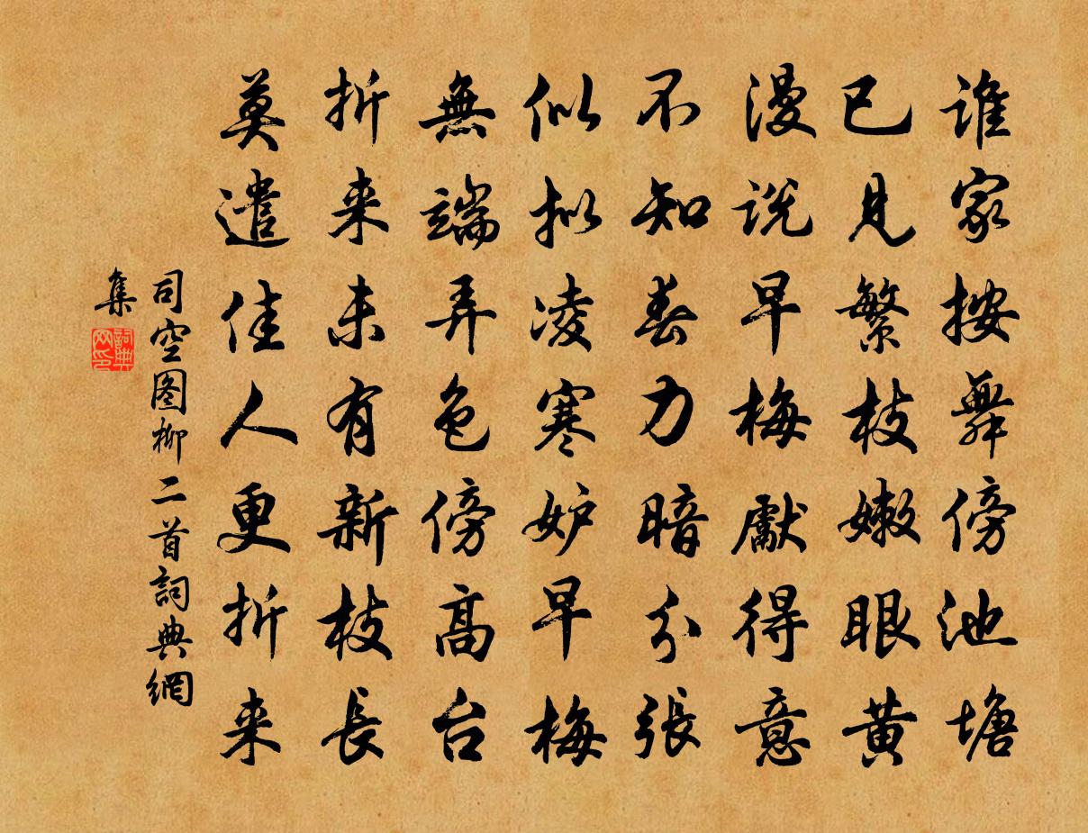 誰家按舞傍池塘,已見繁枝嫩眼黃。漫說早梅先得意,不知春力暗分張。