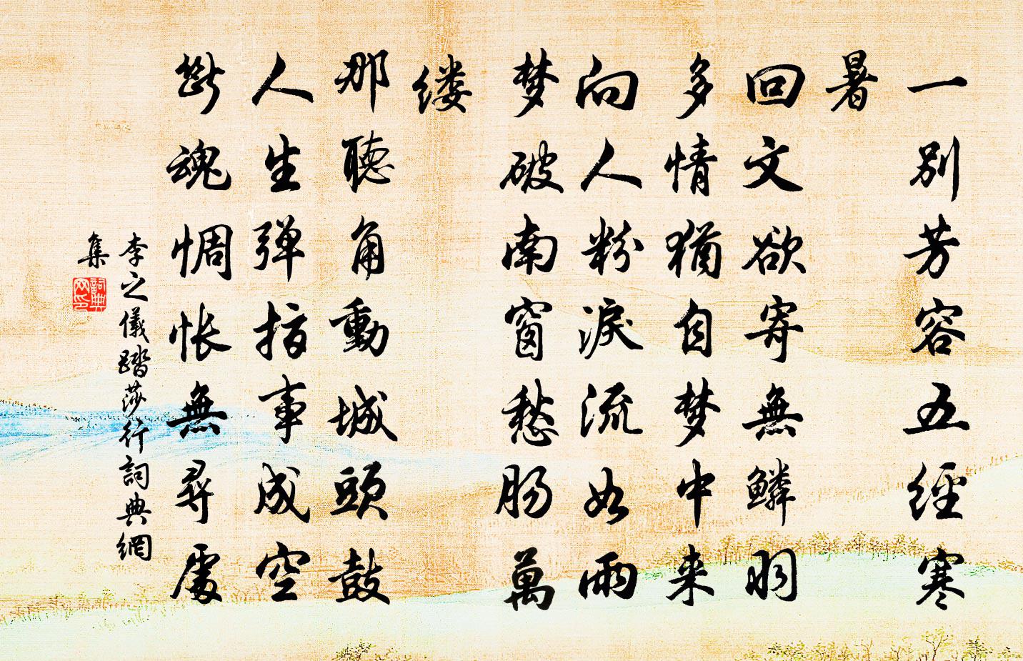 一別芳容,五經寒暑。回文欲寄無鱗羽。