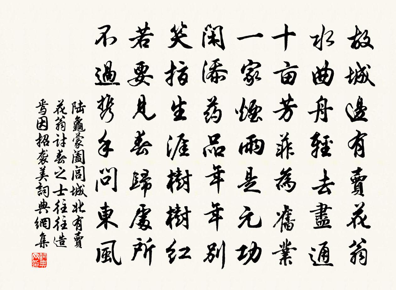 故城邊有賣花翁,水曲舟輕去盡通。十畝芳菲為舊業,一家煙雨是元功。
