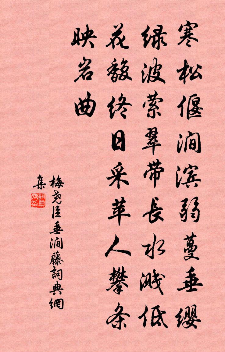 寒松偃澗濱,弱蔓垂纓綠。波縈翠帶長,水濺低花馥。