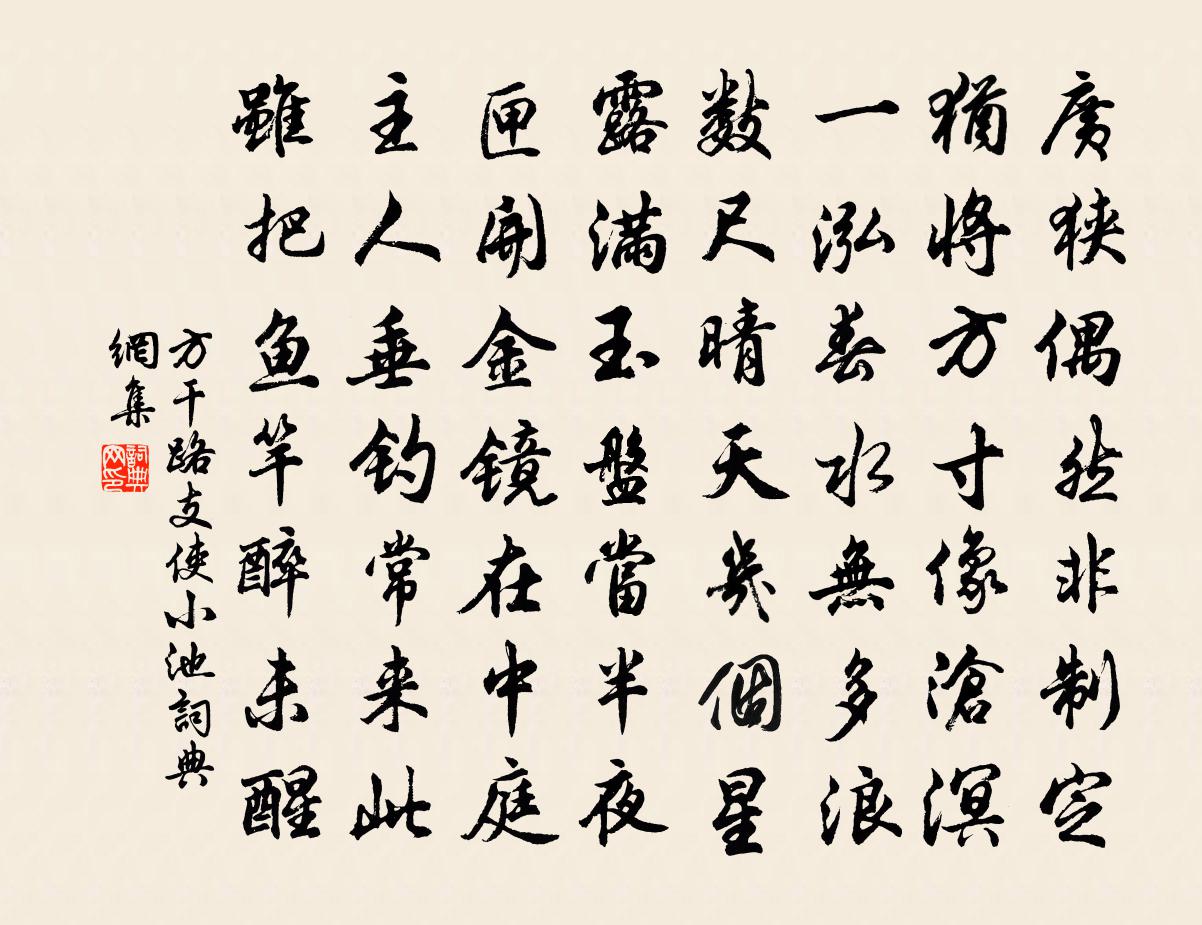 詩詞名句歷史字典書法欣賞書法字典國語詞典說文解字康熙字典古漢語字典標 題 作 者 詩 句 路支使小池作者:方乾 朝代:唐代路支使小池原文廣狹偶然非制定,猶將方寸像滄溟。一泓春水無多浪,數尺晴天幾個星。露滿玉盤當半夜,匣開金鏡在中庭。主人垂釣常來此,雖把魚竿醉未醒。詩詞問答問:路支使小池的作者是誰?答:方乾問:路支使小池寫於哪個朝代?答:唐代方幹路支使小池書法欣賞路支使小池書法作品注釋全唐詩:卷651-14詩詞推薦再和制帥王之望〔宋代〕丘園養浩久懷安,忽侍天威咫尺間。草制方觀周誥命,籌邊聊重蜀江山。搏風已激三千水,掣電終歸十二閒。天遣答行簡上人書釋智圓〔宋代〕偶依溪上居,三見改時候。來書問蹤跡,行坐置懷袖。學道不加前,多慵還似舊。苦吟徹宵夜,閒眠消白晝。古屋初八日過總持以雨不得觀龍井休日再往經孺子趙蕃〔宋代〕滿城車馬走塵埃,湖上幽蹊長積苔。喟嘆高風尚千載,殷勤兩日為重來。吾生詎老五斗米,此地終期三徑開。大廈石中二首李壁〔宋代〕雲影沈沈玉一方,倚欄人意似濠梁。獨憐雪裡山茶樹,也向春風伴海棠。浣溪沙(留別)劉過〔宋代〕著意尋芳已自遲。可堪容易送春歸。酒闌無奈思依依。楊柳小橋人遠別,梨花深巷月斜輝,此情惟我與君知。聞崔十二侍御灌口夜宿報恩寺岑參〔唐代〕聞君尋野寺,便宿支公房。溪月冷深殿,江雲擁迴廊。然燈松林靜,煮茗柴門香。勝事不可接,相思幽興長。燈下讀玄真子漁歌因懷山陰故隱追擬陸游〔宋代〕湘湖煙雨長蓴絲,菰米新炊滑上匙。雲散後,月斜時,潮落舟橫醉不知。梅花喜神譜欲謝一十六枝宋伯仁〔宋代〕一夢在人間,東風吹不覺。莊周鴻冥冥,胡戀花枝巧。和李秀才郊墅早春吟興十韻韋莊〔唐代〕暖律變寒光,東君景漸長。我悲游海嶠,君說住柴桑。雪色隨高岳,冰聲陷古塘。草根微吐翠,梅朵半含霜。酒市夜窗書事史彌寧〔宋代〕一燼銀燈兩架書,十年伴我夜窗虛。不因見性明心俊,定自人呼作蠹魚。蝶戀花李之儀〔宋代〕玉骨冰肌天所賦。似與神仙,來作煙霞侶。枕畔拈來親手付。書窗終日常相顧。幾度離披留不住。依舊清香,只欠醉桃源(大石·第二)周邦彥〔宋代〕菖蒲葉老水平沙。臨流蘇小家。畫闌曲徑宛秋蛇。金英垂露華。燒蜜炬,引蓮娃。酒香薰臉霞。再來重約日西斜。逍遙詠宋太宗〔宋代〕逍遙理路達三清,非是尋常取次名,此語不宗凡見識,籠羅大象顯昭明。傍通照料周遮遠,異境凡從智慧生。方丈我儂詞管道升〔元代〕爾儂我儂,忒煞情多,情多處,熱似火。把一塊泥,捻一個爾,塑一個我,將咱兩個,一齊打破,用水調和。再捻和子瞻鳳翔八觀八首其二詛楚文蘇轍〔宋代〕詛楚楚如桀,詛秦秦則紂。桀罪使信然,紂語安足受。牲肥酒醪潔,誇誕鬼不佑。鬼非東諸侯,豈信辯士口。碑埋和許守喜雨韻吳芾〔宋代〕千里焦枯頓郁蒼,邦人寧復慮年荒。大田一雨渾沾足,鄰壤群偷更伏藏。治郡羨君端有術,救民愧我獨無方。夜來和李僕射秋日病中作張籍〔唐代〕由來病根淺,易見藥功成。曉日杵臼靜,涼風衣服輕。猶疑少氣力,漸覺有心情。獨倚紅藤杖,時時階上行。贈陳宗之趙師秀〔宋代〕四圍皆古今,永日坐中心。門對官河水,檐依綠樹陰。每留名士飲,屢索老夫吟。最感書燒盡,時容借檢尋。臨川貢士徐子比先世有十萬莊今唯一山巋然田周必大〔宋代〕不須十萬憶膏粱,有羨崔莊獨遣荒。獨秀佳名今暗合,要三二別四壺方。為旃檀像賦家鉉翁〔宋代〕稽首古旃檀,曾共釋迦語。旃檀釋迦面目本來同,真身幻身何事相爾汝。如人對鏡照形像,拱兮揖兮若賓主。須臾名句推薦君到姑蘇見,人家盡枕河。杜荀鶴《送人游吳》 天下有道則見,無道則隱。孔子弟子《論語·泰伯篇》 正己而不求於人則無怨。上不怨天,下不尤人。子思《中庸·第十四章》 輕肌弱骨散幽葩,更將金蕊泛流霞。蘇軾《趙昌寒菊》 人怕出名豬怕壯曹雪芹《紅樓夢·第八十三回》 太乙近天都,連山接海隅王維《終南山》 恭者不侮人,儉者不奪人。孟子《孟子·離婁章句上·第十六節》 數畝荒園留我住,半瓶濁酒待君溫。蘇軾《正月二十日往岐亭郡人潘古郭三人送余於女王城東禪莊院》 風吹芳蘭折,日沒鳥雀喧。李白《送裴十八圖南歸嵩山二首》 兩情若是久長時,又豈在朝朝暮暮。秦觀《鵲橋仙·纖雲弄巧》