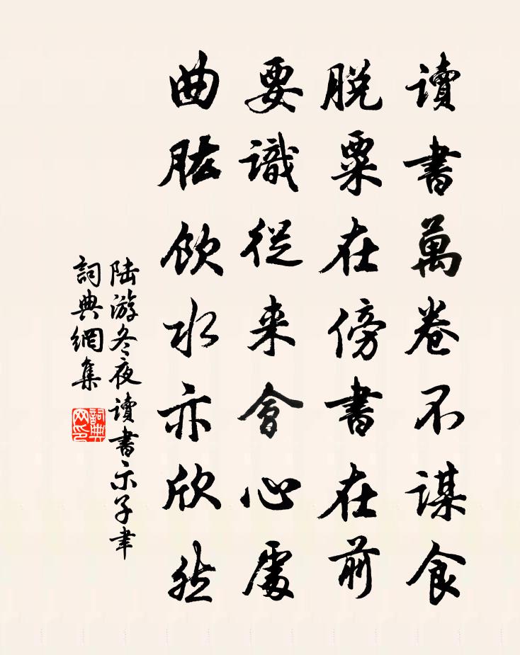 讀書萬卷不謀食,脫粟在傍書在前。要識從來會心處,曲肱飲水亦欣然。