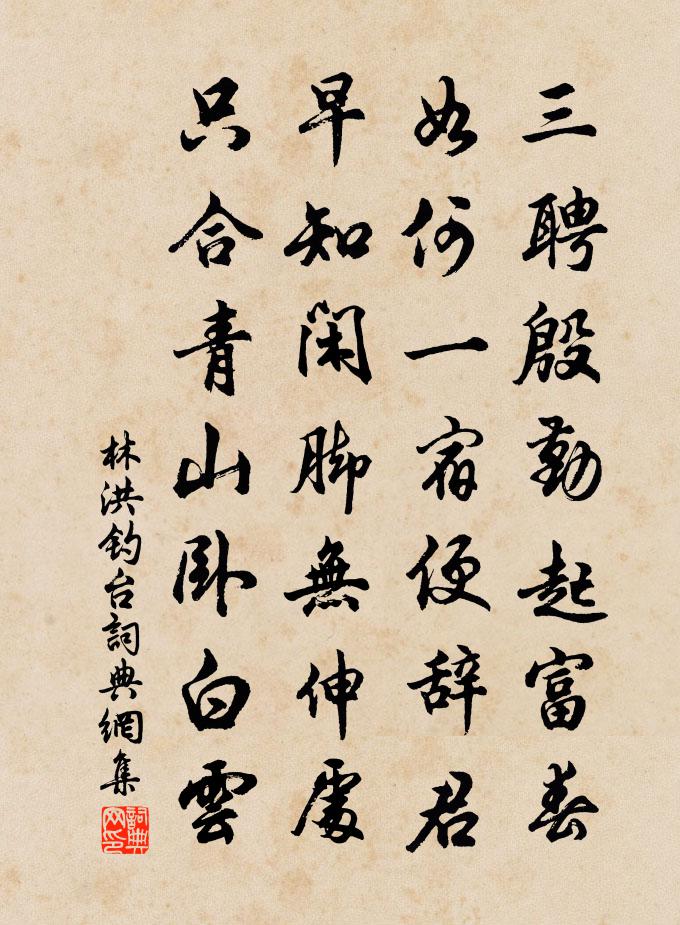 詩詞名句歷史字典書法欣賞書法字典國語詞典說文解字康熙字典古漢語字典標 題 作 者 詩 句 釣台作者:林洪 朝代:宋代釣台原文三聘殷勤起富春,如何一宿便辭君。早知閒腳無伸處,只合青山臥白雲。詩詞問答問:釣台的作者是誰?答:林洪問:釣台寫於哪個朝代?答:宋代林洪釣台書法欣賞釣台書法作品詩詞推薦次韻深父送行趙蕃〔宋代〕吾行殊坎坷,此地極淹留。少欲破萬卷,老惟思一邱。謾言詩作崇,長愧食為謀。穮蔉君其務,農良乃有秋。內家嬌(壽王城山)劉辰翁〔宋代〕結客少年場。攜高李、聞笛賦游梁。看漢水淮山,高樓共臥,融尊鄭驛,飛蓋相望。春風裡,種他紅與白,笑我懶和晁同年九日見寄蘇軾〔宋代〕仰看鸞鵠刺天飛,富貴功名老不思。病馬已無千里志,騷人長負一秋悲。古來重九皆如此,別後西湖付與誰。遣子小苑春望宮池柳色楊凌〔唐代〕上苑閒遊早,東風柳色輕。儲胥遙掩映,池水隔微明。春至條偏弱,寒餘葉未成。和煙變濃淡,轉日異陰晴。不獨上留提刑壽陳元晉〔宋代〕中秋清絕冠秋天,間氣生賢得月先。一念來從金粟洞,三生曾伴赤松仙。繡衣踏遍江湖上,線履催歸雨露邊。且別新月危拱辰〔宋代〕未審初三月,嫦娥怨阿誰。嬾開十分鏡,祇畫一邊眉。東門送郎吏行寄承旨宋侍郎王禹偁〔宋代〕西門送僕射,鞍馬照路光。南門送貳卿,冠蓋遙相望。東門送郎吏,艤舟隋堤傍。郎吏誠隔品,同直白玉堂。丈人酬吳仲庶龍圖暮春感懷曾鞏〔宋代〕瑣闈延閣腹心臣,籍甚聲華動縉紳。藥石言行天下雨,袴襦恩達國中春。召南去後餘思在,綸氏歸來壯志新。莫為山井方乾〔唐代〕灩灩濕光凌竹樹,寥寥清氣襲衣襟。不知測穴通潮信,卻訝輕漣動鏡心。夜久即疑星影過,早來猶見石痕深。轆轤首尾吟邵雍〔宋代〕堯夫非是愛吟詩,詩是堯夫談笑時。國士待人能盡意,山翁道我會開眉。盞隨酒量徐徐飲,榻逐花陰旋旋移。此樂示王侑翁二首陳著〔宋代〕碩果生機在,從他剝五陰。南山四時面,殘屋百年心。家薄有書種,客多成笑林。要閒元自老,不在卜居深。蝶戀花陳允平〔宋代〕謝了梨花寒食後。翦翦輕寒,曉色侵書牖。寂寞幽齊惟酌酒。柔條恨結東風手。淺黛嬌黃春色透。薄霧輕煙,遠映頌塵塵三昧釋真慈〔宋代〕缽里飯,桶里水,別寶崑崙坐潭底。一塵塵上走須彌,明眼波斯笑彈指。笑彈指,珊瑚枝上清風起。題盧處士山居 / 處士盧岵山居溫庭筠〔唐代〕西溪問樵客,遙識楚人家。古樹老連石,急泉清露沙。千峰隨雨暗,一逕入雲斜。日暮飛鴉集,滿山蕎麥花。同澄之器博飯浮玉吳則禮〔宋代〕疇昔清都步武聯,軒軒鶴骨稱癯仙。君橫七弦可忘老,吾得一丘端盡年。白首終成裹飯去,青燈更作曲肱眠。步虛郢州贈別王八使君白居易〔唐代〕昔是詩狂客,今為酒病夫。強吟翻悵望,縱醉不歡娛。鬢髮三分白,交親一半無。郢城君莫厭,猶校近京都。村舍燕杜牧〔唐代〕漢宮一百四十五,多下珠簾閉瑣窗。何處營巢夏將半,茅檐煙里語雙雙。臨洺驛雨中作強至〔宋代〕朔野無花春意薄,斧聲惟見桑枝落。北人是日競條桑,手執懿筐共操作。客亭系馬吟寒廳,細雨纏愁牢似縛。多情讀張曲江集作劉禹錫〔唐代〕聖言貴忠恕,至道重觀身。法在何所恨,色相斯為仁。良時難久恃,陰謫豈無因。寂寞韶陽廟,魂歸不見人。隨牒至南康軍呈李宰四首曾豐〔宋代〕蹀躞騏騮去路寬,西清太冷北門寒。且將東觀編摩手,來作南康拊字官。名句推薦念佳人、音塵別後,對此應解相思。晁端禮《綠頭鴨·詠月》 一時輕信人言語.自有明人話不平。馮夢龍《警世通言·卷四》 不忍登高臨遠,望故鄉渺邈,歸思難收。柳永《八聲甘州·對瀟瀟暮雨灑江天》 君自故鄉來,應知故鄉事。王維《雜詩三首·其二》 帆影依依楓葉外,灘聲汩汩碓床間查慎行《雨過桐廬》 何處是歸程?長亭連短亭。李白《菩薩蠻·平林漠漠煙如織》 天涯靜處無征戰,兵氣銷為日月光。常建《塞下曲四首·其一》 明月不諳離恨苦。斜光到曉穿朱戶。晏殊《蝶戀花·檻菊愁煙蘭泣露》 上醫醫國,其次疾人左丘明《國語·晉語·醫和視平公疾》 凌余陣兮躐余行,左驂殪兮右刃傷。屈原《國殤》
