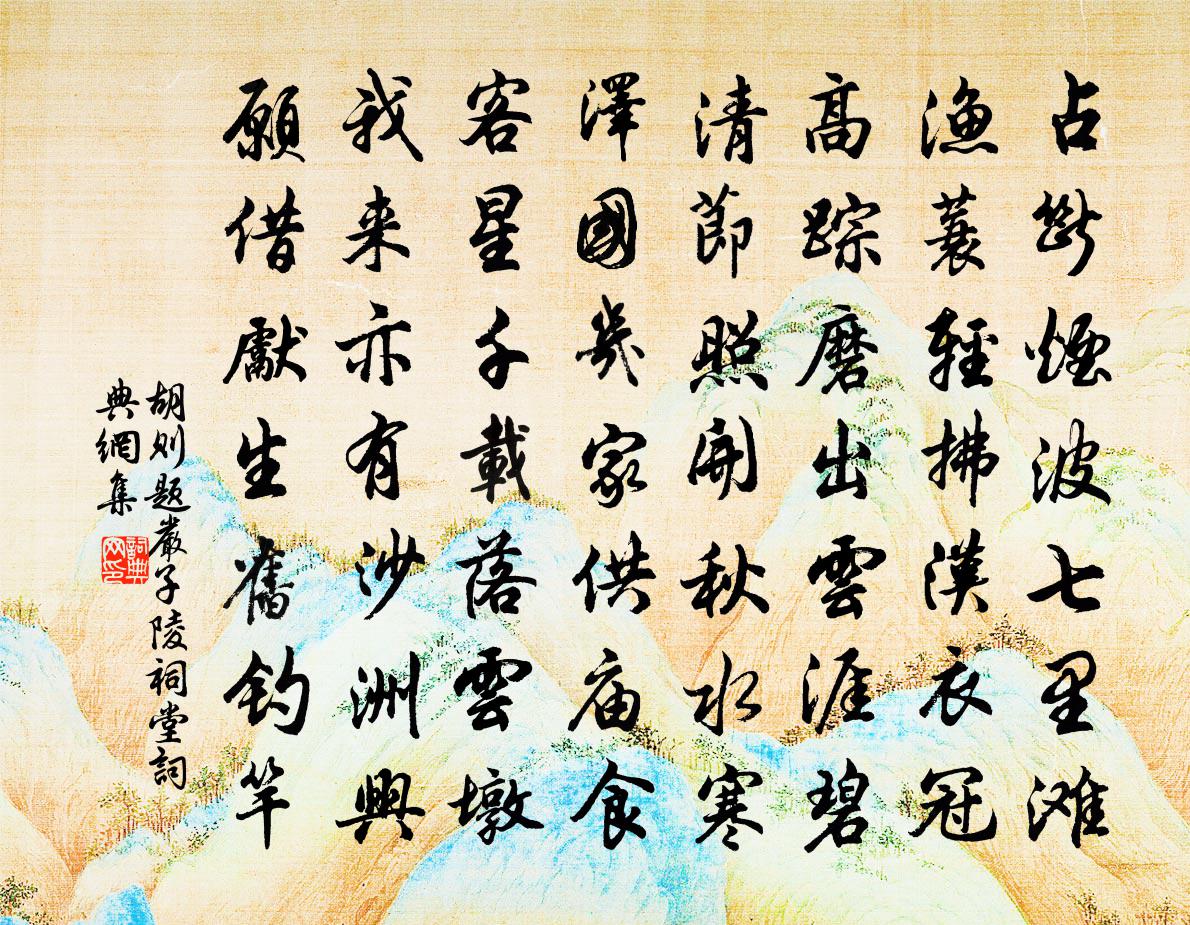 詩詞名句歷史字典書法欣賞書法字典國語詞典說文解字康熙字典古漢語字典標 題 作 者 詩 句 題嚴子陵祠堂作者:胡則 朝代:宋代題嚴子陵祠堂原文占斷煙波七里灘,漁蓑輕拂漢衣冠。高蹤磨出雲涯碧,清節照開秋水寒。澤國幾家供廟食,客星千載落雲墩。我來亦有沙洲興,願借先生舊釣竿。詩詞問答問:題嚴子陵祠堂的作者是誰?答:胡則問:題嚴子陵祠堂寫於哪個朝代?答:宋代胡則題嚴子陵祠堂書法欣賞題嚴子陵祠堂書法作品詩詞推薦頌古一百首釋智愚〔宋代〕腳跟不斷紅絲線,掉臂乾坤自在行。塞壑填溝無處著。婦來依舊兩眉橫。西湖劉黻〔宋代〕滄波混碧空,楊柳路皆通。列岫疑奔馬,新橋學跨虹。東風香跡滿,西日樂聲叢。總是游觀者,幽人趣不同。胡笳十八拍第十二拍劉商〔唐代〕破瓶落井空永沈,故鄉望斷無歸心。寧知遠使問姓名,漢語泠泠傳好音。夢魂幾度到鄉國,覺後翻成哀怨深。如今奉誠園聞笛(園,馬侍中故宅)竇牟〔唐代〕曾絕朱纓吐錦茵,欲披荒草訪遺塵。秋風忽灑西園淚,滿目山陽笛里人。題三女岡白蓮花趙崇森〔宋代〕舊址來從晉,史更幾廢興。一蓮開陸地,三女臥岡陵。題詠夸先輩,流傳得主僧。林深鍾梵寂,長夜一明燈。和張二十五游白龍溪甘水谷郊居雜詠七首范祖禹〔宋代〕君家瀟灑住園林,更入青山徑路深。唯有白云為得侶,祗應流水是知音。春日茶山病不飲酒因呈賓客杜牧〔唐代〕笙歌登畫船,十日清明前。山秀白雲膩,溪光紅粉鮮。欲開未開花,半陰半晴天。誰知病太守,猶得作茶仙。亦好園四詠磬湖喻良能〔宋代〕未用他山錯,寧須泗水浮。衝風時激浪,清韻亂鳴球。贈秋浦張明府杜荀鶴〔唐代〕君為秋浦三年宰,萬慮關心兩鬢知。人事旋生當路縣,吏才難展用兵時。農夫背上題軍號,賈客船頭插戰旗。他日巫山一段雲(王氏樓)仇遠〔宋代〕酒力欺愁薄,輕紅暈臉微。雙鴛誰袖出青閨。剗襪步東西。倦蝶棲香懶,雛鶯調語低。釵盟惟有燭花知。半醉欲歸偶憶陳維崧〔清代〕架上紅鸚鵡,簾邊玉辟邪。兜娘懶上卓金車。倭墮一窩濃綠未成鴉。嬈我春吹笛,邀人夜鬥茶。而今庭院隔天涯。白雲山房次韻馬道士虛中三首方回〔宋代〕閒愁不斷連天遠,濁醪快似并州剪。興亡得喪橫胸中,冰消雪釋春風轉。我本不學抱朴翁,何修致此丹砂容。服食菩薩蠻曹勛〔宋代〕花飛零亂隨風舞。花梢猶帶虛檐雨。簾幕映黃昏。江天日暮雲。有人樓上望。生怕褰虛幌。冷落對爐薰。一春常怨木蘭花慢張伯淳〔元代〕次唐格齊韻盡交遊滿眼,歲寒者,果誰歟。羨錦繡為心,冰霜作操,仁義*廬。門前掃清俗軌,自熙然、瓮牖與繩漁家傲歐陽修〔宋代〕乞巧樓頭雲幔卷。浮花催洗嚴妝面。花上蛛絲尋得遍。顰笑淺。雙眸望月牽紅線。奕奕天河光不斷。有人正在長生菩薩蠻(賦疑梅香)周紫芝〔宋代〕寶薰拂拂濃如霧。暗驚梅蕊風前度。依約似江村。餘香馬上聞。畫橋風雨暮。零落知無數。收拾小窗春。金爐檀炷華亭夜宴庾侍御宅(一作張繼詩)韓翃〔唐代〕世故他年別,心期此夜同。千峰孤燭外,片雨一更中。酒客逢山簡,詩人得謝公。自憐驅匹馬,拂曙向關東。初春和摺子明歲前兩詩張栻〔宋代〕古今同活法,妙處在阿堵。浮雲興和祟,白黑可坐數。窮冬掩關臥,豈為作詩苦。挑燈讀韋編,至味可深咀。又次韻宋茂叔送行五絕兼謝修叔趙蕃〔宋代〕送我歸舟水一篙,更攜佳語贐吾曹。暮雲真作江東去,不復沅湘誦楚騷。贈劉琨詩二十首 二十盧諶〔魏晉〕邈矣達度。唯道是杖。形有未泰。神無不暢。如川之流。如淵之量。上弘棟隆。下塞民望。名句推薦但得一片橘皮吃,莫便忘了洞庭湖。施耐庵《水滸傳·第二十四回》 馬蹄濃露,雞聲淡月,寂歷荒村路。張榘《青玉案·被檄出郊題陳氏山居》 夫惡有同方取不取同而已者乎?墨子《墨子·01章 親士》 秋風生渭水,落葉滿長安。賈島《憶江上吳處士》 千載休談南渡錯,當時自怕中原復。文徵明《滿江紅·拂拭殘碑》 念蘭堂紅燭,心長焰短,向人垂淚。晏殊《撼庭秋·別來音信千里》 駸駸嬌眼開仍,悄無人至還凝佇。文徵明《青玉案·庭下石榴花亂吐》 白髮戴花君莫笑,六么催拍盞頻傳。歐陽修《浣溪沙·堤上遊人逐畫船》 家在夢中何日到,春來江上幾人還?盧綸《長安春望》 落葉滿空山,何處尋行跡。韋應物《寄全椒山中道士》