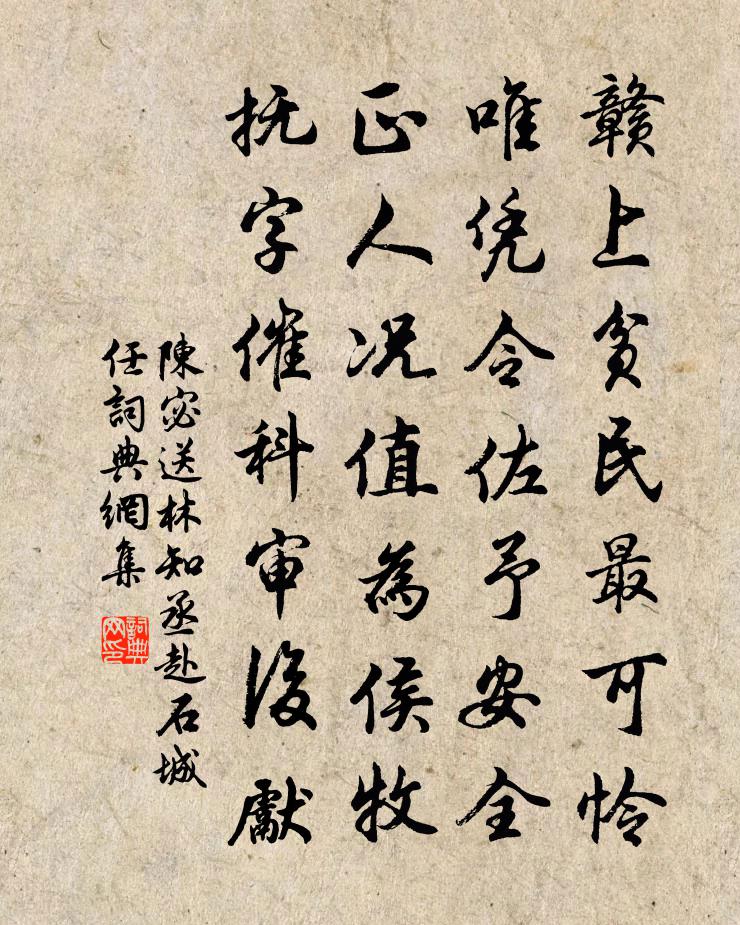 詩詞名句歷史字典書法欣賞書法字典國語詞典說文解字康熙字典古漢語字典標 題 作 者 詩 句 送林知丞赴石城任作者:陳宓 朝代:宋代送林知丞赴石城任原文贛上貧民最可憐,唯憑令佐予安全。正人況值為侯牧,撫字催科審後先。詩詞問答問:送林知丞赴石城任的作者是誰?答:陳宓問:送林知丞赴石城任寫於哪個朝代?答:宋代陳宓送林知丞赴石城任書法欣賞送林知丞赴石城任書法作品詩詞推薦泊李家渡董嗣杲〔宋代〕雁字書空極勁遒,江流東去不流愁。夢歸破屋南山下,身落寒沙古渡頭。雪意已堅狂問酒,風威未厲懶添裘。土人詠梅五十首呈史尚書釋紹嵩〔宋代〕小寺鴉鳴日行時,無人同趣獨支頤。殷勤為注銅瓶水,只篸橫斜一兩枝。二月三日點燈會客蘇軾〔宋代〕江上東風浪接天,苦寒無賴破春妍。試開雲夢羔兒酒,快瀉錢塘藥玉船。蠶市光陰非故國,馬行燈火記當年。冷煙賀子忱抱膝庵二首韓元吉〔宋代〕紫橐光華穩致身,會看功業上麒麟。丈人久悞人間世,莫忘他年蕙帳春。呈呂使君二首方回〔宋代〕紛紛{衣中加八}{衣中加八}笑儒酸,獨愛虀鹽遠綺紈。國手文章無敵手,將壇家世上詩壇。海艘蕩寇鯨波靜,點絳唇佚名〔宋代〕一朵千金,帝城穀雨初晴後。粉拖香透。雅稱群芳首。把酒題詩,遐想歡如舊。花知否。故人清瘦。長憶同攜手。唐鐃歌鼓吹曲十二篇。劉武周敗裴寂鹹有晉…靖本邦第九柳宗元〔唐代〕本邦伊晉,惟時不靖。根柢之搖,枝葉攸病。守臣不任,勩於神聖。惟鉞之興,翦焉則定。洪惟我理,式和以敬。再用粹中韻各賦牡丹梅花二首李彌遜〔宋代〕曾倚沉香作好妝,竹籬茅屋肯深藏。天寒翠袖留空谷,歲晚長眉閉上陽。投轄尚能來好事,著鞭應恐並餘芳。廣平淳佑己酉月正人日春雨堂宴三學同舍即事鄭霖〔宋代〕十年隨牒訪三高,不覺星星上鬢毛。尚憶齏鹽形夜夢,聊因椒柏薦春醪。文盟再會知何日,臭味相投屬我曹。總是寒食清明十首劉克莊〔宋代〕唐朝知制誥,多付與詩人。豈有飛花句,虛為起草臣。冬至伊邇滯留桂陽有感曹彥約〔宋代〕如此生涯任轉蓬,幾年漂泊羨歸鴻。淒涼落日荒山外,黯澹愁雲暮靄中。業菊乍殘秋色遠,嶺梅將放雪光融。枯腸暗香(再和)吳潛〔宋代〕雪來比色。對澹然一笑,休喧笙笛。莫怪廣平,鐵石心腸為伊折。偏是三花兩蕊,消萬古、才人騷筆。尚記得,醉題百葉桃花(知制誥時作)韓愈〔唐代〕百葉雙桃晚更紅,窺窗映竹見玲瓏。應知侍史歸天上,故伴仙郎宿禁中。西江月(壽李知丞)郭應祥〔宋代〕明日恰當人日,今年遠勝常年。瓣香卮酒壽藍田。喜色津然滿面。及戍人方競進,懸車公獨高騫。身閒便是地行仙搗練子王哲〔元代〕搗練子,十怎生。閒來閒去好修行。*哩,哩*。若逢迎,得圓成。從頭一一說前程。*哩,哩*。故市王洋〔宋代〕樵牧無人記故侯,崎崎林壑水經邱。道傍若問五承福,應嘆人間萬事休。和同年張季良少卿饋家釀韻三首袁說友〔宋代〕拭目高吟陋戴盆,續貂何敢曳詩門。百壺盪槳惟公爾,此外應無說尹村。訪子威都事不遇黃清老〔元代〕清曉抱綠綺,來就夫君彈。夫君久已出,野水流花間。石澗度微雨,秋生湖上山。松陰坐永日,心與雲俱閒。人事哭劉仲邍司馬光〔宋代〕昔醉金明渚,今來慧辯祠。當年笑相親,此日哭殊悲。天迥種原淨,風高草木衰。江梅靈氣在,泉下復相知。清溪解纜用秀才甫韻寧杜藏用黃彥平〔宋代〕長年三光占嶰筒,笑語天回西北風。高城遂隔不足道,只憶齊山幽桂叢。名句推薦風無纖埃,雨無微津。左思《三都賦》 一枝紅艷露凝香,雲雨巫山枉斷腸。李白《清平調·其二》 燕雁無心,太湖西畔隨雲去。姜夔《點絳唇·丁未冬過吳松作》 梅子金黃杏子肥,麥花雪白菜花稀。范成大《四時田園雜興·其二》 照花前後鏡,花面交相映。溫庭筠《菩薩蠻·小山重疊金明滅》 吾生也有涯,而知也無涯。莊子《莊子·內篇·養生主原文》 朱弦已為佳人絕,青眼聊因美酒橫。黃庭堅《登快閣》 鄂王墳上草離離,秋日荒涼石獸危。趙孟頫《岳鄂王墓》 朝騁騖兮江皋,夕弭節兮北渚;屈原《九歌》 燕歌未斷塞鴻飛,牧馬群嘶邊草綠。李益《塞下曲·其一》