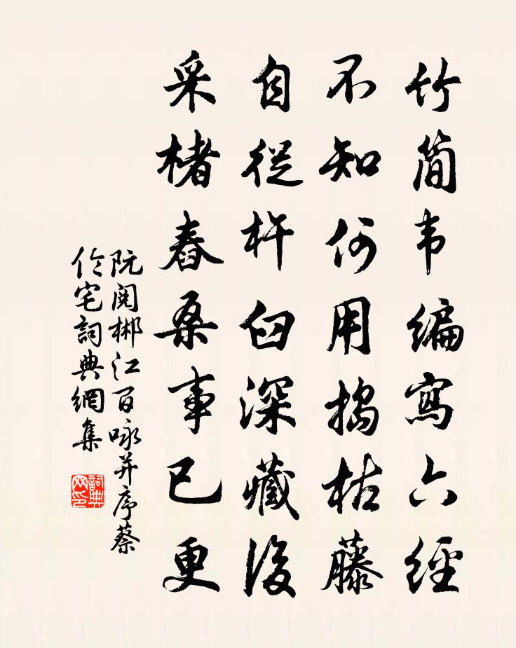詩詞名句歷史字典書法欣賞書法字典國語詞典說文解字康熙字典古漢語字典標 題 作 者 詩 句 郴江百詠並序蔡倫宅作者:阮閱 朝代:宋代郴江百詠並序蔡倫宅原文竹簡韋編寫六經,不知何用搗枯藤。自從杵臼深藏後,采楮舂桑事已更。詩詞問答問:郴江百詠並序蔡倫宅的作者是誰?答:阮閱問:郴江百詠並序蔡倫宅寫於哪個朝代?答:宋代阮閱郴江百詠並序蔡倫宅書法欣賞郴江百詠並序蔡倫宅書法作品詩詞推薦再用韻杜范〔宋代〕浮艷夸春苑,貞耐還秋花。有菊與芙蓉,誰能分等差。金蕊含朝暉,丹臉粲夕霞。素商太冷淡,歲晚生光華。詩人初夏遊八關寺陳與義〔宋代〕閉門睡過春,出門綠滿城。八關池上柳,絮罷但藏鶯。世故劇千蝟,今朝此閒行。草木隨時好,客恨終難平。寺有扃岫為張支使作二首姜特立〔宋代〕老去林泉屬我,時來軒冕輸君。正好南冥運翼,未用北山移文。寄李闔舍連文鳳〔宋代〕楚樹吳雲隔風塵,相思兩地各傷神。悠悠歲月多華發,歷歷江山少故人。苔屋不來今日雨,草地長夢舊家春。便鴻寒食內宴二首張籍〔唐代〕朝光瑞氣滿宮樓,彩纛魚龍四周稠。廊下御廚分冷食,殿前香騎逐飛球。千官盡醉猶教坐,百戲皆呈未放休。共喜三月晦游道場山宿清公房與成父同行二首鄧文原〔元代〕澗石縈紆紫竹叢,晴雲吹落水晶宮。夜寒身宿群峰頂,花盡春歸萬木中。儻買山田營破屋,時過僧寺駕孤篷。只應題趙楶所收趙令穰大年煙林二絕張耒〔宋代〕江上孤煙蔽遠林,秋原人靜下鳴禽。水鄉此景常經眼,誰信侯家畫萬金。喜涼韓偓〔唐代〕爐炭燒人百疾生,鳳狂龍躁減心情。四山毒瘴乾坤濁,一簟涼風世界清。楚調忽驚淒玉柱,漢宮應已濕金莖。豪強海棠圖崔塗〔唐代〕海棠花底三年客,不見海棠花盛開。卻向江南看圖畫,始慚虛到蜀城來。憶昨行寄呈劉法曹劉宰〔宋代〕憶昨太守宣城陳,人物風流法從臣。太息官倉取無藝,要與邑民圖久計。總將一石計其贏,三斗八升為定製。厥初真西山贊劉宰〔宋代〕中國相司馬,和氣滿華夏。惜哉民始蘇,身已要人扶。題鄭拾遺草堂韋應物〔唐代〕借地結茅棟,橫竹掛朝衣。秋園雨中綠,幽居塵事違。陰井夕蟲亂,高林霜果稀。子有白雲意,構此想岩扉。第一水龍吟 贈李元法劉志淵〔元代〕綿綿一氣沖關節。熏蒸遍流百脈。聚歸乾鼎,象成龍虎,性情感結。精變高超越,功七返、九還無闕。煉成大藥,題資福院平綠軒二首陳炳〔宋代〕水屋圍春綠,雲岑送曉青。無心向朝市,信步到禪扃。野境連天遠,疏鍾隔岸聽。杯行莫辭醉,檐月笑人醒。宮詞王珪〔唐代〕博山夜宿沈香火,帳外時聞暖鳳笙。理遍從頭新上曲,殿前寵直未交更。賢者之孝二百四十首盛彥林同〔宋代〕既知為異物,號泣絕還生,未有蠐螬炙,翻令母目明。元日立春感嘆有作二首范成大〔宋代〕元日兼春日,霜寒又雪寒。並煩傳菜手,同捧頌椒盤。疊膝稀穿履,扶頭懶正冠。五年如此度,寧得諱衰殘。次韻陳帳管秋思方岳〔宋代〕人家一樣卷湘簾,惹起新愁到酒邊。久客不知詩瘦損,小樓孤倚月娟娟。尹丈少稷舊作借竹軒詩數首如雨重時驚入屋梢趙蕃〔宋代〕離立何妨出屋高,風微亦得聽蕭騷。南山昨夜新雷起,行有橫鞭破土膏。奉陪趙顏術登疊嶂還飲陵峰梅竹間李彌遜〔宋代〕春曉飛花一尺圍,旋看風力悄瓊瑰。廣寒宮殿千門啟,群玉峰巒四面開。直節自強深笑竹,清姿堪並絕知梅。史君名句推薦儻寄相思字,愁人定解顏。錢起《送夏侯審校書東歸》 紅樓隔雨相望冷,珠箔飄燈獨自歸。李商隱《春雨》 易挑錦婦機中字。難得玉人心下事。劉克莊《玉樓春·戲林推》 同來望月人何處?風景依稀似去年。趙嘏《江樓舊感 / 江樓感舊》 飛鳥沒何處,青山空向人。劉長卿《餞別王十一南遊》 無情明月,有情歸夢,同到幽閨。劉基《眼兒媚·秋思》 西風吹老洞庭波,一夜湘君白髮多。唐珙《題龍陽縣青草湖》 北極懷明主,南溟作逐臣。宋之問《途中寒食題黃梅臨江驛寄崔融》 長者梢,深者底。宋濂、王褘《元史·列傳·卷二》 階下青苔與紅樹,雨中寥落月中愁。李商隱《端居》