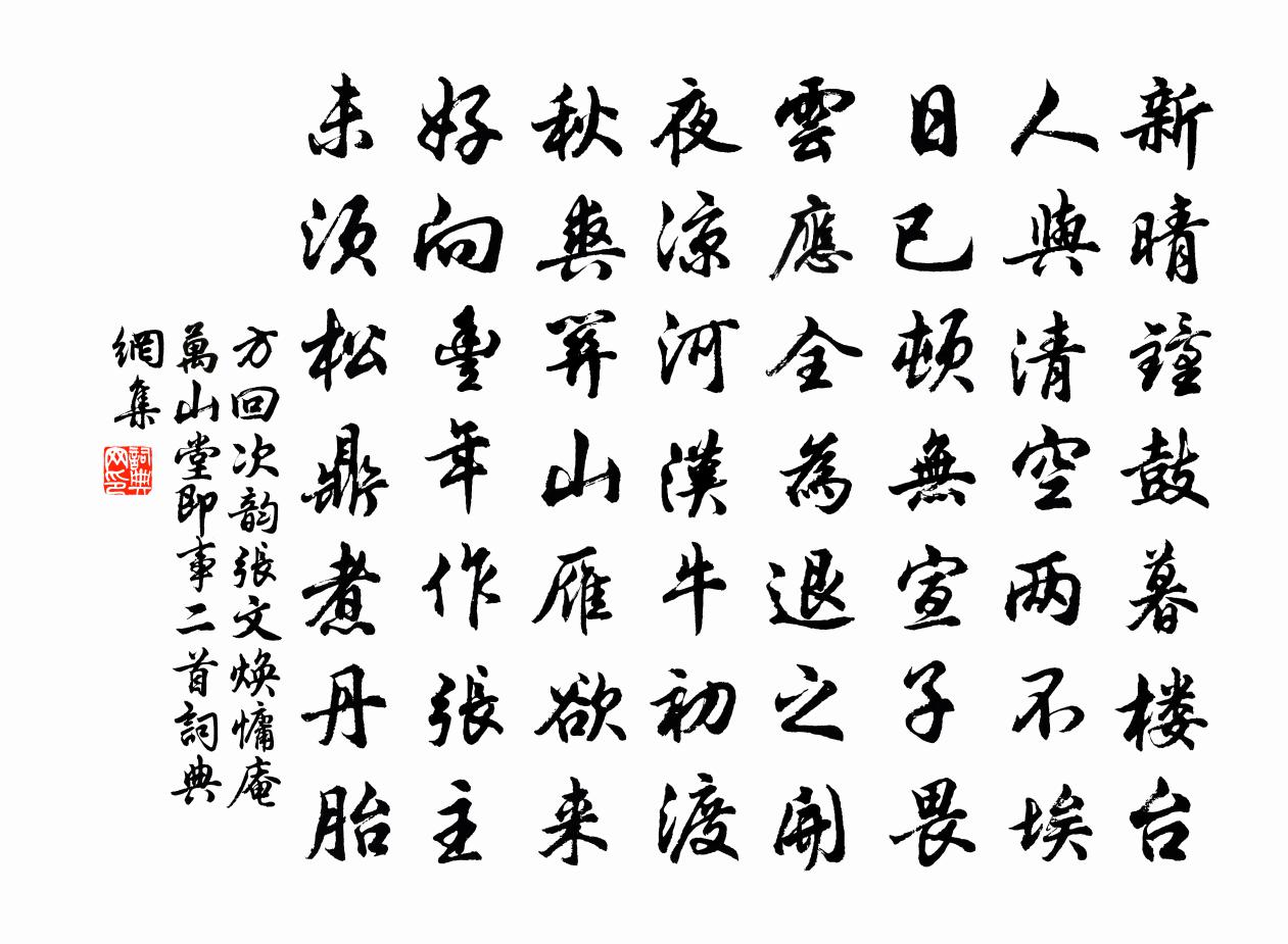 詩詞名句歷史字典書法欣賞書法字典國語詞典說文解字康熙字典古漢語字典標 題 作 者 詩 句 次韻張文煥慵庵萬山堂即事二首作者:方回 朝代:宋代原文新晴鐘鼓暮樓台,人與清空兩不埃。日已頓無宣子畏,雲應全為退之開。夜涼河漢牛初渡,秋爽關山雁欲來。好向豐年作張主,未須松鼎煮丹胎。詩詞問答問:《次韻張文煥慵庵萬山堂即事二首》的作者是誰?答:方回問:該詩寫於哪個朝代?答:宋代書法欣賞次韻張文煥慵庵萬山堂即事二首書法作品詩詞推薦見陳月觀二首王奕〔宋代〕鰲轉山空海失深,仙人抱月自高吟。春秋兩字尊王義,皇極一編經世心。千載文聲扶學校,萬年史筆寄山林。太邱方公說通直見示與小子京和答棋詩四篇因次本蘇頌〔宋代〕思涌如傾潮汐池,才高早契聖明知。省中一語開天意,江表三年得吏師。通舊辱投文舉刺,可人欣對費褘棋。更觀七溪陳均〔宋代〕為愛潺湲引步遲,不知行盡白雲西。雲深忘卻來時路,吟斷空山片月低。送杜郎中入茶山修貢楊夔〔唐代〕一道澄瀾徹底清,仙郎輕棹出重城。采蘋虛得當時稱,述職那同此日榮。劍戟步經高障黑,綺羅光動百花明。謝公次韻謝王君方回〔宋代〕妙年富才藻,亹亹迫淵雲。逸勢波瀾闊,神功混沌分。百為爭細故,一笑付微醺。天地江河在,終垂萬古文。外舅杜寺丞永城守水作詩寄呈晁補之〔宋代〕雪消冰動看通津,草長江南岸岸春。莫唱龍舟五更曲,揚州楊柳解愁人。送韋十六評事充同谷郡防禦判官杜甫〔唐代〕昔沒賊中時,潛與子同游。今歸行在所,王事有去留。逼側兵馬間,主憂急良籌。子雖軀幹小,老氣橫九州。挺身李寅之招飲同登九江城方回〔宋代〕覆卻罔攸測,理亂非所任。兀兀兔株意,哀哀鶯谷音。識驥伯樂眼,放麑西巴心。懷惠在夙昔,觀過匪斯今。題洞虛觀釋仲殊〔宋代〕古觀多松檜,幽奇近暮秋。坐看新月上,閒看斷雲愁。野思同花鳥,鄉情隔島洲。輕寒披鶴氅,隱几彼搔頭。偈頌一百六十首釋宗杲〔宋代〕真生無可生,真滅無可滅。寂滅忽現前,蝦蟆吞卻月。減蘭十梅(風)佚名〔宋代〕東風吹暖。輕動枝頭嬌艷頭。成片驚飛。不是城南畫角吹。香英飄處。定向壽陽妝閣去。莫損柔柯。今日清香遠更見張運使郎中周麟之〔宋代〕風度顒顒白首郎,清朝趨奏久含香。東南德望龍津闊,甲乙科名雁鄧長。使節不辭驪駕遠,卿家重見戰門光。原他北窗陸游〔宋代〕晏嬰長不滿五尺,淳于飲能至一石。老無功名未足嘆,滑稽玩世亦非昔。當年交友傾一時,誰料蓬門今寂寂!陳山南鄉子(九日用東坡韻)陳師道〔宋代〕晴野下田收。照影寒江落雁洲。禪榻茶爐深閉閣,颼颼。橫雨旁風不到頭。登覽卻輕酬。剩作新詩報答秋。人意自自城東至以詩代書戲招李六拾遺崔二十六先輩白居易〔唐代〕青門走馬趁心期,惆悵歸來已校遲。應過唐昌玉蕊後,猶當崇敬牡丹時。暫游還憶崔先輩,欲醉先邀李拾遺。尚殘塊坐齋中有感陸游〔宋代〕敗席凝麈嬾拂除,況能作意去庭蕪。讀書眼力衰難強,對酒心情薄欲無。野寺鐘魚思下擔,山郵鞍馱憶登途。頹然沅陵契丈用蕃將至辰州寄在伯兄韻作詩見屬用趙蕃〔宋代〕能事豈工刀與筆,閒情聊付詠而觴。生前憂累須陶寫,身後聲名盡在亡。妙智洞陳堯叟〔宋代〕追憶經行三十年,漫山桃李競爭妍。於今棠棣花成萼,我已童 * 酒紅。牧馬山道中范成大〔宋代〕土橋茅屋兩三家,竹里鳴泉漱白沙。春色惱人無畔岸,亂飄風袖拂梅花。送人王建〔唐代〕白日向西沒,黃河復東流。人生足著地,寧免四方游。我行無返顧,祝子勿回頭。當須向前去,何用起離憂。但恐名句推薦空勞縴手,解佩贈情人。牛希濟《臨江仙·柳帶搖風漢水濱》 垂柳覆金堤,蘼蕪葉復齊。薛道衡《昔昔鹽》 獨坐幽篁里,彈琴復長嘯。王維《竹里館》 跬步不休,跛鱉千里;累積不輟,可成丘阜。劉安及其門客《淮南子·說林訓》 不寶金玉,而忠信以為寶戴聖《禮記·儒行》 射有似乎君子。失諸正鵠,反求諸其身。子思《中庸·第十四章》 望千門如晝,嬉笑遊冶。周邦彥《解語花·上元》 德者才之主,才者德之奴。洪應明《菜根譚·概論》 碧虛無雲風不起,山上長松山下水。劉禹錫《八月十五夜桃源玩月》 狡兔死,走狗烹;飛鳥盡,良弓藏;敵國破,謀臣亡。司馬光《資治通鑑·漢紀三》