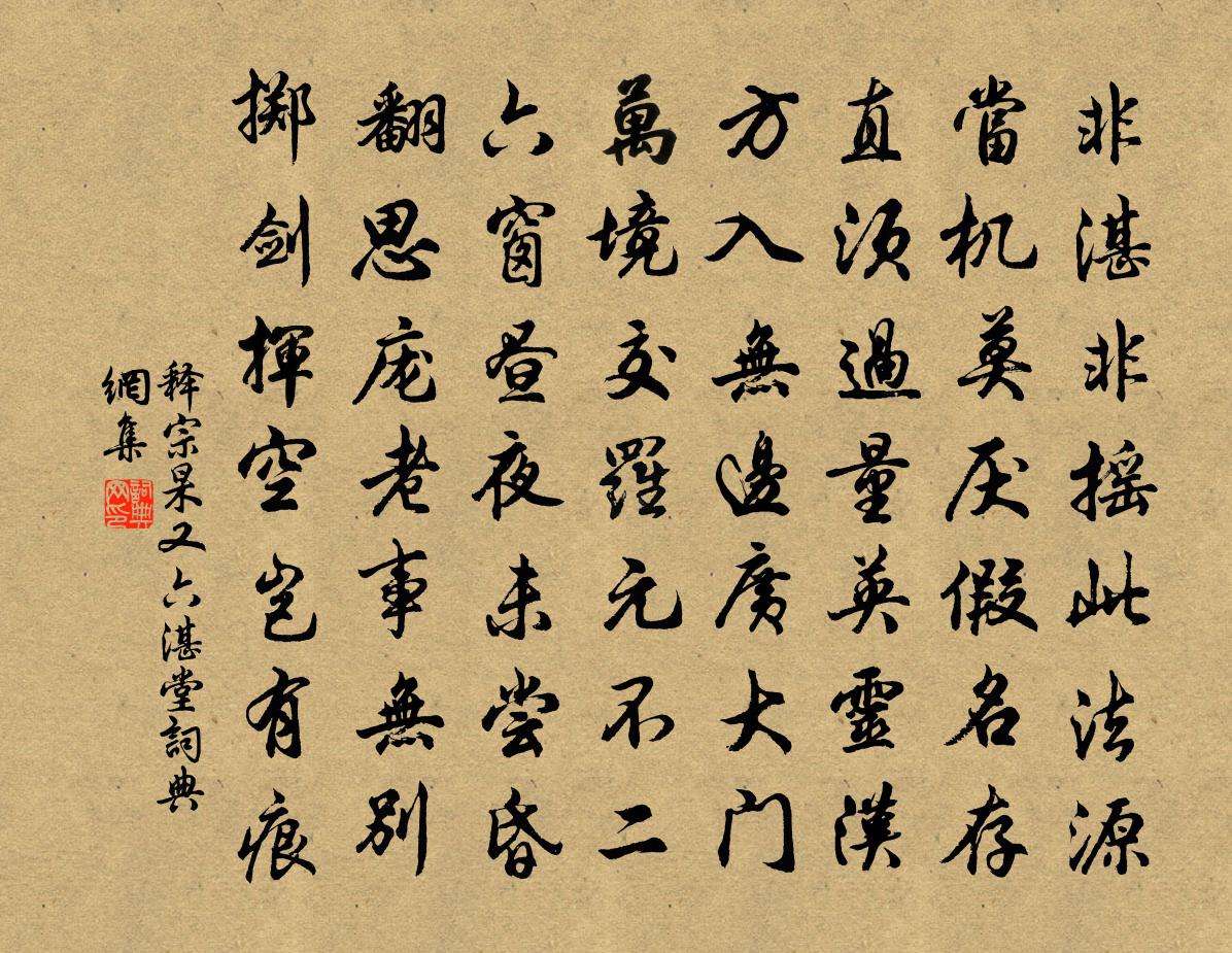 詩詞名句歷史字典書法欣賞書法字典國語詞典說文解字康熙字典古漢語字典標 題 作 者 詩 句 又六湛堂作者:釋宗杲 朝代:宋代又六湛堂原文非湛非搖此法源,當機莫厭假名存。直須過量英靈漢,方入無邊廣大門。萬境交羅元不二,六窗晝夜未嘗昏。翻思龐老事無別,擲劍揮空豈有痕。詩詞問答問:又六湛堂的作者是誰?答:釋宗杲問:又六湛堂寫於哪個朝代?答:宋代釋宗杲又六湛堂書法欣賞又六湛堂書法作品詩詞推薦少虛用前韻見貽仍答二首郭印〔宋代〕倦遊思林泉,歸夢空昔昔。田無二頃良,何以充耕織。古來貴公子,氣焰熏王室。家饒數百僮,門走三千客。志滿雜歌謠辭古歌沉佺期〔唐代〕落葉流風向玉台,夜寒秋思洞房開。水精簾外金波下,雲母窗前銀河回。玉階陰陰苔蘚色,君王履綦難再得。璇閨丁丑同蔣力父東歸至城詩以別之王邁〔宋代〕發軔神皋愁熱甚,解驂鄉井得涼多,半生相托左右手,一日同收甲乙科。老我已鋤年少習,期君共守歲寒柯。榮華尚書新造花箋徐寅〔唐代〕濃染紅桃二月花,只看神筆縱龍蛇。淺澄秋水看雲母,擊碎輕苔間粉霞。寫賦好追陳後寵,題詩堪送竇滔家。使君歸朝歡辛棄疾〔宋代〕山下千林花太俗。山上一枝看不足。春風正在此花邊,菖蒲自蘸清溪綠。與花同草木。問誰風雨飄零速。莫怨歌,嘉禾沈園吳龍翰〔宋代〕景物何其異,虛岩人力成。清池沈鳥影,高樹落蟬聲。花日樓台麗,香風簾幕輕。我來一吟賞,不惜買杯傾。偈頌一百零一首釋慧性〔宋代〕一人道有一人無,正令全提肘後符。昨夜虛空開口笑,石人吞卻洞庭湖。自廣岩避暑西庵張鎡〔宋代〕推枕欣朝涼,開戶畏炎日。駕言城西遊,滯懣去如失。山空秋易知,石近雲屢出。穿松得古寺,隨喜聽講律。士女瑞鷓鴣華岳〔宋代〕華月樓前見玉容。鳳釵斜褪鬢雲松。梅花體態香凝雪,楊柳腰肢瘦怯風。幾向白雲尋楚□,難憑紅葉到吳宮。別來檃栝東坡觀棋詩引並四言詩二首楊萬里〔宋代〕五老峰前松蔭庭,風光清美日華明。獨游略不逢一士,時有紋枰落子聲。折花楊萬里〔宋代〕指似青童折海棠,繁枝仍要艷花房。痴眉騃眼生疏手,顫脫花房悶一場。題陳季陵家巫山圖一首韓元吉〔宋代〕蓬萊水弱波連天,五城十二樓空傳。行人慾至風引船,不知路出巫山前。巫山仙子世莫識,十二高峰作顏色。暮去魏元履國錄挽章二首呂祖謙〔宋代〕群公祖疏傳,多士送陽城。短棹非前約,長亭及此行。深留移白日,共語只蒼生。會續山陽賦,鄰人笛未橫。送直講吳殿丞宰鞏縣王安石〔宋代〕青嵩碧洛曾游地,墨綬銅章忽在身。擁馬尚多畿甸雪,隨衣無復禁城塵。古來學問須行己,此去風流定慰人。更憶初食栗舒岳祥〔宋代〕新涼喜見栗,物色近重陽。兔子成毫紫,鵝兒脫殼黃。寒宵蒸食暖,飢曉嚼來香。風味山家好,蹲鴟得共嘗。送趙叔靜教授閩中四首陳傅良〔宋代〕讀書須讀經,學文須學古。青松故不換,白髮早可數。我亦窶人子,風雨蔽蓬戶。胡為數相過,夜話恆過午。頌古十八首釋師一〔宋代〕不是旛兮不是風,軒轅寶鑑出懷中。森羅萬象難逃影,戀窟狐狸失卻蹤。送孫勝元稹〔唐代〕桐花暗澹柳惺憁,池帶輕波柳帶風。今日與君臨水別,可憐春盡宋亭中。偈頌一百四十一首釋師範〔宋代〕縱無所畏,說大脫空。雖有希求,辨最上供。和劉中書仙詩沈約〔南北朝〕清旦發玄洲。是暮宿丹丘。崑山西北映。流泉東南流。霓裳拂流電。雲車委輕霰。崢嶸上不覩。寥廓下無見。名句推薦質勝文則野,文勝質則史。文質彬彬,然後君子。孔子弟子《論語·雍也篇》 大樹底下好遮陰張南莊《何典·第十回》 求之有道,得之有命,是求無益於得也,求在外者也。孟子《孟子·盡心章句上·第三節》 五馬如飛龍,青絲結金絡。李白《陌上桑》 寄言儔侶,莫負廣寒沈醉。文徵明《念奴嬌·中秋對月》 盡無言、閒品秦箏,淚滿參差雁呂渭老《薄倖·青樓春晚》 大器晚成;大音希聲老子《老子·德經·第四十一章》 看朱成碧思紛紛,憔悴支離為憶君。武則天《如意娘》 邊月隨弓影,胡霜拂劍花。李白《塞下曲六首》 見楊柳飛綿滾滾,對桃花醉臉醺醺。王實甫《十二月過堯民歌·別情》