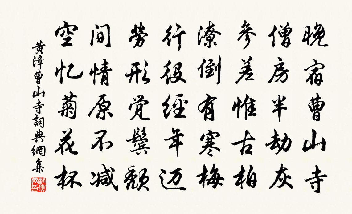 詩詞名句歷史字典書法欣賞書法字典國語詞典說文解字康熙字典古漢語字典標 題 作 者 詩 句 曹山寺作者:黃漳 朝代:宋代曹山寺原文晚宿曹山寺,僧房半劫灰。參差惟古柏,潦倒有寒梅。行役經年邁,勞形覺鬢頹。間情原不減,空憶菊花杯。詩詞問答問:曹山寺的作者是誰?答:黃漳問:曹山寺寫於哪個朝代?答:宋代黃漳曹山寺書法欣賞曹山寺書法作品詩詞推薦和賀參政與應宣教詩應居與墳廬相近曹勛〔宋代〕庵外山高水不窮,庵中道德與時隆。豈圖寶所千峰靜,得奉清言一笑同。幽築禪扉俱不遠,水光蘿月冷相通。它年壽曾主管陳亮〔宋代〕豫章此夕誕賢良,非霧非煙繞畫堂。正是庭蘭爭秀髮,更當隴麥弄輕黃。一杯為壽滄溟窄,萬口同詞日月長。朝晚六州佚名〔宋代〕齊天宮宇,四海宮洽淳風。宮接寶胄,宮垂真檢,景祚無窮。成玉牒、日觀歸功。冀野升方鼎,脽上由崇。欽檜井偈頌一百二十三首釋普度〔宋代〕年年是好年,日日是好日。新年人看舊年人,舊年日有新年日。潮生漲舊痕,潮落石頭出。萬物有遷流,遷流無變和池亭即事趙希逢〔宋代〕邂逅那堪皆我輩,一觴一詠覺情深。浮榮槐枕半炊夢,清興竹林千古心。風漲晴空飛絮急,雨滋冷砌任苔侵。池亭玉照堂觀梅二十首張鎡〔宋代〕一笑林間說向春,宿緣三世豈無因。半生憂患摧殘損,卻與梅花作主人。哭樓梅麓陳允平〔宋代〕白玉樓成去作文,只從西棘掛朝冠。生來病苦相如渴,沒後人知范叔寒。野店春閒沽酒榼,溪堂月冷釣魚竿。梅花題畫卷五首范成大〔宋代〕欹傾棧路繞山明,隔隴人家犬吠聲。無限白雲堆去路,不知誰識許宣平。江南春·波渺渺寇準〔宋代〕波渺渺,柳依依,孤村芳草遠,斜日杏花飛。江南春盡離腸斷,苹滿汀洲人未歸。繼韓尚書春日舟行韻楊冠卿〔宋代〕河水拍堤清且漣,堤聯南陌與東阡。浮家泛宅苕溪路,老卻春光又一年。南柯子侯善淵〔元代〕大道親之遠,玄機退未疏。太虛凝秀自如如。一派靈源,瀲灩貫從初。北海鸞渝黑,南山鳳染朱。翱翔雲外出虛無宿開元寺樓(一作宿開元寺西樓聞歌感賦)許渾〔唐代〕誰家歌裊裊,孤枕在西樓。竹色寒清簟,松香染翠幬。月移珠殿曉,風遞玉箏秋。日出應移棹,三湘萬里愁。春雨陸游〔宋代〕藥爐茶灶淡生涯,聽雨猶能惜物華。蘸岸頓添三尺水,沾泥不貸一城花。閒摩病眼開書卷,時傍危欄弄釣車。稚子題昌山聖姥廟甘同叔〔宋代〕分宜古縣環清溪,重岡復嶺如賓士。行逢山斷水流處,閱城廟枕山之西。我來落日在前嶺,摩挲一讀廬肇碑。嗟唐牡丹程敦厚〔宋代〕芳叢列翠幰,新苞吐香麝。滿地方爭妍,何花肯相下。牡丹持晚節,群芳甘共亞。題王氏女自寫渡水羅漢曹勛〔宋代〕尊者暫離方廣間,神通遊戲山水閒。女郎夙植窺其藩,妙筆寫出尊者顏。甚知此意大廓落,直與世塵解纏縛。不須將發循州社日於所居館宴送趙嘏〔唐代〕浪花如雪疊江風,社過高秋萬恨中。明日便隨江燕去,依依俱是故巢空。劍門郭思〔宋代〕斲石為梁鐵作樞,武侯於此濟師徒。鞭山怒氣金鰲伏,架壑宏模玉蝀擄。雜詠八首上禮部李侍郎春鏡劉長卿〔唐代〕寶鏡凌曙開,含虛淨如水。獨懸秦台上,萬象清光里。豈慮高鑒偏,但防流塵委。不知娉婷色,回照今何似。居洛初夏作司馬光〔宋代〕四朋清和雨乍晴,南山當戶轉分明。更無柳絮隨風起,惟有葵花向日傾。名句推薦天下無指者,生於物之各有名,不為指也。公孫龍《公孫龍子·指物論》 雪後燕瑤池,人間第一枝。趙令畤《菩薩蠻·春風試手先梅蕊》 龍魚失水難為用,龜玉蒙塵未見珍牟融《春日山亭》 念天地之悠悠,獨愴然而涕下。陳子昂《登幽州台歌》 人之敵,非奸亦奸;人之友,其奸亦忠。來俊臣《羅織經·察奸卷第八》 月上柳梢頭,人約黃昏後。歐陽修《生查子·元夕》 花明玉關雪,葉暖金窗煙。李白《折楊柳》 人之初,性本善。王應麟《三字經·全文》 人之事兄,不可同於事父,何怨愛弟不及愛子乎?顏之推《顏氏家訓·兄弟篇》 彼此當年少,莫負好時光。李隆基《好時光·寶髻偏宜宮樣》