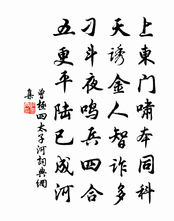 詩詞名句歷史字典書法欣賞書法字典國語詞典說文解字康熙字典古漢語字典標 題 作 者 詩 句 四太子河作者:曾極 朝代:宋代四太子河原文上東門嘯本同科,天誘金人智詐多。刁斗夜鳴兵四合,五更平陸已成河。詩詞問答問:四太子河的作者是誰?答:曾極問:四太子河寫於哪個朝代?答:宋代曾極四太子河書法欣賞四太子河書法作品詩詞推薦量移自解王禹偁〔宋代〕商山五百五十日,若比昔賢非滯留。試看江陵元相國,四年移得向通州。過賈誼舊居戴叔倫〔唐代〕楚鄉卑濕嘆殊方,鵩賦人非宅已荒。謾有長書憂漢室,空將哀些吊沅湘。雨餘古井生秋草,葉盡疏林見夕陽。過客和士特栽果十首李劉子翬〔宋代〕仙枝移傍小岩幽,答踏名推第一流。曾向清波沈寒碧,甘瓜五色但輕浮。偈頌二十首釋如珙〔宋代〕稱心稱意可長保,上苑名園春日花。一個尖頭茅屋下,長年無事道人家。還孟郎中詩卷用元韻崔敦禮〔宋代〕吟喔兩夫子,濯濯春月柳。金石相擊撞,論文自為友。我欲和陽春,高調不容口。披玩若為稱,朝酣玉台酒。書舞陽西寺舊題處黃庭堅〔宋代〕萬事紛紛日日新,當時題壁是前身。寺僧物色來相訪,我似昔人非昔人。綠波亭衡泌〔宋代〕清淚斑斑灑綠波,年來轉覺別離多。扁舟南浦分攜處,水遠山長愁奈何。南塘晚步記鄰里語陸游〔宋代〕喚舟欲泛湖,出門日已暮。顧景遂輟行,老病畏風露。不如上南塘,蕭然散予步。季子挾書卷,仲孫奉杖屨。夏秋河滿子薛逢〔唐代〕系馬宮槐老,持杯店菊黃。故交今不見,流恨滿川光。偈頌一百零九首釋可湘〔宋代〕拶透大圓覺,平地沉山嶽。翻笑刻舟人,無繩徒自縛。登太白樓王世貞〔明代〕昔聞李供奉,長嘯獨登樓。此地一垂顧,高名百代留。白雲海色曙,明月天門秋。欲覓重來者,潺湲濟水流。丁亥冬大雪於石〔宋代〕頑雲撥不開,陰風挾嚴威。大雪止復作,細民已噓嘻。人言豐年瑞,可樂有反悲。頻年豈無雪,雪少寒不知。誰為送睦州丁郎中張伯玉〔宋代〕雨後桐江木葉稀,坐棠無事枕閒欹。扁舟幾忍嚴君釣,古壁多逢沈令詩。夜靜好當輪省宿,曉寒堪憶趁朝時。山城秋日留題蔣亭羅鄴〔唐代〕西風才起一蟬鳴,便算關河馬上程。碧浪鷁舟從此別,丹霄鵠箭忍無成。二年芳思隨雲雨,幾日離歌戀旆旌。回首敖茂才論詩劉克莊〔宋代〕詩道不勝玄,難於問性天。莫求鄰媼誦,姑付後儒箋。至質翻如俚,尤癯始似仙。吾非肝肺異,先得子同然。和丁祖舜綠筍之韻陳淳〔宋代〕喔風毛徑游衛山峬,溢耳謠言如春敷。猗猗青青發三嘆,熟察其調未免粗。當年載歌淇水澳,區區但取枝葉綠。惡遣意釋紹嵩〔宋代〕一生生計祗長貧,跡近群鷗意倍親。舊喜讀書今懶讀,寒灰枯木僅堪倫。贈別周文顯三首趙蕃〔宋代〕夏旱更憂秋旱,江南未卜湖南。兀兀相看蹇步,蕭蕭重跨羸驂。漁父吳鎮〔元代〕無端垂釣空潭心。魚大船輕力不任。憂傾倒,系浮沉。事事從輕不要戴勝詞王建〔唐代〕戴勝誰與爾為名,木中作窠牆上鳴。聲聲催我急種穀,人家向田不歸宿。紫冠采采褐羽斑,銜得蜻蜓飛過屋。可憐名句推薦知人者智,自知者明。勝人者有力,自勝者強。知足者富。強行者有志。老子《老子·道經·第三十三章》 君子以思患而豫防之。佚名《易傳·象傳下·既濟》 玉樓深鎖薄情種。清夜悠悠誰共。秦觀《桃源憶故人·玉樓深鎖薄情種》 痛飲狂歌空度日,飛揚跋扈為誰雄。杜甫《贈李白》 不見又思量,見了還依舊。李之儀《謝池春·殘寒銷盡》 驅雞上樹木,始聞叩柴荊。杜甫《羌村三首·其三》 終古閒情歸落照,一春幽夢逐遊絲。納蘭性德《浣溪沙·楊柳千條送馬蹄》 柳色黃金嫩,梨花白雪香。李白《宮中行樂詞八首》 此後錦書休寄,畫樓雲雨無憑。晏幾道《清平樂·留人不住》 武皇去金閣,英威長寂寞江淹《銅爵妓》