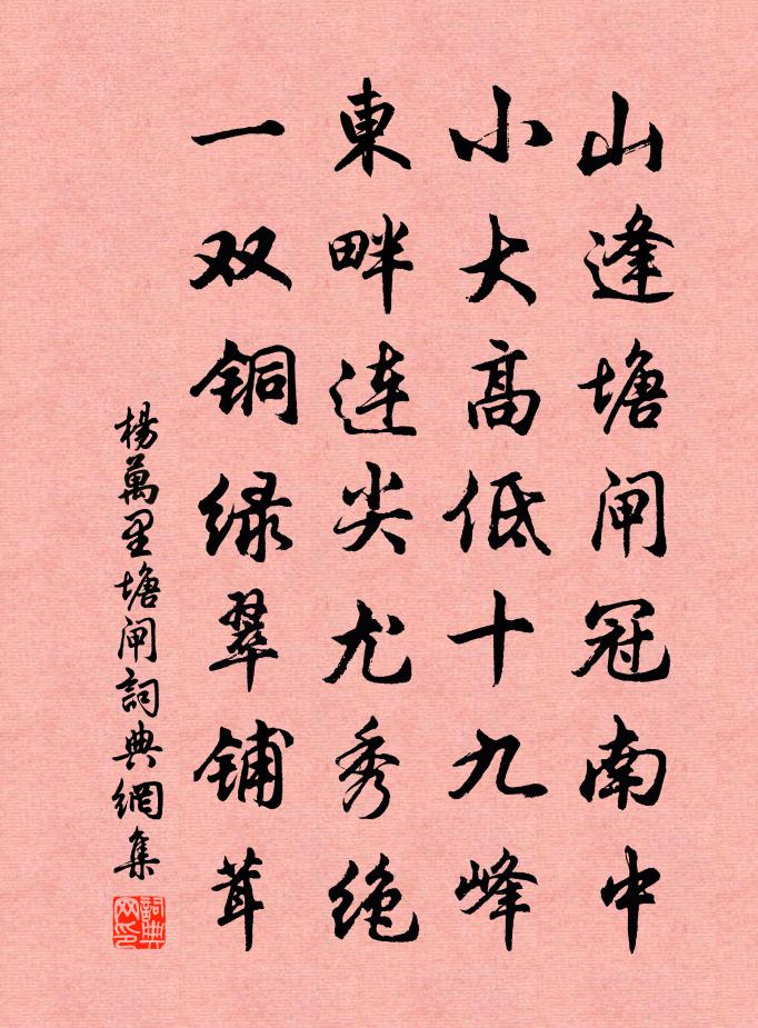 山逢塘閘冠南中,小大高低十九峰。東畔連尖尤秀絕,一雙銅綠翠鋪茸。