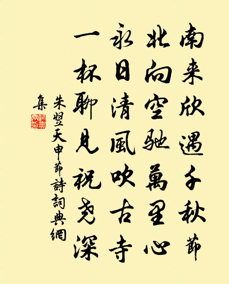 詩詞名句歷史字典書法欣賞書法字典國語詞典說文解字康熙字典古漢語字典標 題 作 者 詩 句 天申節詩作者:朱翌 朝代:宋代天申節詩原文南來欣遇千秋節,北向空馳萬里心。永日清風吹古寺,一杯聊見祝堯深。詩詞問答問:天申節詩的作者是誰?答:朱翌問:天申節詩寫於哪個朝代?答:宋代朱翌天申節詩書法欣賞天申節詩書法作品詩詞推薦都丞李侍郎叔永和予小園二十六詩因成古風一喻良能〔宋代〕黃昏兀坐對疏竹,欻有寒光臨蔀屋。焚香發軸得新詩,炯炯驪珠二十六。三唐妙音久已斷,輞川麗藻今能續。報瓜青雲亭李壁〔宋代〕誰人此地著危欄,城郭江山表里看。時節不知春已半,天圍稍覺目前寬。眉嫵 七夕感事張翥〔元代〕又蛛分天巧,鵲誤秋期,銀漢會牛女。薄命猶如此,悲歡事,人間何限夫婦。此情更苦。怎似他、今夜相遇。素娥賢者之孝二百四十首吳明徹林同〔宋代〕苗枯親未葬,號泣日于田。誰謂竟不雨,而能獨有年。平山堂寄歐陽公王令〔宋代〕廢苑繁華未可尋,孤城西北路嶔崟。檐邊月過峰巒頂,柱下雲回草樹陰。賓客日隨千騎樂,管弦風入萬家深。知公陳先輩故居皮日休〔唐代〕杉桂交陰一里余,逢人渾似洞天居。千株橘樹唯沽酒,十頃蓮塘不買魚。藜杖閒來侵徑竹,角巾端坐滿樓書。襄陽和元遺山六首王奕〔宋代〕壯哉景陵宮,龜屭極神猛。洪惟在庭庫,制度合雄騁。聖世尚封崇,功擬天地並。中天怪事發,靈長轉俄頃。我登偈頌二百零五首釋正覺〔宋代〕人平不語,水平不流。嘉州大象,陝府鐵牛。莫怪扶桑最先照,大都家住海門洲。閒園獨賞白居易〔唐代〕午後郊園靜,晴來景物新。雨添山氣色,風借水精神。永日若為度,獨游何所親。仙禽狎君子,芳樹倚佳人。蟻斗江有汜佚名〔先秦〕江有汜,之子歸,不我以。不我以,其後也悔。江有渚,之子歸,不我與。不我與,其後也處。江有沱,之子歸,宮中行樂詞其二李白〔唐代〕柳色黃金嫩。梨花白雪香。玉樓巢翡翠。 金殿鎖鴛鴦。選妓隨雕輦。徵歌出洞房。宮中誰第一。飛燕在昭陽。雜曲歌辭。遊子吟顧況〔唐代〕故櫪思疲馬,故巢思迷禽。浮雲蔽我鄉,躑躅遊子吟。遊子悲久滯,浮雲郁東岑。客堂無絲桐,落葉如秋霖。艱哉雷塘晚歸王珪〔唐代〕塘梢黯黯夕雲低,蒼莽荒原望四迷。海日光寒銜島樹,江潮聲暴壓城鼙。喬林風勁橫鵰眼,淺草霜乾快馬蹄。戰血從仕韓愈〔唐代〕居閒食不足,從仕力難任。兩事皆害性,一生恆苦心。黃昏歸私室,惆悵起嘆音。棄置人間世,古來非獨今。喜晴陸游〔宋代〕久雨群蛙日夜號,樂哉霽色滿江郊。草書已悟屋漏壁,詩句免悲風卷茆。喚婦晴鳩鳴廢圃,歸林棲鶻補危巢。泥乾相書語(張璟藏論婦人相引此)佚名〔唐代〕目有四白,五夫守宅。挽陳梧州二首劉克莊〔宋代〕谷目多名士,西軒與石門。族皆通一譜,君獨秀諸孫。叔季斯人少,耆英幾個存。可憐同社叟,反袂賦招魂。減字木蘭花·莎衫筠笠盧炳〔宋代〕莎衫筠笠。正是村村農務急。綠水千畦。慚愧秧針出得齊。風斜雨細。麥欲黃時寒又至。饁婦耕夫。畫作今年稔歲濃翠台張洞〔宋代〕君懷澹無營,瀟瀟淵明伍。築台面喬嶽,種竹環幽戶。糠秕身後名,徽纆腰間組。高風激奔競,救時非小補。浣溪沙·堤上遊人逐畫船歐陽修〔宋代〕堤上遊人逐畫船,拍堤春水四垂天。綠楊樓外出鞦韆。白髮戴花君莫笑,六么催拍盞頻傳。人生何處似尊前!名句推薦君子矜而不爭,群而不黨。孔子弟子《論語·衛靈公篇》 南山截竹為觱篥,此樂本自龜茲出李頎《聽安萬善吹觱篥歌》 謙似乎諂,然謙是虛心,諂是媚心;故處世貴謙,而不可諂。王永彬《圍爐夜話·第四三則》 待到黃昏月上時,依舊柔腸斷。程垓《卜運算元·獨自上層樓》 百年歌自苦,未見有知音。杜甫《南征》 春水碧於天,畫船聽雨眠。韋莊《菩薩蠻·人人盡說江南好》 無計奈情何,且醉金杯酒。晏幾道《生查子·輕勻兩臉花》 舊相思、偏供閒晝。吳文英《夜遊宮·春語鶯迷翠柳》 山光悅鳥性,潭影空人心。常建《題破山寺後禪院》 生財有大道,生之者眾,食之者寡,為之者疾,用之者舒,則財恆足矣。曾子《禮記·大學》