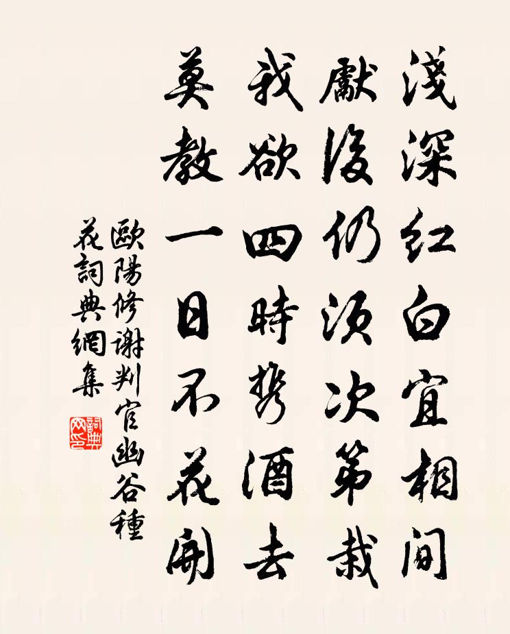 淺深紅白宜相間,先後仍須次第栽。我欲四時攜酒去,莫教一日不花開。