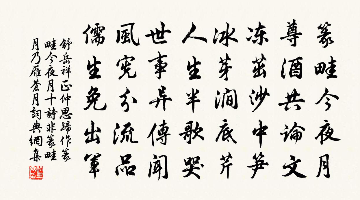 詩詞名句歷史字典書法欣賞書法字典國語詞典說文解字康熙字典古漢語字典標 題 作 者 詩 句 正仲思歸作篆畦今夜月十詩非篆畦月乃雁蒼月作者:舒岳祥 朝代:宋代原文篆畦今夜月,尊酒共論文。凍茁沙中筍,冰芽澗底芹。人生半歌哭,世事異傳聞。風憲分流品,儒生免出軍。詩詞問答問:《正仲思歸作篆畦今夜月十詩非篆畦月乃雁蒼月》的作者是誰?答:舒岳祥問:該詩寫於哪個朝代?答:宋代書法欣賞正仲思歸作篆畦今夜月十詩非篆畦月乃雁蒼月書法作品詩文賞析【原題】:正仲思歸作篆畦今夜月十詩非篆畦月乃雁蒼月蓋杜子美鄜州月之意也予作十章乃篆畦月也詩詞推薦臨江仙劉辰翁〔宋代〕睡過花陰一丈,愁深酒力千鍾。夢魂不得似游蜂。瓶花無密約,到處自神通。天上西湖似錦,人間驕馬如龍。今年頌證道歌證道歌釋印肅〔宋代〕學人不了用修行,只應步步踏陰坑。大光普照盲無識,非時不共野狐爭。月袁郊〔唐代〕嫦娥竊藥出人間,藏在蟾宮不放還。后羿遍尋無覓處,誰知天上卻容奸。寄傳逸人張詠〔宋代〕當年失腳下魚磯,苦為明朝未得歸。寄語巢由莫相笑,此心不是愛輕肥。夏五月大雨,南畝半成澤國,而梁溪人尚有畫陳維崧〔清代〕翠釜一朝裂,銅狄盡流鉛。江南五月天漏,鍊石補仍穿。驟若淫龍噴沫,狂比長鯨跋浪,廬舍沒長川。菱蔓繞床下有嘆陳造〔宋代〕應事如應敵,收功端有素。詩乃隨景遷,預計幾膠柱。鼓吹月明秋,當時亦佳句。見卵求時夜,竟為陰雲妒。想像紅樹吳融〔唐代〕一聲南雁已先紅,神女霜飛葉葉同。自是孤根非暖地,莫驚他木耐秋風。暖煙散去陰全薄,明月臨來影半空。長憶寄周愚卿趙蕃〔宋代〕買得武夷毛竹杖,忽思江外友於人。青原若訪常荷屋,助爾扶攜覓句新。獄中責廷尉華岳〔宋代〕重門有路透泉關,便合摳衣問比干。愧我直言難媚灶。從渠怒發自衝冠。烏台有月身何及,犴獄無天淚謾彈。仲夏歸漢南園寄京邑耆舊孟浩然〔唐代〕一作仲夏歸漢南園寄京邑舊遊嘗讀高士傳,最嘉陶征君。日耽田園趣,自謂羲皇人。予復何為者,棲棲徒問津。中送廣西提刑潘比部梅堯臣〔宋代〕白麻新拜大丞相,黃紙首除南省郎。欲使平刑安遠俗,莫辭乘傳歷炎荒。桂林地險通椎髻,陽朔峰奇削劍鋩。自有麗人行趙善扛〔宋代〕桃葉山前宮漏遲,宮人傍輦持花枝。君王喜憑絳仙立,殿腳爭畫雙長眉。欲抱琵琶彈出塞,結綺臨春時事改。井邊小秦王仇遠〔宋代〕水拍江堤沒軟沙。菰蒲深處釣魚家。罾頭免得黏風絮,船尾依然帶落花。和薛丞吳芾〔宋代〕歸來林下恰年余,喜對青山更面湖。野興自來知不淺,宦情今日覺全無。任從俗目嗤吾老,未許山靈誚客逋。多謝別章泉定庵二老人戴復古〔宋代〕臘里春風轉,塤箎一氣和。勸翁新歲酒,唱我老人歌。一世聲名重,四方書問多。章泉一泓水,思與海同波。雨中花/夜行船賀鑄〔宋代〕回首揚州,猖狂十載,依然一夢歸來。但覺安仁愁鬢,幾點塵埃。醉墨碧紗猶鎖,春衫白紵新裁。認鳴珂曲里,舊浣溪沙魏了翁〔宋代〕密葉留香護境天。好風時雨媚清漣。亭亭雙秀倚湖弦。造化曾居公掌握,呈祥寧許百花先。聊占棣萼蒂芳連。歲暮白居易〔唐代〕慘澹歲雲暮,窮陰動經旬。霜風裂人面,冰雪摧車輪。而我當是時,獨不知苦辛。晨炊廩有米,夕爨廚有薪。夾帽支頤葛起耕〔宋代〕氣數推移有盛衰,老觀此理獨支頤。閱人云木能千載,過眼風花只片時。名利場中棋變幻,是非窠里浪傾危。到頭送葉東叔歸永嘉連文鳳〔宋代〕君浙余閩數千里,相逢共飲西湖水。湖水正甘魚正肥,一曲離歌入秋耳。八月風高草木悲,荒城日夜塵沙飛。家山名句推薦颯颯東風細雨來,芙蓉塘外有輕雷。李商隱《無題·颯颯東風細雨來》 平生不做皺眉事,世上應無切齒人。佚名《增廣賢文·上集》 盡叫得鵑聲碎,卻教人空斷腸。阿魯威《湘妃怨·夜來雨橫與風狂》 醉中渾不記,歸路月黃昏辛棄疾《臨江仙·探梅》 惟德動天,無遠弗屆。滿招損,謙受益,時乃天道。佚名《尚書·虞書·大禹謨》 當軒對尊酒,四面芙蓉開。王維《臨湖亭》 平生不下淚,於此泣無窮。李白《江夏別宋之悌》 黃河遠上白雲間,一片孤城萬仞山。王之渙《涼州詞二首·其一》 重岡已隔紅塵斷,村落更年豐。元好問《人月圓·重岡已隔紅塵斷》 水上遊人沙上女,回顧,笑指芭蕉林里住。歐陽炯《南鄉子·畫舸停橈》