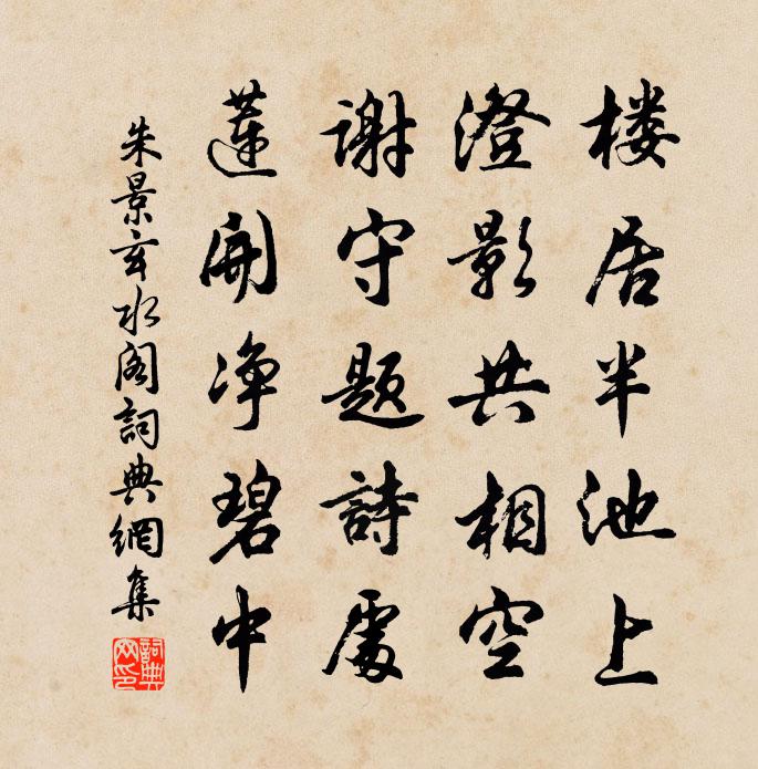 詩詞名句歷史字典書法欣賞書法字典國語詞典說文解字康熙字典古漢語字典標 題 作 者 詩 句 水閣作者:朱景玄 朝代:唐代水閣原文樓居半池上,澄影共相空。謝守題詩處,蓮開淨碧中。詩詞問答問:水閣的作者是誰?答:朱景玄問:水閣寫於哪個朝代?答:唐代問:水閣是什麼體裁?答:五絕朱景玄水閣書法欣賞水閣書法作品注釋全唐詩:卷547-3詩詞推薦贈江客白居易〔唐代〕江柳影寒新雨地,塞鴻聲急欲霜天。愁君獨向沙頭宿,水繞蘆花月滿船。自宜興歸謁鄒德久不遇李處權〔宋代〕客里仍驚奔,南走荊溪上。繫船樓前樹,偶接丈人行。茲惟天下士,抱負不可狀。而今年七十,面睟背益盎。論文期斯遠不至登谿亭有懷並屬雲台劉先生三首趙蕃〔宋代〕西南定何方,路遠惟迢迢。白鷺帶演迆,青居郁岧嶢。下有隱君子,內盛外不驕。芳春覺蘭馨,窮冬知木喬。無為游淡竹岩胡寅〔宋代〕岩好城還近,山南路卻西。淡交同魯衛,新釀到青齊。桑密家家繭,身稠處處犂。朱陵更清絕,何必此幽棲。乙巳邵武建寧夜坐書呈諸公陳普〔宋代〕寄牋遙問兩司翕命,曾遣千金慰執鞭。拋卻一川風月去,高車駟馬定何年。觀獵會圖朱翌〔宋代〕一日射雉六十三,命中要是人所難。一日射虎三直六,驍勇無前誰不伏。沙平草軟雪泥乾,手拓弓弦腰兩鏃。祥麟戲次前韻寄王鞏二首蘇轍〔宋代〕白馬貂裘錦幕,離觴瀲灩手親持。頭風欲待歌詞愈,肺病甘從酒力欺。不分歸心太匆草,更憐人事苦縈縻。相逢送衡州薛從事鄭巢〔唐代〕吟去望雙旌,滄洲晚氣清。遙分高岳色,亂出遠蟬聲。楚霽雲連寺,湘寒浪浸城。孤猿不可聽,一聽白髭生。初二日甲子雨阻風自次韻方回〔宋代〕居民汲江水,上下幾千尺。麴糵化為酒,不肯賒一滴。高要墮黃葉,草樹黯無色。詎意阻風人,於此費永日。篷低韓乾畫馬葛立方〔宋代〕刖足俄然增足,蹶蹄那害全蹄。還解追風奔雷,不妨一躍檀溪。馬公節輓辭強至〔宋代〕慘澹南宮鎩羽翰,空歸座席甫能安。魂收長夜棺尋閉,淚灑殘春袖未乾。老母始甘無祿釜,世人今轉薄儒冠。土中和翁員外題馬太傅宅賈相公井齊己〔唐代〕飛塵不敢下相干,暗脈傍應潤牡丹。心任短長投玉綆,底須三五映金盤。神工舊制泓澄在,天澤時加瀲灩寒。太傅滿江紅(次韻黃敘州□□)魏了翁〔宋代〕風引舟來,恰趁得、東樓嘉集。正滿眼、輕紅重碧,照筵浮席。更是姓黃人作守,重新墨妙亭遺蹟。對暮天、疏雨苦雨方岳〔宋代〕翁自無田望有秋,有秋翁自飽齁齁。此愁不遣吾人管,欲遣何人管此愁。句王秬〔宋代〕柳色知春淺,鐘聲覺寺深。夕望江橋示蕭諮議楊建康主簿詩何遜〔南北朝〕夕鳥已西度。殘霞亦半消。風聲動密竹。水影漾長橋。旅人多憂思。寒江復寂寥。爾情深鞏落。予念返漁樵。何因又次韻四首張嵲〔宋代〕臨流清溽暑,薄暮一尊同。林葉風翻白,山梅雨漬紅。驚魂須楚些,繕性賴真風。舊學嗟荒落,新詩識渾雄。寄和邢子屑孫肖之始春見寄王銍〔宋代〕山林老去萬緣休,只有情鍾舊輩流。芳草無窮山四向,斷腸人在最高樓。題邵古香乾坤一亭何夢桂〔宋代〕一亭亦直寄,作者知為誰。結薜開戶牖,柱桂辛一夷楣。百年此宴樂,常恐生憂悲。天地一傳舍,過客安可羈。唐過白土嶺,望見芙蓉峰,七八峰最東一峰特奇楊萬里〔宋代〕看山須是高處看,低處看來元不見。君看矮子仰高人,只識長身那識面。今晨雨止升火輪,一光銷盡千山雲。千山名句推薦遺民淚盡胡塵里,南望王師又一年。陸游《秋夜將曉出籬門迎涼有感》 素手把芙蓉,虛步躡太清。李白《古風·其十九》 白馬金羈遼海東,羅帷繡被臥春風。李白《春怨》 欲將心事付瑤琴。岳飛《小重山·昨夜寒蛩不住鳴》 千里孤墳,無處話淒涼。蘇軾《江城子·乙卯正月二十日夜記夢》 志意修則驕富貴,道義重則輕王公。荀子《荀子·修身》 夫魚食其餌,乃牽於緡;人食其祿,乃服於君。姜子牙《六韜·文韜·文師》 酒是燒身硝焰,色為割肉鋼刀馮夢龍《警世通言·卷十一》 山中何所有,嶺上多白雲。陶弘景《詔問山中何所有賦詩以答》 林外鳴鳩春雨歇,屋頭初日杏花繁。歐陽修《田家》
