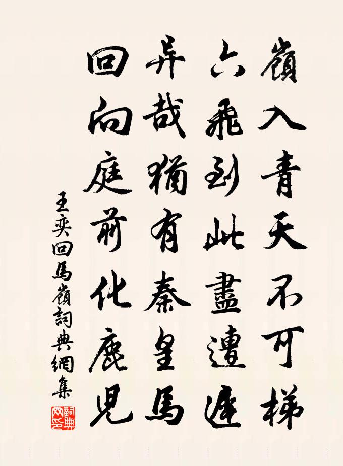 詩詞名句歷史字典書法欣賞書法字典國語詞典說文解字康熙字典古漢語字典標 題 作 者 詩 句 回馬嶺作者:王奕 朝代:宋代回馬嶺原文嶺入青天不可梯,六飛到此盡遭遲。異哉猶有秦皇馬,回向庭前化鹿兒。詩詞問答問:回馬嶺的作者是誰?答:王奕問:回馬嶺寫於哪個朝代?答:宋代王奕回馬嶺書法欣賞回馬嶺書法作品詩詞推薦題青龍寺賈島〔唐代〕碣石山人一軸詩,終南山北數人知。擬看青龍寺里月,待無一點夜雲時。飲酒二十首同蘇翰林先生次韻追和陶淵明十六晁補之〔宋代〕王道鹽無偏黨,鹽此語聞諸鹽經。高賢如大海,亦以眾流成。文饒嘆維州,刀鋸人所更。相如後私怨,此語驚秦庭金盞倒垂蓮晁端禮〔宋代〕流水漂花,記同尋閬苑,曾宴桃源。痛飲狂歌,金盞倒垂蓮。未省負、佳時良夜,爛游風月三年。別後空報瑤琴,上皇子嘉王生辰詩三章陳傅良〔宋代〕造次依儒術,朝回只一經。更無他嗜好,端是眾儀刑。符應當良月,聲華自妙齡。帝垣從此日,光焰粲前星。挽分寧張少仙二首徐元傑〔宋代〕當路知公諗,搜揚入剡科。才難行志易,官小及民多。北部勞人耳,東皈奈命何。郵音嗟忽斷,空有淚滂沱。秋興汪莘〔宋代〕蘿衣裊裊帶涼風,人道秋空豈是空。白日不知天上事,眾星環拱紫微宮。送高丞別李呂〔宋代〕君侯七閩英,學問早有餘。年時猶未冠,鼓篋游上都。文成筆五色,四海仰名譽。調丞尉江邑,有實不願圖。朅來賦樊氏園雙花李處權〔宋代〕天地有至和,薰蒸效茲祥。異哉桃李蹊,葩萼俱作雙。紛紛承朝露,一一含春陽。飛來兩珍禽,文采粲成章。鳴集過易簡彥從趙蕃〔宋代〕雨從筍怒長,春雨陰暗成。關門有餘暇,散帙不妨清。從仕亦何好,隱居無用名。悠然會心處,便欲寄吾生。砌下老梅釋智圓〔宋代〕傍砌根全露,凝煙竹斗遮。臘深空冒雪,春老始開花。止渴功應少,少羹味亦嘉。行人憐怪狀,上漢採為槎。頌古四十八首釋慧開〔宋代〕出得出不得,渠儂得自由。神頭並鬼面,敗闕當風流。有病吟邵雍〔宋代〕一身如一國,有病當求醫。病癒藥便止,節宣良得宜。戲贈表兄崔秀才權德輿〔唐代〕何事年年戀隱淪,成名須遣及青春。明時早獻甘泉去,若待公車卻誤人。和景彝正月十八日偶書王珪〔唐代〕樹含春色明兼暗,雲帶朝寒去復還。未有燕回羅幕上,不知人在玉樓間。吟魂幾繞青山曲,醉夢多游紫府關。待得頌古一百則釋正覺〔宋代〕缽里飯,桶里水,開口見膽求知己。擬思便落二三機,對面忽成千萬里。韶陽師,較些子。斷金之義兮誰與相同,學書二首歐陽修〔宋代〕學書不覺夜,但怪西窗暗。病目故已昏,墨不分濃淡。人生不自知,勞苦殊無憾。所得乃虛名,榮華俄頃暫。豈止訴衷情佚名〔宋代〕酒旗搖曳柳花天。鶯語軟於棉。碎綠未盈芳沼,倒影蘸鞦韆。奩玉燕,套金蟬。負華年。試問歸期,是酴醿後,是昭君怨陸游〔宋代〕晝永蟬聲庭院。人倦懶搖團扇。小景寫瀟湘。自生涼。簾外蹴花雙燕。簾下有人同見。寶篆拆官黃。炷薰香。郊廟歌辭。享太廟樂章。大成舞佚名〔唐代〕周稱王季,晉美帝文。明明盛德,穆穆齊芬。藏用四履,屈道三分。鏗鏘鍾石,載紀鴻勛。南軒小桃盛開皆言群花未發而此獨先之偶成短強至〔宋代〕紫萼紅英細細裝,新枝短短舊枝長。未經曉日誰言艷,可藉春風自有香。卻恐折殘妨把酒,若為遮住莫臨牆。關中名句推薦布被秋宵夢覺,眼前萬里江山。辛棄疾《清平樂·獨宿博山王氏庵》 事先敗而後成,曰失之東隅,收之桑榆;事將成而終止,曰為山九仞,功虧一簣。程登吉《幼學瓊林·卷一·地輿》 駐馬橋西,還系舊時芳樹。高觀國《玲瓏四犯·水外輕陰》 人煙寒橘柚,秋色老梧桐。李白《秋登宣城謝朓北樓》 窮冬烈風,大雪深數尺,足膚皸裂而不知。宋濂《送東陽馬生序》 狂風吹我心,西掛鹹陽樹。李白《金鄉送韋八之西京》 天涯也有江南信。梅破知春近。黃庭堅《虞美人·宜州見梅作》 獨寫菖蒲竹葉杯,蓬城芳草踏初回。湯顯祖《午日處州禁競渡》 天涯倚樓新恨,楊柳幾絲碧。晏幾道《六么令·雪殘風信》 治國者,必以奉法為重。羅貫中《三國演義·第九十六回》