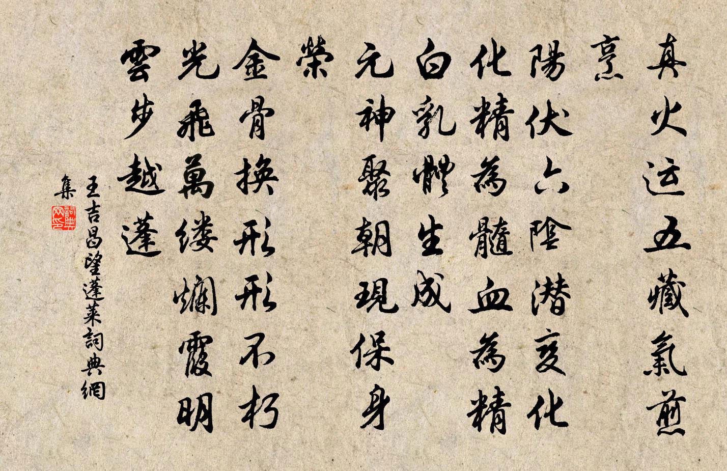 詩詞名句歷史字典書法欣賞書法字典國語詞典說文解字康熙字典古漢語字典標 題 作 者 詩 句 望蓬萊作者:王吉昌 朝代:元代望蓬萊原文真火運,五藏氣煎烹。陽伏六陰潛變化,化精為髓血為精。白乳體生成。元神聚,朝現保身榮。金骨換形形不朽,光飛萬縷爛霞明。雲步越蓬詩詞問答問:望蓬萊的作者是誰?答:王吉昌問:望蓬萊寫於哪個朝代?答:元代問:望蓬萊是什麼體裁?答:詞王吉昌望蓬萊書法欣賞望蓬萊書法作品詩詞推薦巴南舟中,思陸渾別業岑參〔唐代〕瀘水南州遠,巴山北客稀。嶺雲撩亂起,谿鷺等閒飛。鏡里愁衰鬢,舟中換旅衣。夢魂知憶處,無夜不先歸。張子京扁其先大父居琴之竹軒日琴琅玕汪炎昶〔宋代〕自停伶倫雙鳳鳴,陰分嶰谷涼幽庭。肖哇不能屈其貞,睨霜節堅挺疏莖。骨含五音堪九成,欲泄未得爽不平。嶧陽蘭陵王(丁丑感懷和彭明叔韻)劉辰翁〔宋代〕雁歸北。渺渺茫茫似客。春湖裡,曾見去帆,誰遣江頭絮風息。千年記當日。難得。寬閒抱膝。興亡事,馬上飛花詠懷寄知己齊己〔唐代〕已得浮生到老閒,且將新句擬玄關。自知清興來無盡,誰道淳風去不還。三百正聲傳世後,五千真理在人間。此心送嚴秀才下第東歸徐鉉〔唐代〕世胄今為旅,多才懶自營。坦懷君子道,惜別故人情。歸棹春潮滿,郊居海月明。雄文不輕售,須待最高名。和此陽先生感興詩二十首劉黻〔宋代〕我聞封嬴秦氏,封威力橫封提封。北方封迤長城,中土鎖春風。阡陌鞅肆孽,簡編斯造凶。民命眇以墜,天勢巍且越問句踐孫因〔宋代〕昔句踐兮思報吳,問國政兮五大夫。闢田野兮實倉府,訪疾苦兮字幼孤。抱冰兮握火,置膽兮坐臥。采蕺兮與葛,送趙君十絕汪莘〔宋代〕荷葉高高荷蕊低,夕陽初落畫橋西。湖州士女來相接,爭擁蘭舟入霅溪。五家林四首張鎡〔宋代〕放鴨成各趁暖暉,村童遮護只狂飛。多多益辦真難事,半里撐船趕不歸。歲晚樊口解舟張埴〔宋代〕武昌夏口之山川,天寒不見 * 船。短蓬推枕酒半醒,斑斑雨里茸茸煙。沙頭白鳥閉目立,上下掠火交烏鳶。修蛇荊州即事藥名詩八首黃庭堅〔宋代〕垂空青幕六,一一排風開。石友常思我,預知子能來。法駕導引虞集〔元代〕千歲事,何許覓松喬。急雨輕雷開道路,星河北斗轉**。相對話漁七寶岩范成大〔宋代〕天如碧玉甌,下覆白玉盤。晶光眩相射,我獨居兩間。正視不勝瞬,卻立聊少安。但覺風浩浩,骨毛森似寒。神仙題畫葡萄釋子溫〔宋代〕曾向流沙取梵書,草龍珠帳滿征途。輕包短策難將帶,記得西風月上初。酴醾四首劉子翬〔宋代〕霜蕤薰碧醥,氣味已相傳。終以香為累,無人解倒懸。中秋夜喜晴方回〔宋代〕秋來剩賦倚樓吟,天慰衰翁此夜心。霽色一輪升白玉,歡聲萬鎰價黃金。酒才半醉吾忘我,詩最難題古到今。日□六州歌頭(美人指甲)劉過〔宋代〕銷薄春冰,碾輕寒玉,漸長漸彎。見鳳鞋泥污,偎人強剔,龍涎香斷,撥火輕翻。學撫瑤琴,時時欲翦,更掬水魚次韻楊宰陳造〔宋代〕頭顱敢意封戶牖,飲處往往推祭酒。宜人珍果亦鼎來,把杯未省嗟不偶。拳栗御棗玉山奇,南北氣殊仍地醜。少日夏日戲作陸游〔宋代〕困來兩眥似膠黏,底怪吳人號黑甜。安得他生不識字,朝朝就日臥茅檐?挽李丈然明張元乾〔宋代〕眼看流輩上青雲,拂袖歸來晝掩門。心計豈容生事拙,時名長與故山存。不妨開徑栽花卉,政復藏書遺子孫。八十名句推薦不患無位,患所以立;不患莫已知,求為可知也。孔子弟子《論語·里仁篇》 黃葉覆溪橋,荒村唯古木。柳宗元《秋曉行南谷經荒村》 東指羲和能走馬,海塵新生石山下。李賀《天上謠》 風勁角弓鳴,將軍獵渭城。王維《觀獵》 人歸落雁後,思發在花前。薛道衡《人日思歸》 官之友,民之敵;親之友,仇之敵,敵者無常也。來俊臣《羅織經·瓜蔓卷第十二》 愁顏與衰鬢,明日又逢春。戴叔倫《除夜宿石頭驛》 錦瑟無端五十弦,一弦一柱思華年。李商隱《錦瑟》 言無二貴,法不兩適。韓非及後人《韓非子·問辯》 浮生只合尊前老。雪滿長安道。舒亶《虞美人·寄公度》