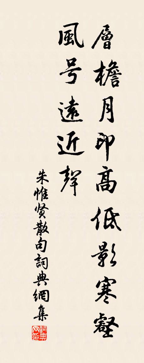 詩詞名句歷史字典書法欣賞書法字典國語詞典說文解字康熙字典古漢語字典標 題 作 者 詩 句 句作者:朱惟賢 朝代:宋代句原文層檐月印高低影,寒壑風號遠近聲。詩詞問答問:句的作者是誰?答:朱惟賢問:句寫於哪個朝代?答:宋代朱惟賢句書法欣賞句書法作品詩詞推薦題東西二梁山三首楊萬里〔宋代〕二梁雙黛點東西,牛渚看來活底眉。阿敞盡時微失手,一眉高著一眉低。點絳唇佚名〔宋代〕荷葉乍圓,正是困人天氣。清明資福僧遣詩賦此以答之陳文蔚〔宋代〕清明恰值雨晴時,勝喜鄰僧福有詩。十里懶尋沽酒旆,一編深下讀書帷。放懷是處青春好,無事於中白日遲。況是閒夜詠懷因招周協律劉薛二秀才白居易〔唐代〕世名檢束為朝士,心性疏慵是野夫。高置寒燈如客店,深藏夜火似僧爐。香濃酒熟能嘗否?冷澹詩成肯和無?若厭雲際嶺李呂〔宋代〕凌空石磴三千丈,匝地瑤林百萬花。自有眼來方見此,直疑身山到仙家。題錢舜舉寫生五首石榴陳深〔宋代〕萬里乘槎來,錦衣驚畫炫。相逢秋風中,忽發一笑粲。辭主人絕句四首放鷺鷥齊己〔唐代〕白萍紅蓼碧江涯,日暖雙雙立睡時。顧揭金籠放歸去,卻隨沙鶴斗輕絲。句程師孟〔宋代〕昨夜清溪明月里,想君靈魄未消沉。逢莊納因贈皇甫冉〔唐代〕世故還相見,天涯共向東。春歸江海上,人老別離中。郡吏名何晚,沙鷗道自同。甘泉須早獻,且莫嘆飄蓬。十六字令 案詞品卷一誤作周邦彥詞。詞綜卷周玉晨〔元代〕眠。月影穿窗白玉錢。無人弄,移過枕函邊。張安國集中三首,蔡伸道集中一首,其首俱以一字句斷,今本訛眠字風不鳴條金厚載〔唐代〕寂寂曙風生,遲遲散野輕。露華搖有滴,林葉裊無聲。暗剪叢芳發,空傳谷鳥鳴。悠揚韶景靜,澹蕩霽煙橫。遠水次韻景珍酴醾黃庭堅〔宋代〕莫惜金錢買玉英,擔頭春老過清明。天香國艷不著意,詩社酒徒空得名。及此一時須痛飲,已拚三日作狂酲。濠州客路吳仁璧〔唐代〕人寰急景如波委,客路浮雲似蓋輕。回首故山天外碧,十年無計卻歸耕。陳子尚滄洲趣曾豐〔宋代〕湘江之水青悠悠,滄江宛在江中流。猗蘭青青結幽思,杜若紛紛生遠愁。前灣瞥見一漁艇,何處飛來雙白鷗。帝子餞王尚書出邊張九齡〔唐代〕漢相推人傑,殷宗伐鬼方。還聞出將重,坐見即戎良。上策應為豫,中權且用光。令申兵氣倍,威憺虜魂亡。樹比對月黃庚〔宋代〕萬里無雲天宇寬,十分秋色上樓看。月浮滄海蟾光濕,星落明河象緯寒。醉後盡教詩筆健,吟邊莫放酒杯乾。一聲立春示兒二首王之道〔宋代〕朝來何所喜,人唱玉樓春。酒著心還壯,詩成思轉新。士衡寧久困,曲逆豈長貧。千載風雲會,欣逢聖主真。念奴嬌曹勛〔宋代〕瑑冰鑄雪,賦神情天壤,無倫香澤。月女霜娥,直是有如許,清明姿色。細玉釵梁,溫瓊環佩,語好新音發。相逢代村中老人答李端〔唐代〕京洛風塵後,村鄉煙火稀。少年曾失所,衰暮欲何依。夜靜臨江哭,天寒踏雪歸。時清應不見,言罷淚盈衣。潼關譚嗣同〔清代〕終古高雲簇此城,秋風吹散馬蹄聲。河流大野猶嫌束,山入潼關解不平。名句推薦數年來往鹹京道,殘杯冷炙謾消魂晏殊《山亭柳·贈歌者》 早知恁么。悔當初、不把雕鞍鎖。柳永《定風波·自春來》 故大人之務,將在於眾賢而已。墨子《墨子·08章 尚賢(上)》 行非恆者,天禁之。爽事,地禁之。佚名《黃帝四經·十大經·三禁》 燕山雪花大如席,片片吹落軒轅台。李白《北風行》 送君九月交河北,雪裡題詩淚滿衣。岑參《送崔子還京》 不見南師久,謾說北群空。陳亮《水調歌頭·送章德茂大卿使虜》 路出大梁城,關河開曉晴。謝榛《渡黃河》 絳雪生涼,碧霞籠夜,小立中庭蕪地。吳文英《拜星月慢·林鐘羽姜石帚以盆蓮數十置中庭宴客其中》 此地別燕丹,壯士發衝冠。駱賓王《於易水送人 / 於易水送別》
