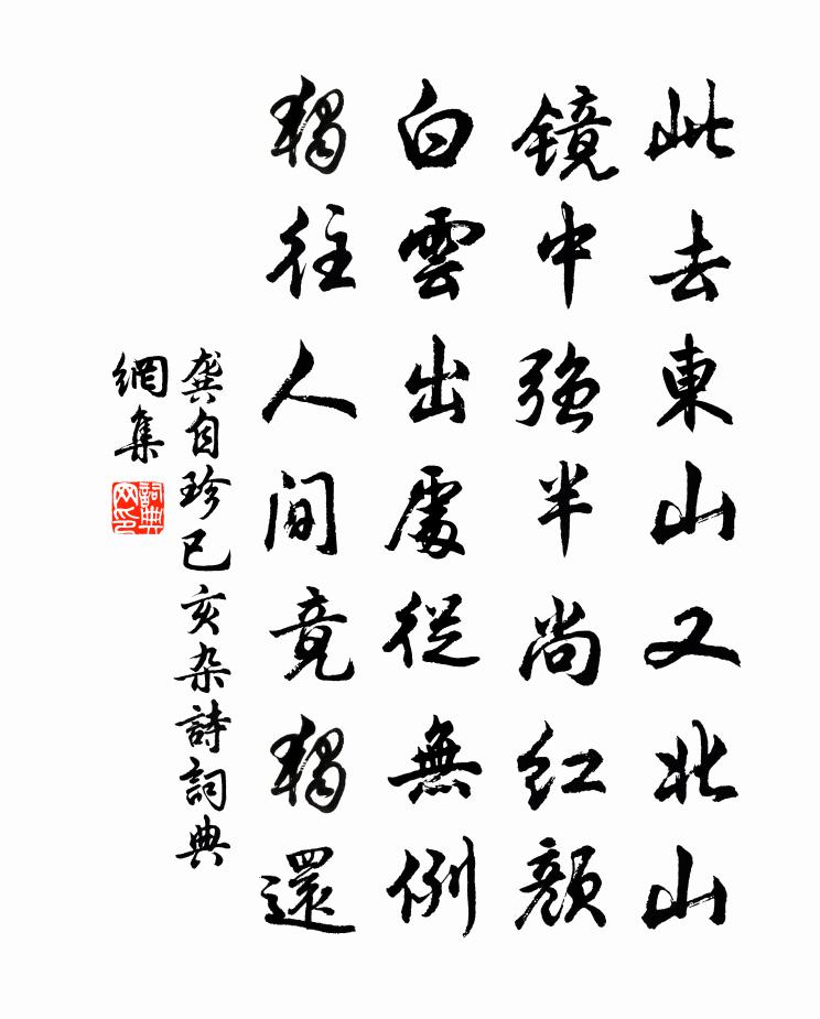 此去東山又北山,鏡中強半尚紅顏。白雲出處從無例,獨往人間竟獨還。