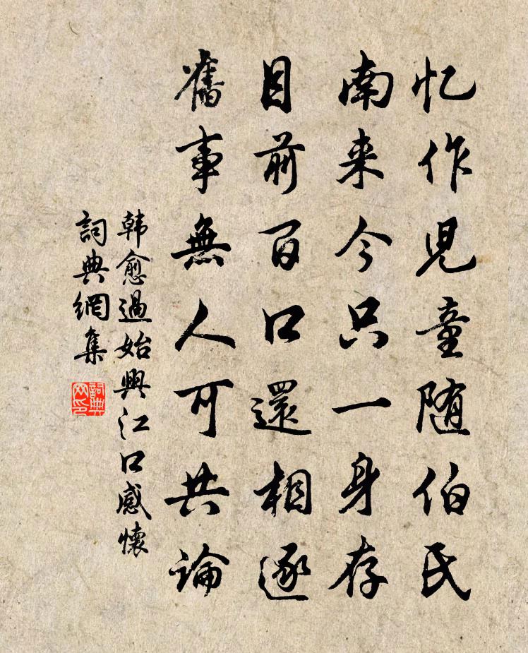 憶作兒童隨伯氏,南來今只一身存。目前百口還相逐,舊事無人可共論。